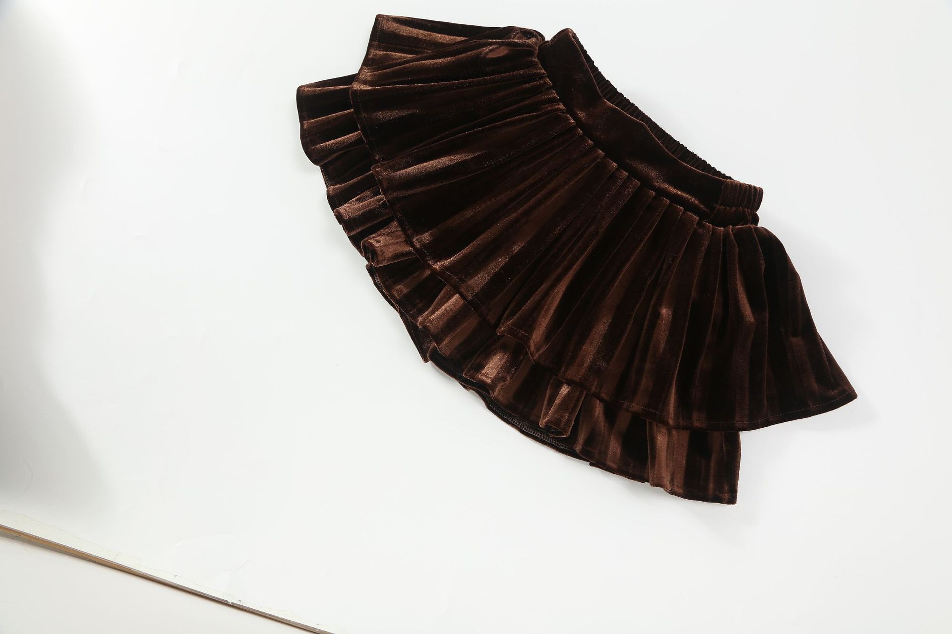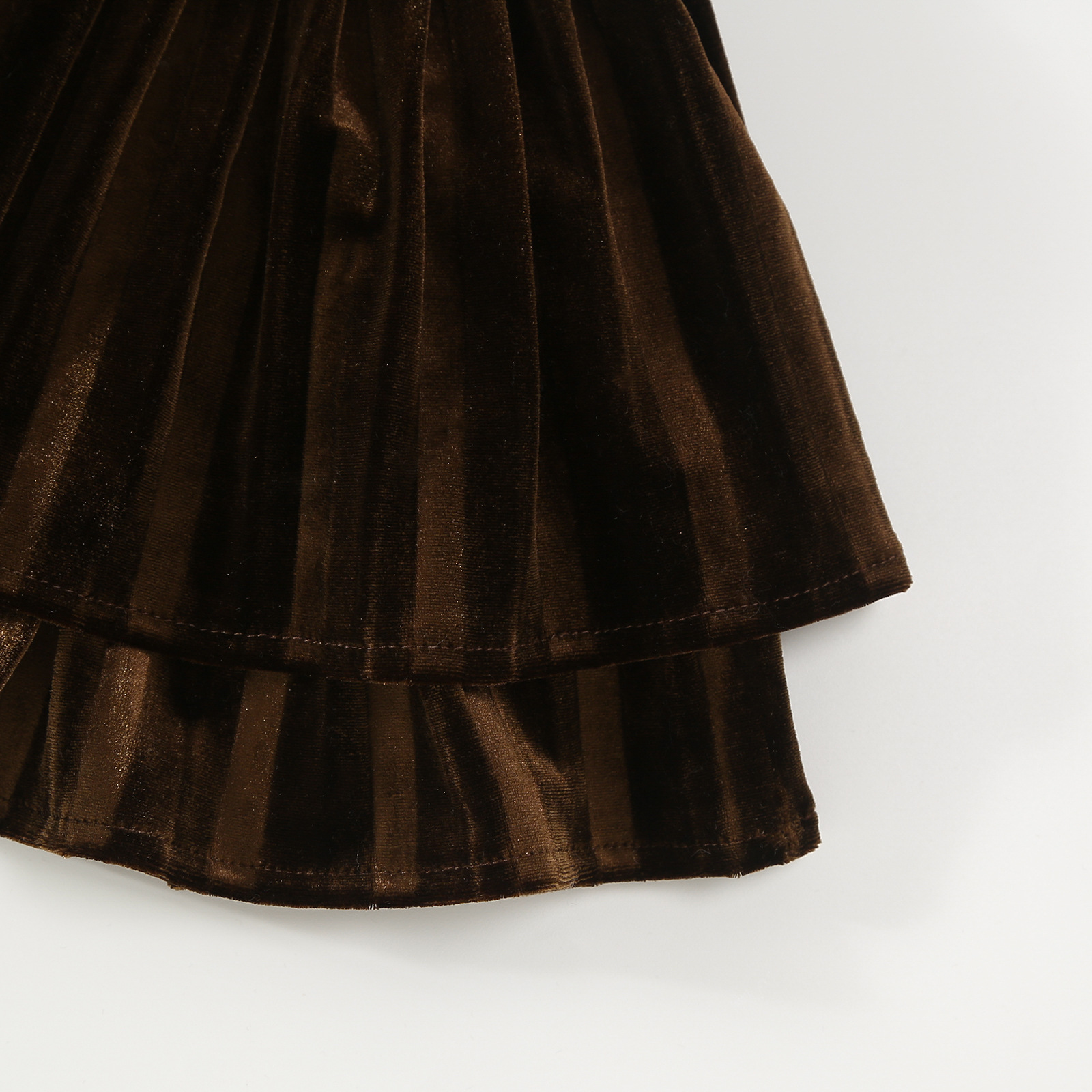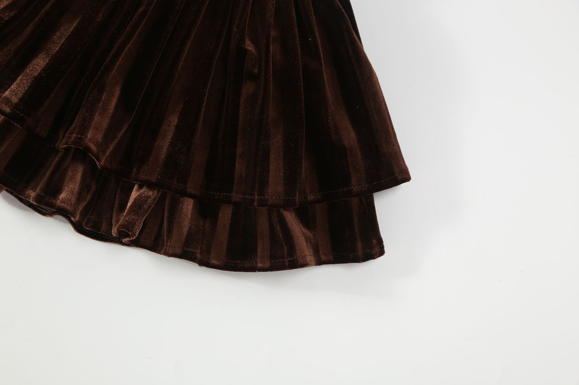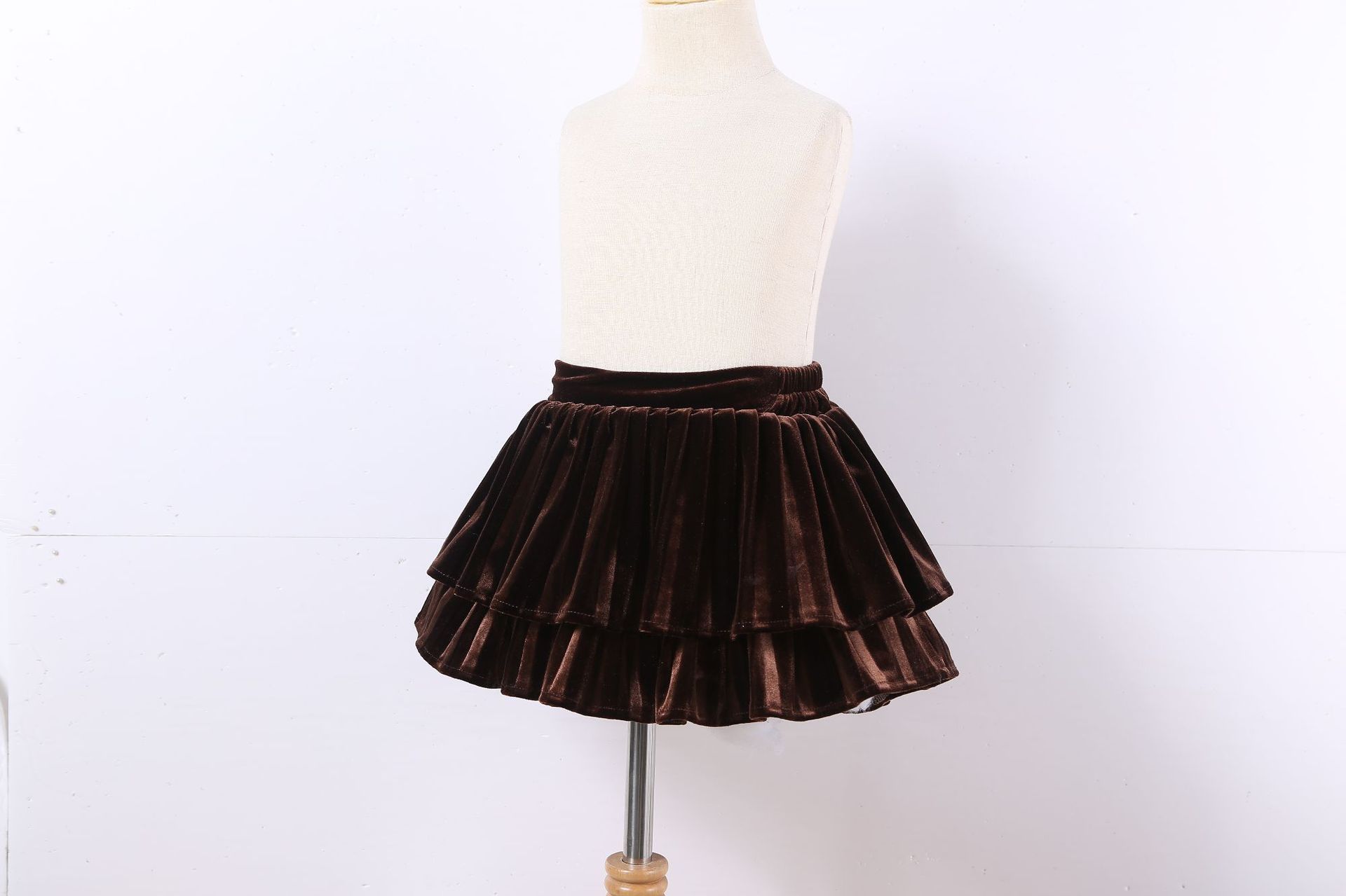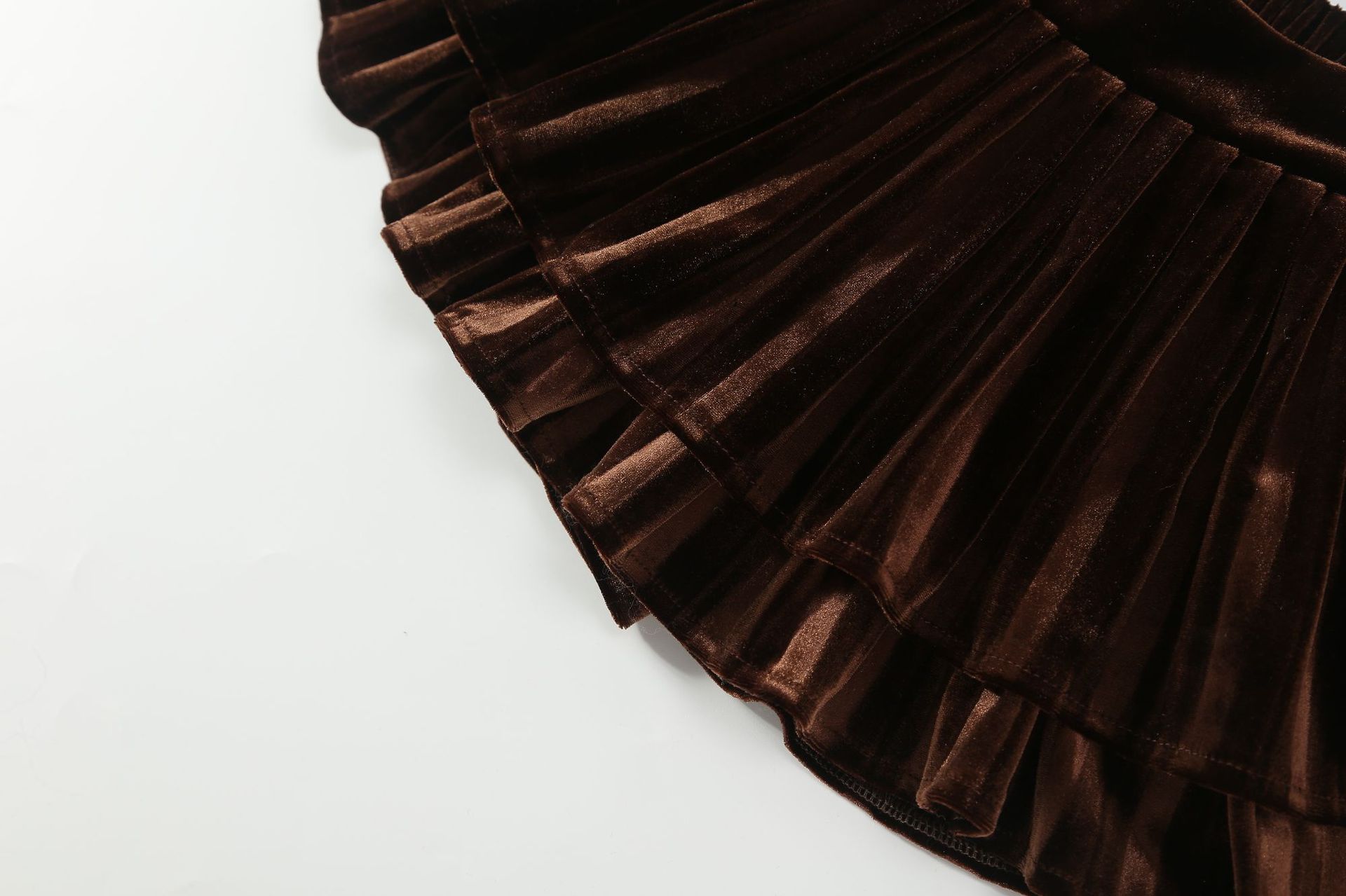 골드 벨벳 주름 치마 소녀의 검은 가을과 겨울 프랑스 더블 레이어 케이크 푹신한 스커트 A-라인 우산 스커트스토어 가기