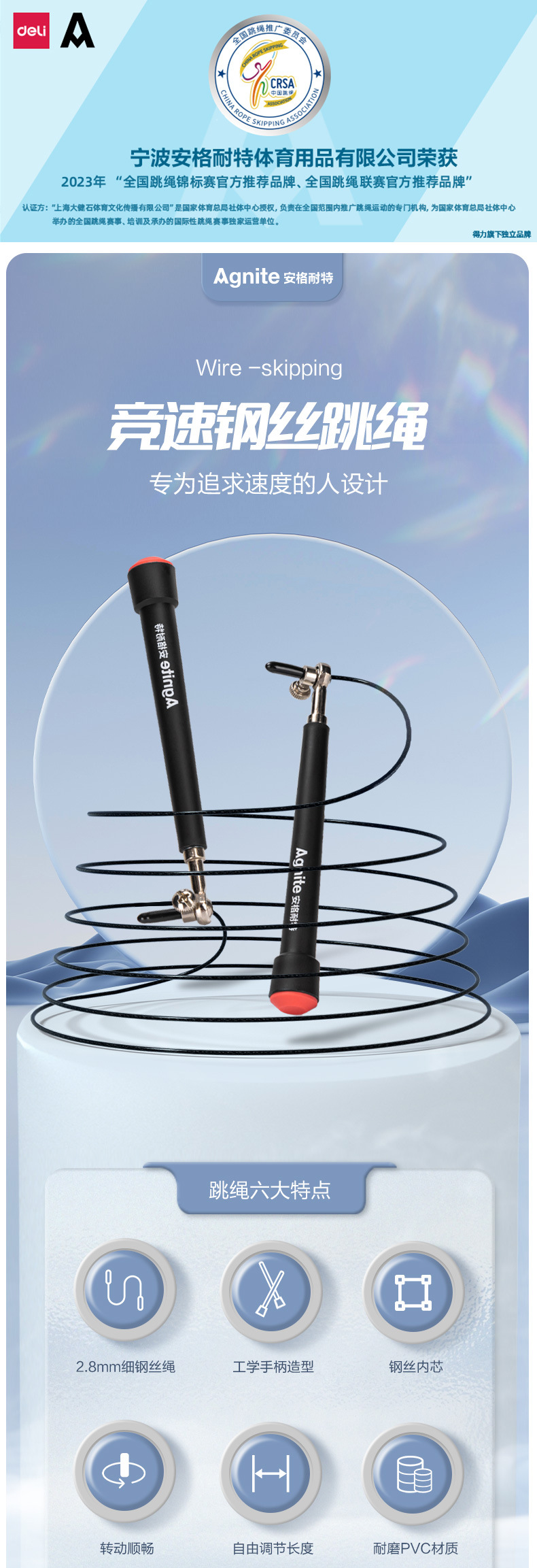 Deli angette FT909 베어링 레이싱 스틸 와이어 로프 건너 뛰기 피트니스 성인 조절 가능한 훈련 로프 스틸 와이어 로프