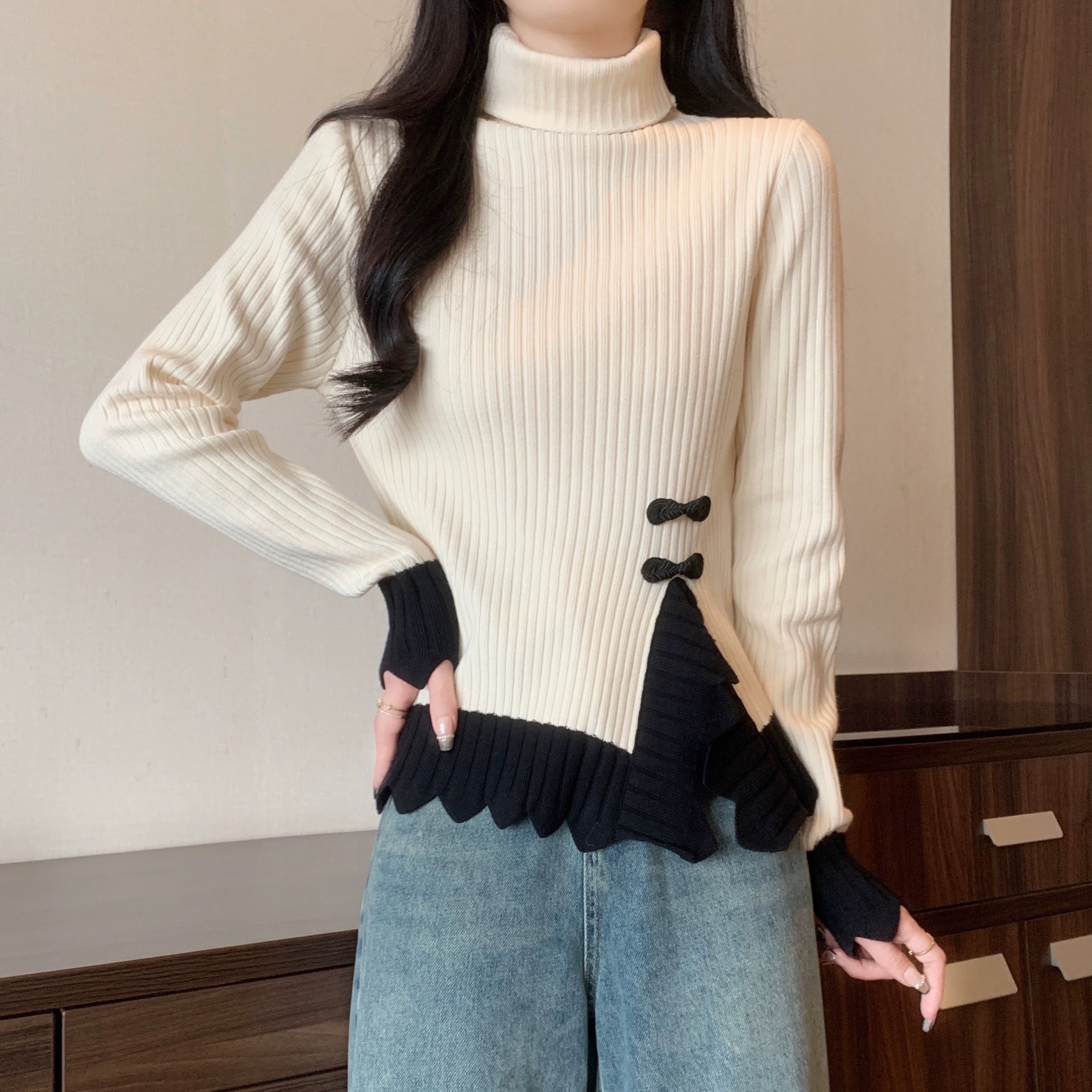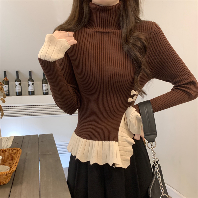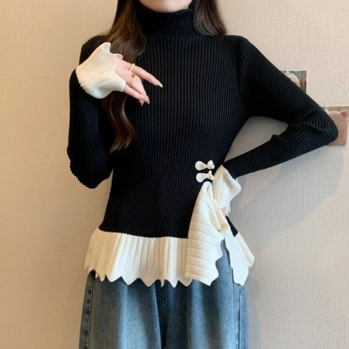 레트로 하이넥 긴팔 니트 여성용 가을 겨울 2026 신상 불규칙한 러플 니트 베이스 셔츠 탑 트렌디스토어 가기