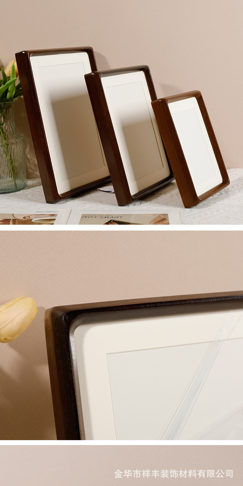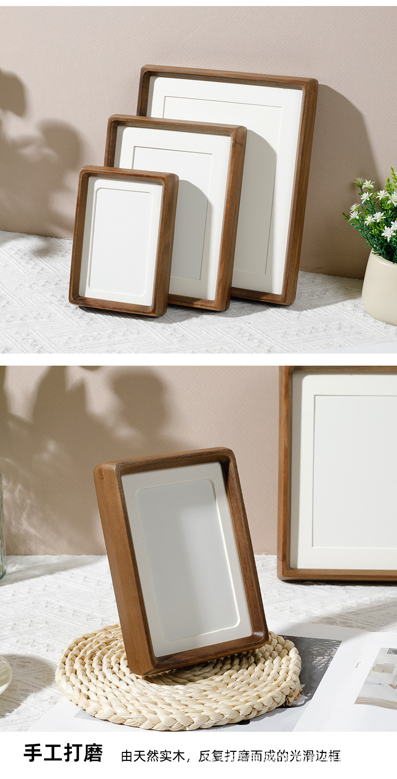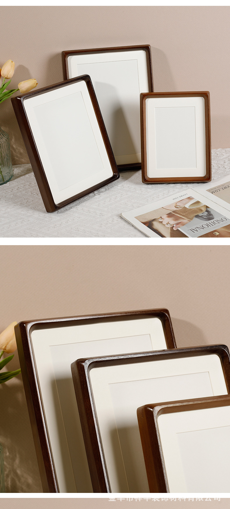 단단한 나무 북미 검은 호두 장내 및 외부 둥근 사진 프레임 세트 테이블 애호가 서예 및 그림 사진 프레임 공장 도매