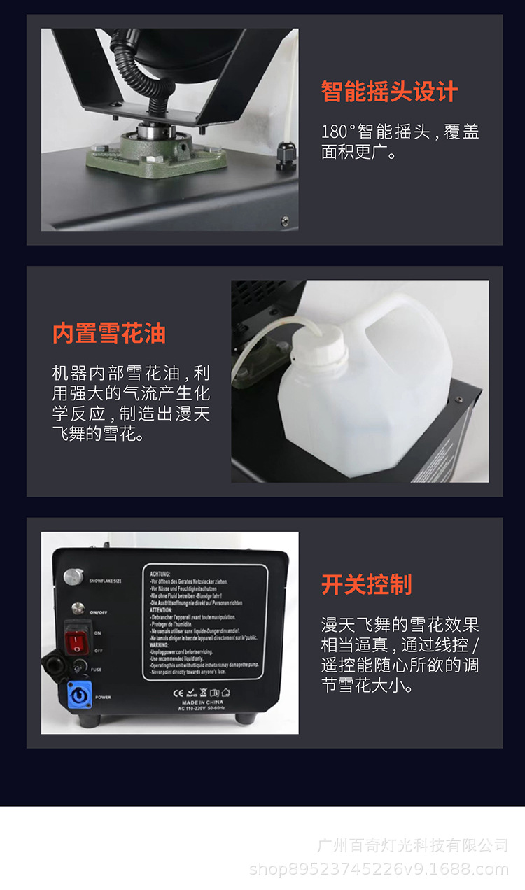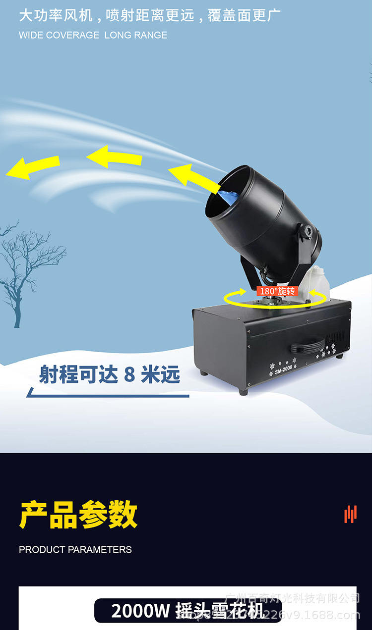 2000와트 대형 회전식 눈꽃 기계 결혼식 무대 크리스마스 눈 내리는 실내외 눈 제조기 조명 쇼