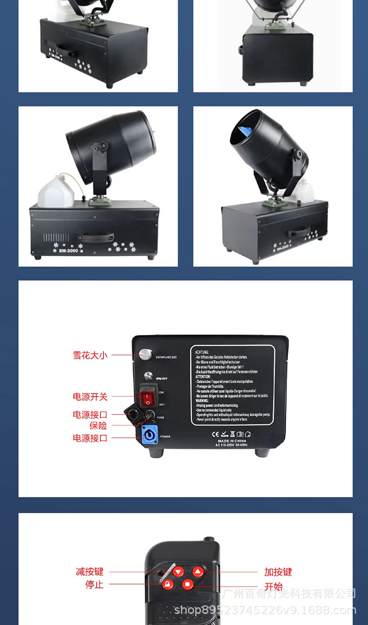 • 2000W 눈송이 기계 + DMX512 + 원격 제어