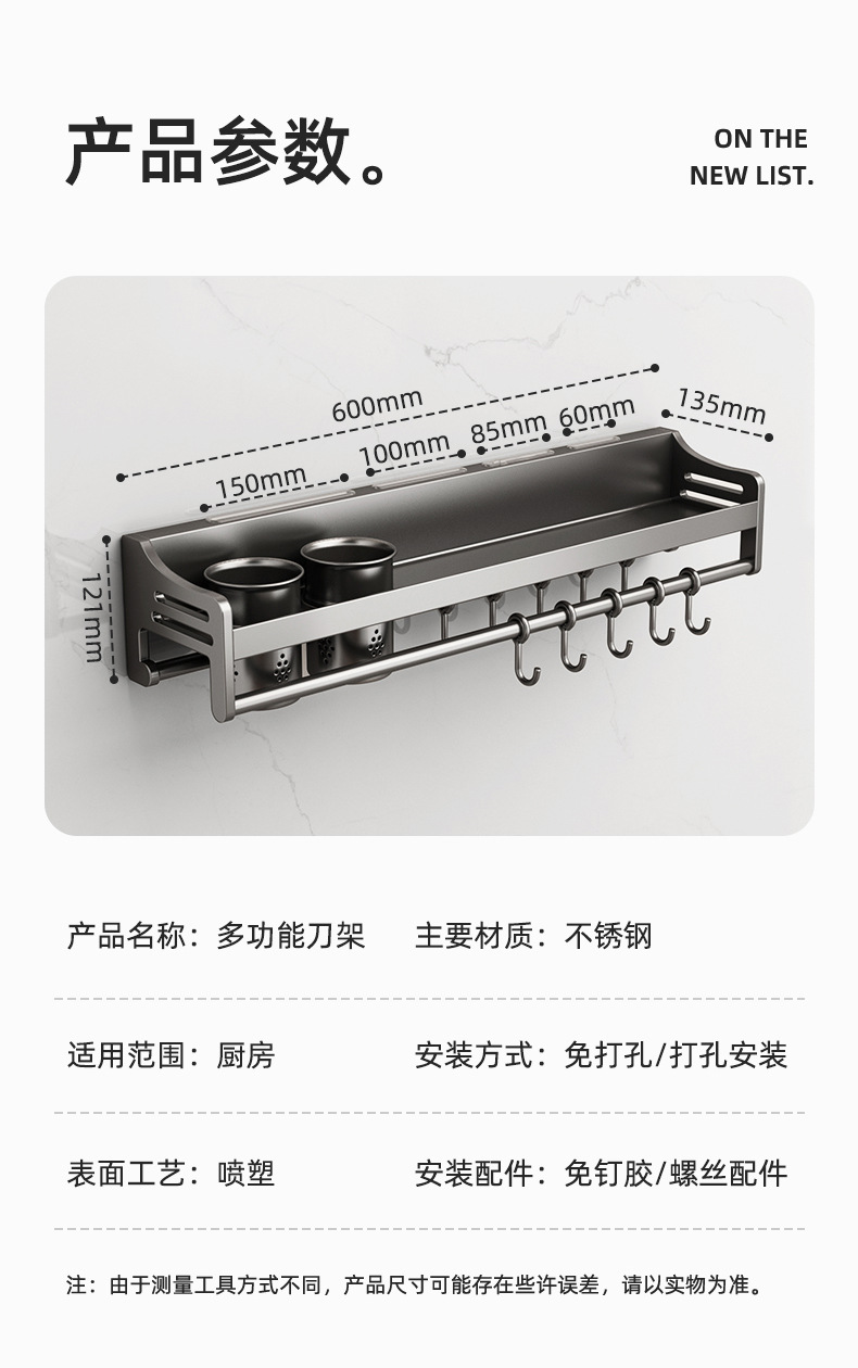 주방 랙 스테인레스 스틸 펀치가없는 다기능 조미료 젓가락 나이프 홀더 공급 완벽한 보관 랙