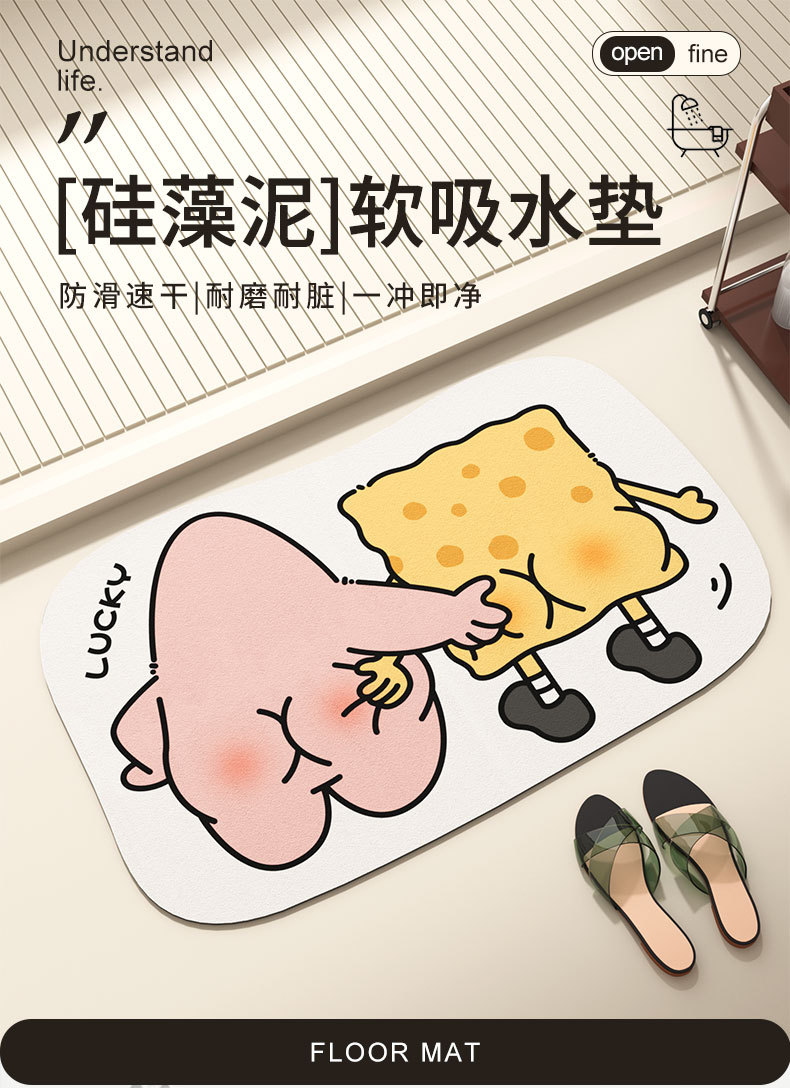 가정용 욕실 흡수성 빠른 건조 바닥 매트 귀여운 만화 diatom 진흙 바닥 매트 욕실 문 미끄럼 방지 마모 바닥 매트스토어 가기