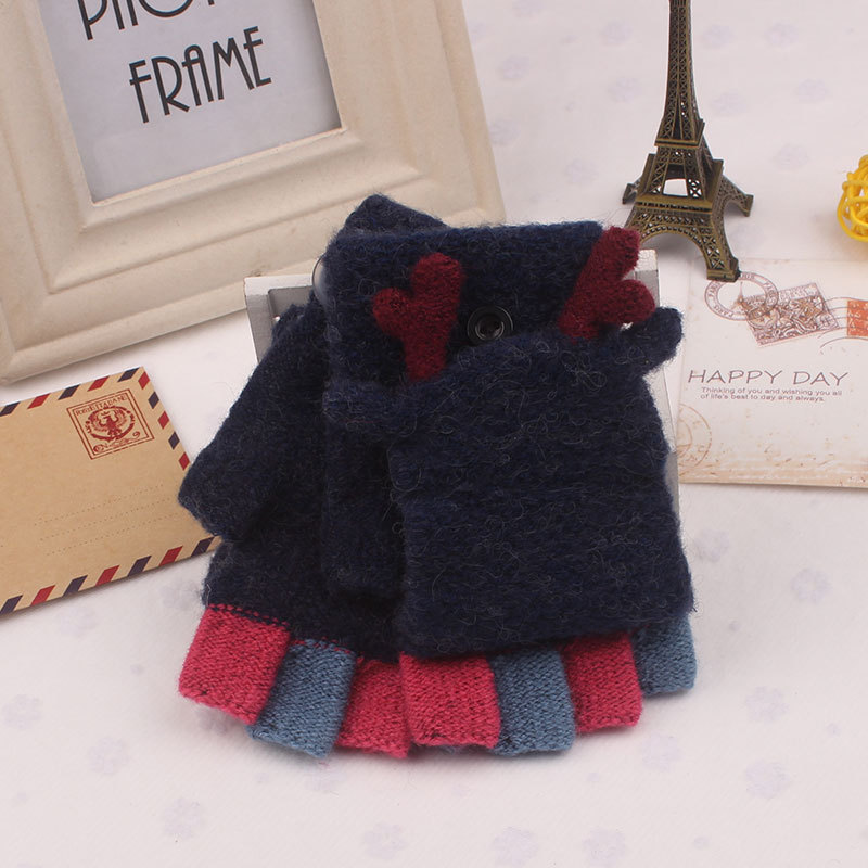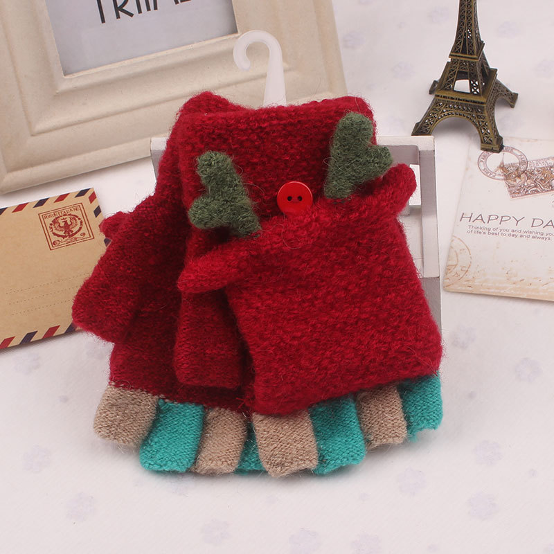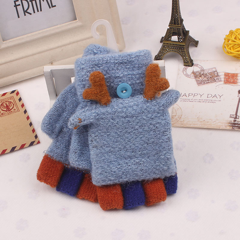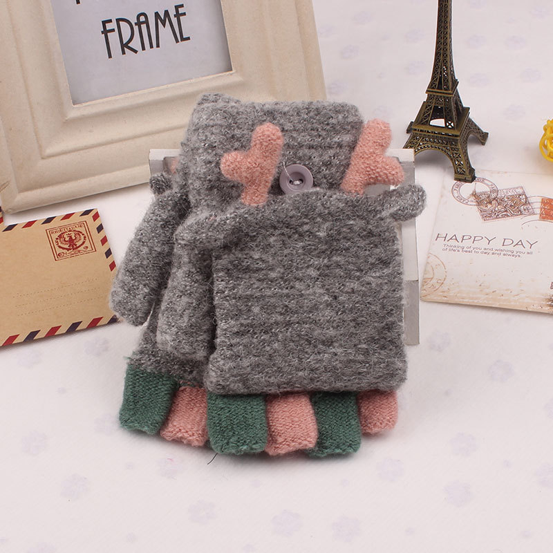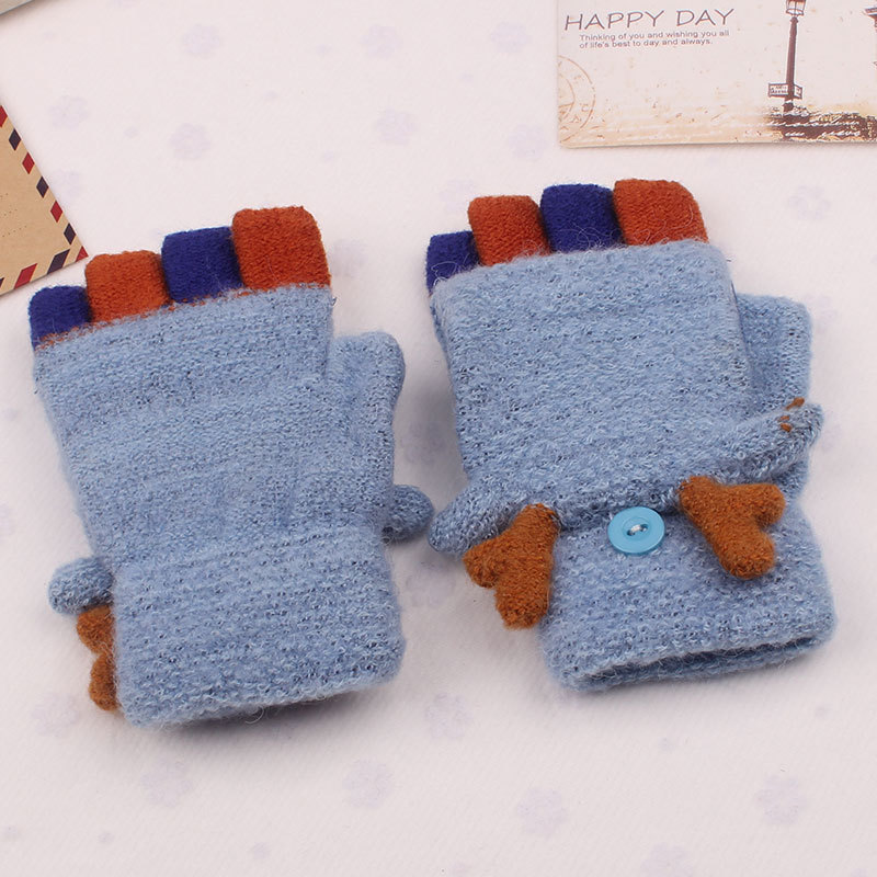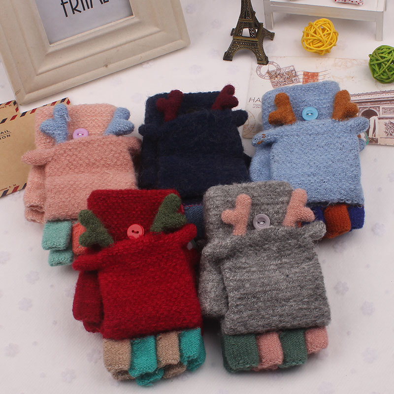 겨울 어린이 니트 장갑 큰 어린이 만화 어린이 마술 반 손가락 장갑 무지개 따뜻한 학생 글쓰기 장갑
