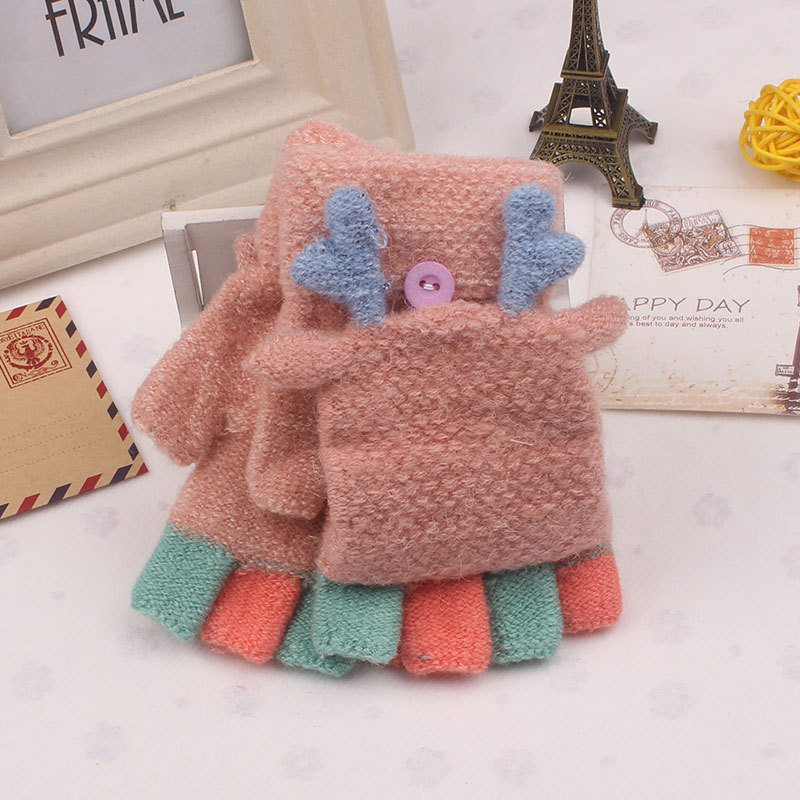 겨울 어린이 니트 장갑 큰 어린이 만화 어린이 마술 반 손가락 장갑 무지개 따뜻한 학생 글쓰기 장갑스토어 가기
