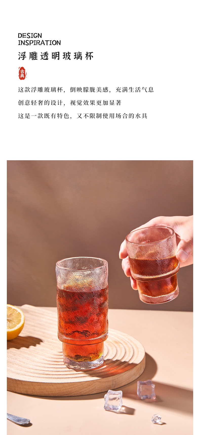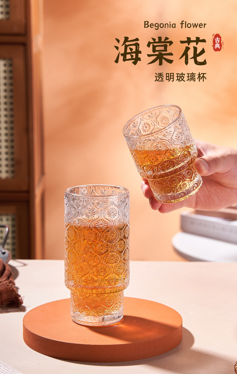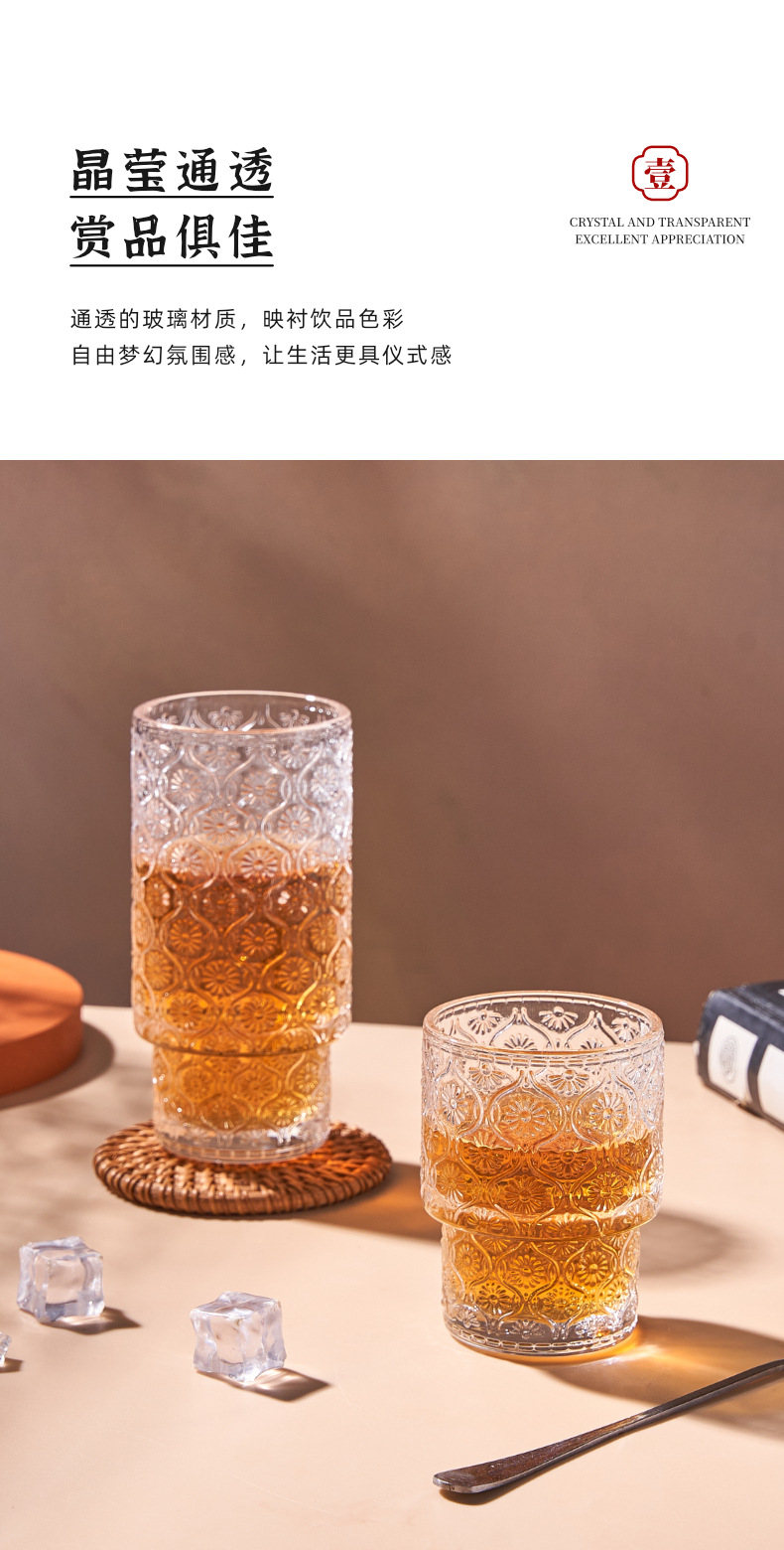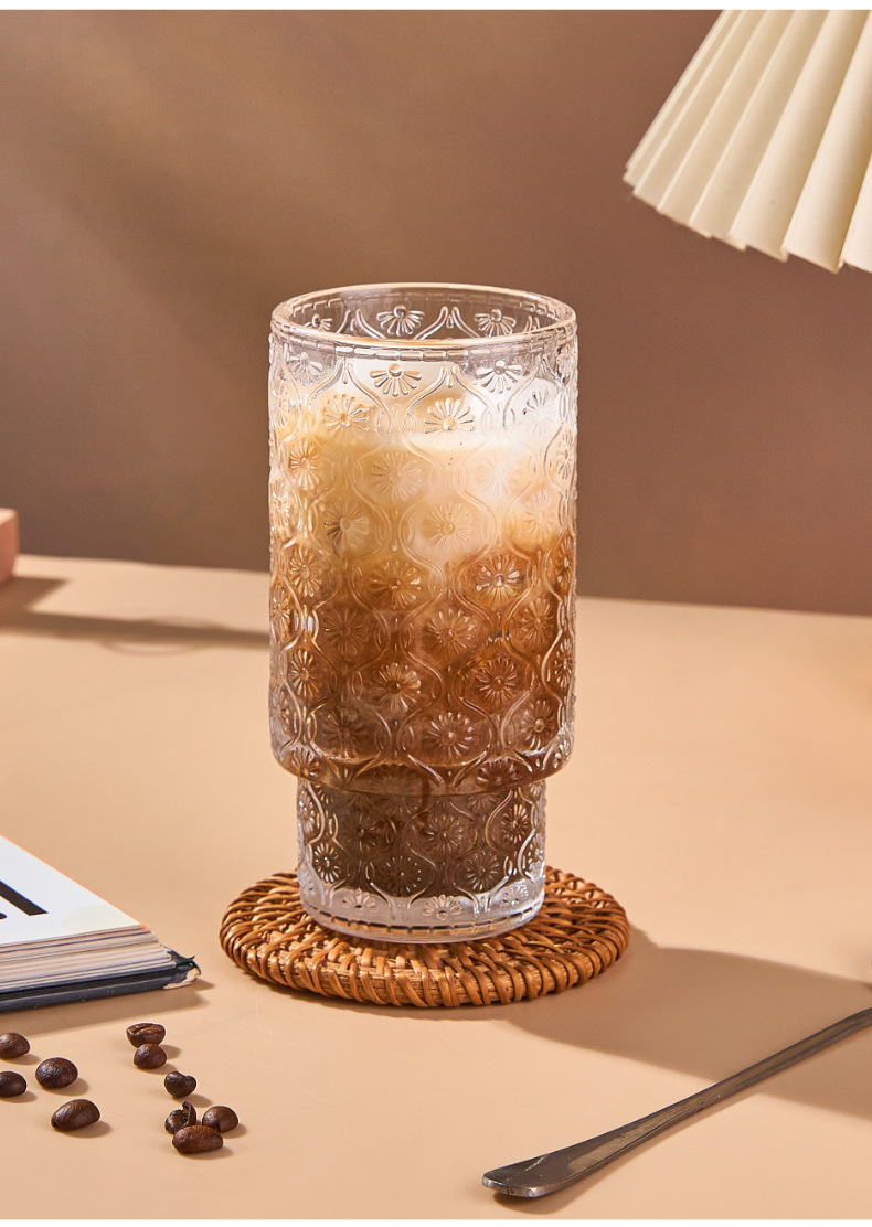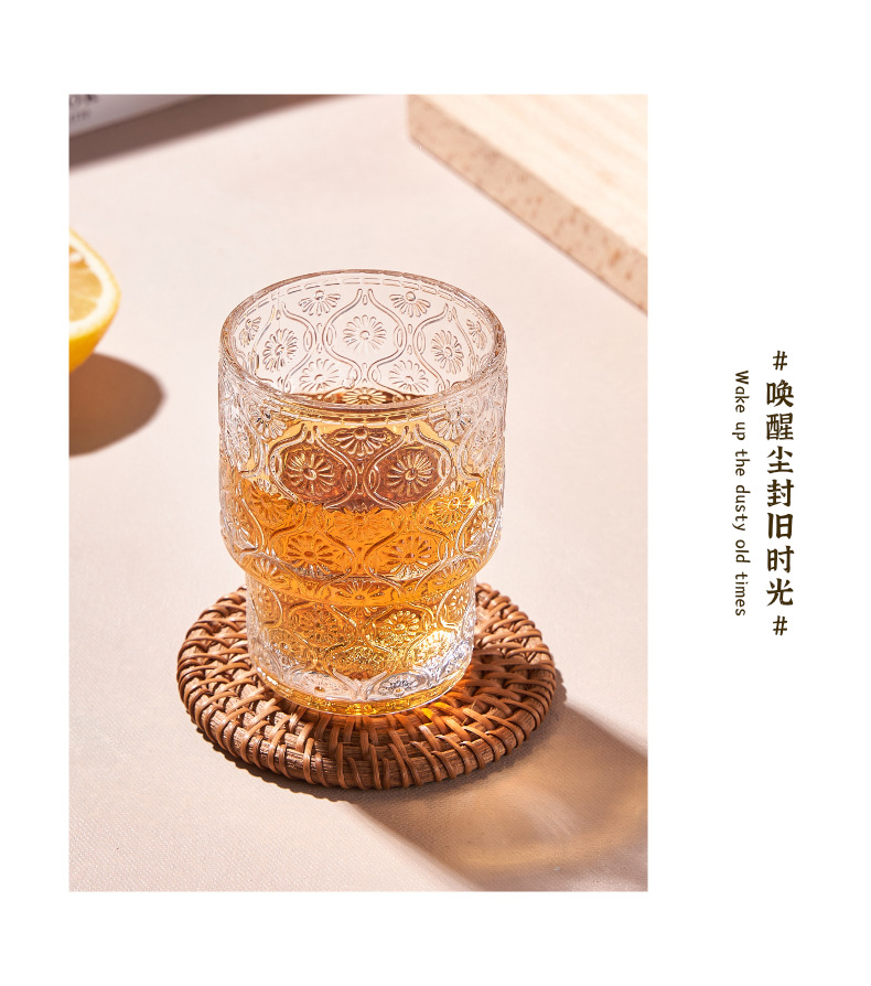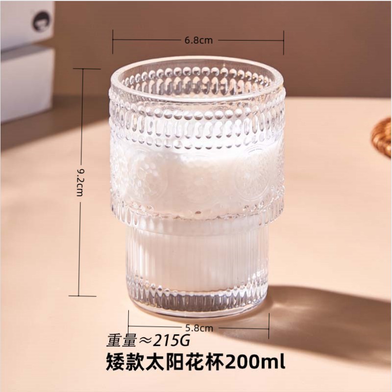 틈새 중간 고대 유리 컬렉션 쌓을 수있는 양각 해바라기 유리 빙하 패턴 컵 버블 주스 커피 컵