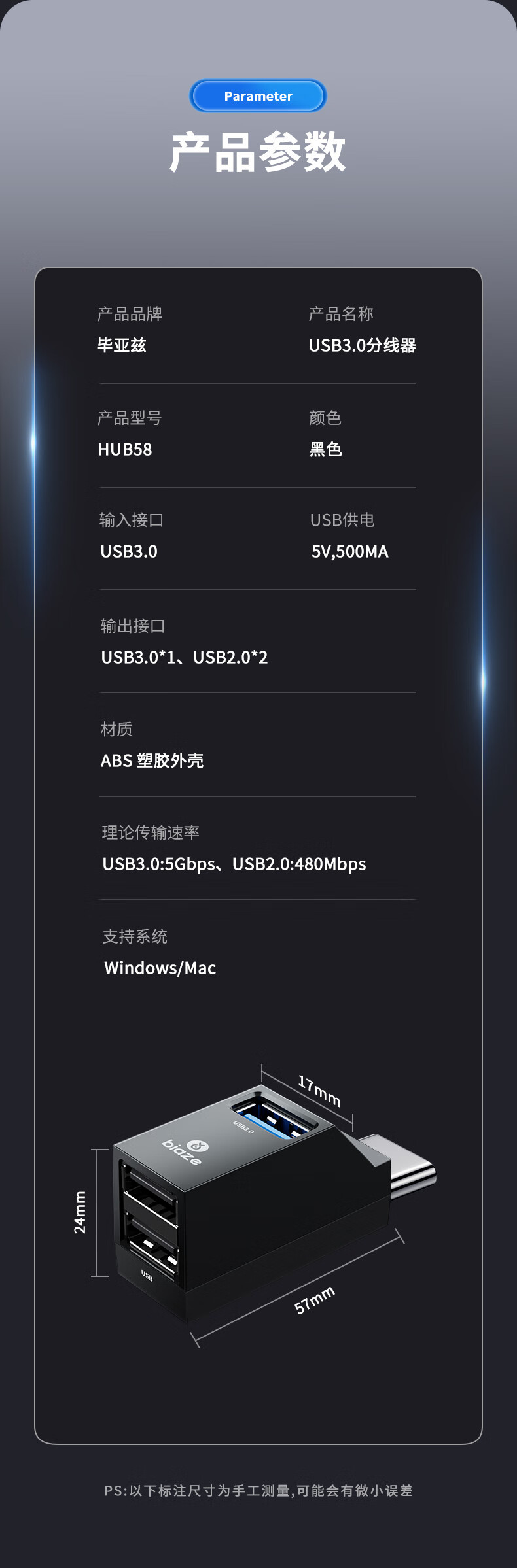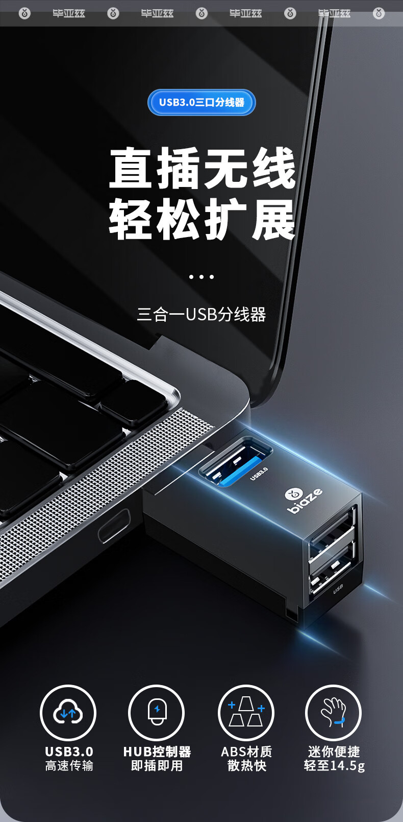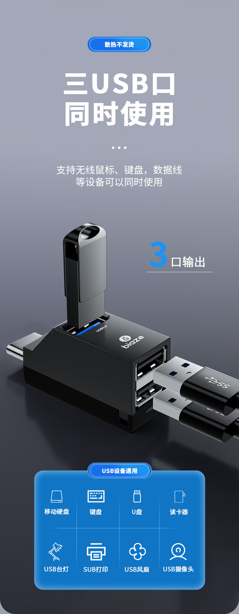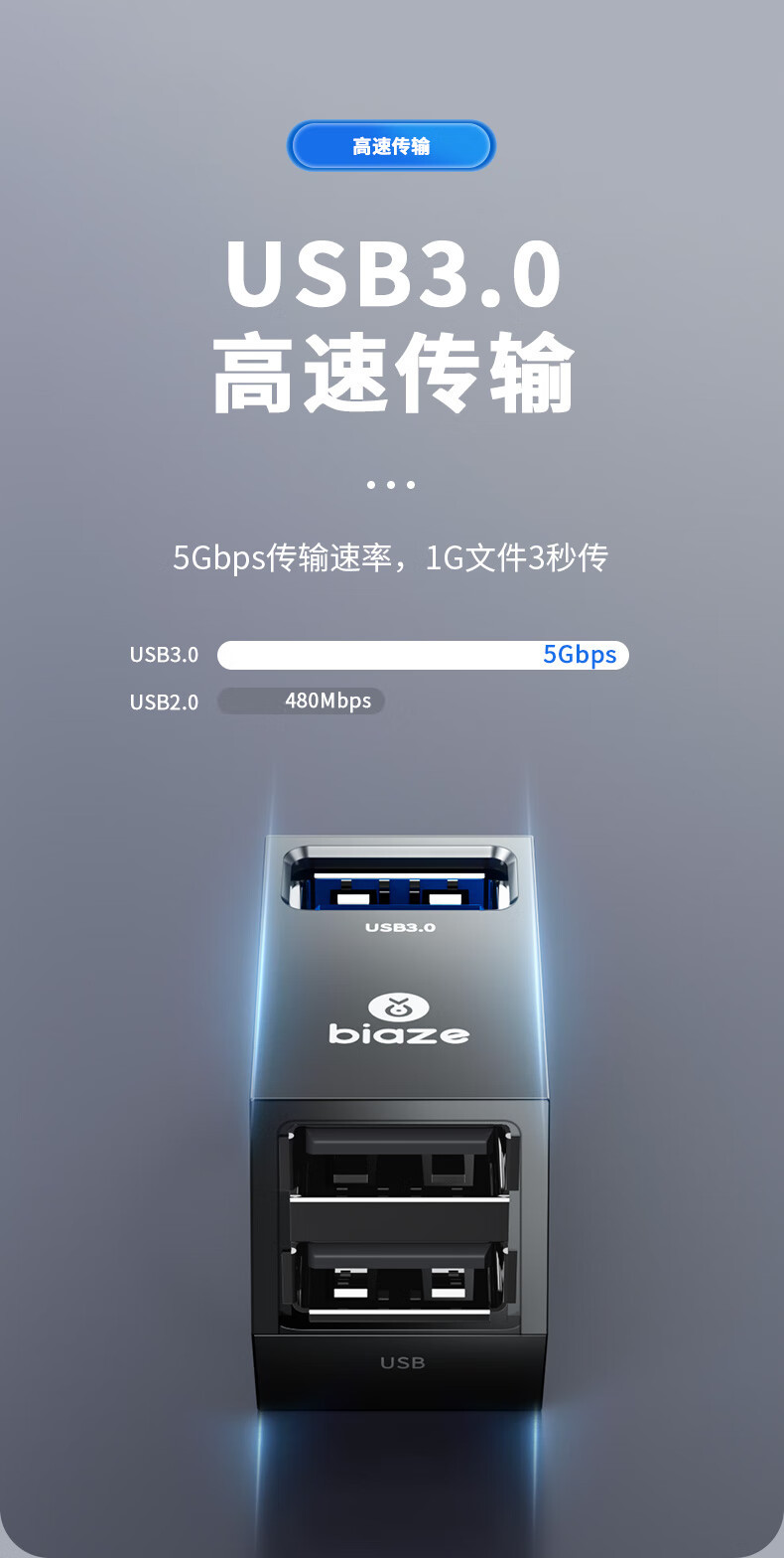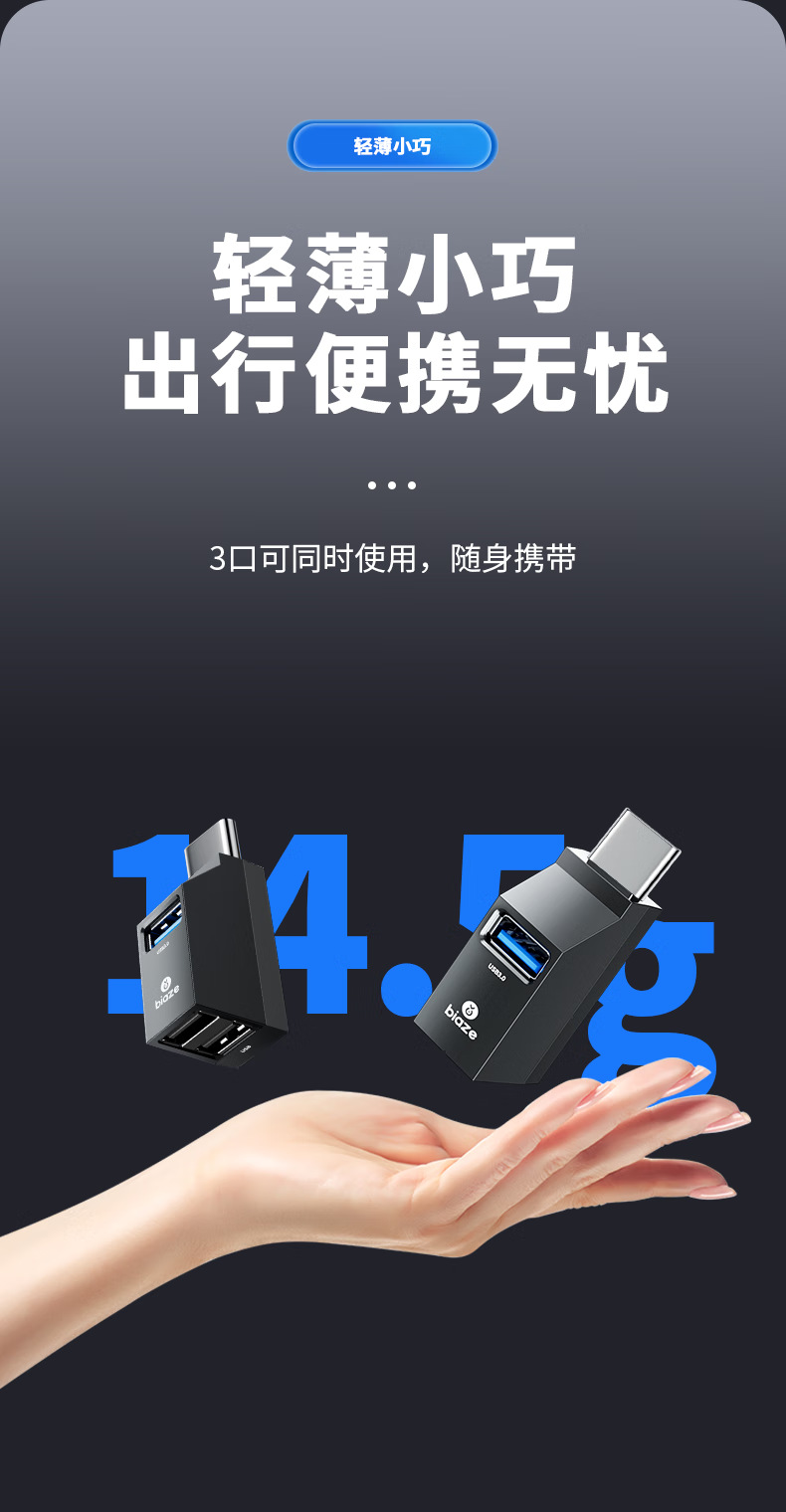 Biaz Type-C 스플리터 USB3.0 3 대 1 허브 허브 변환 직접 플러그 어댑터스토어 가기
