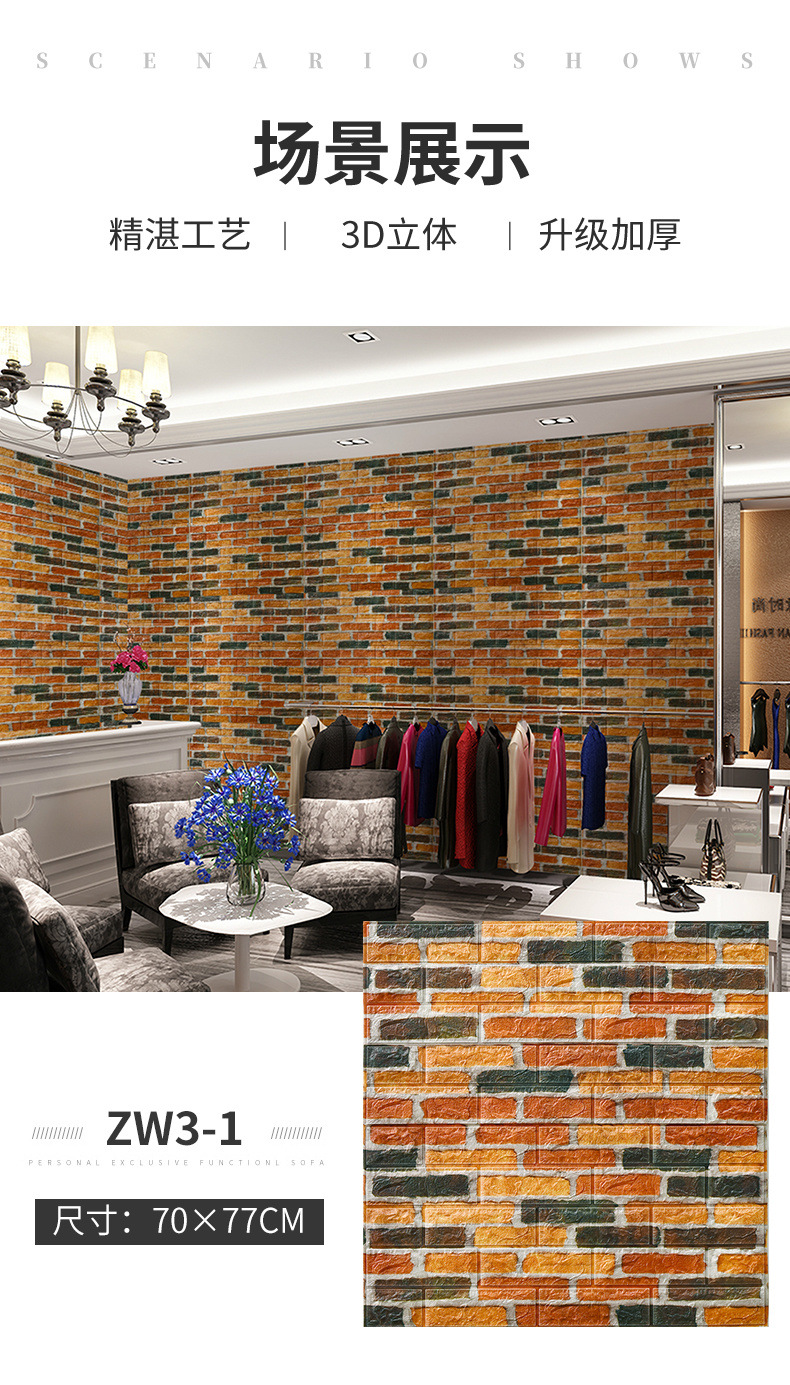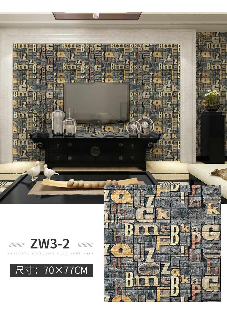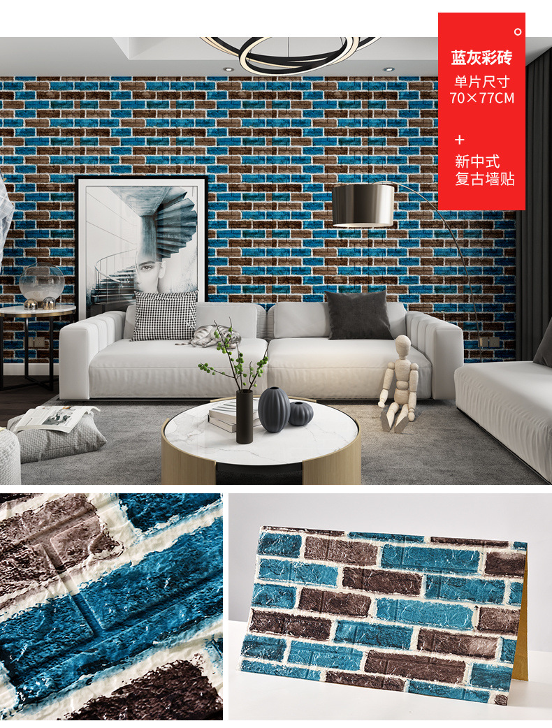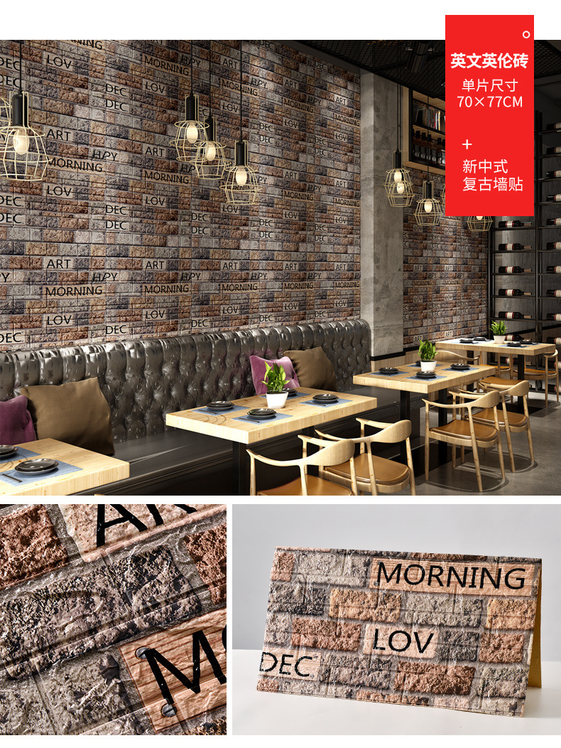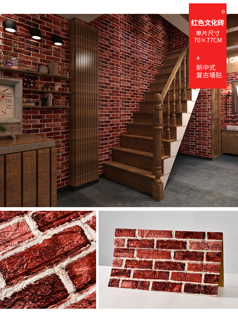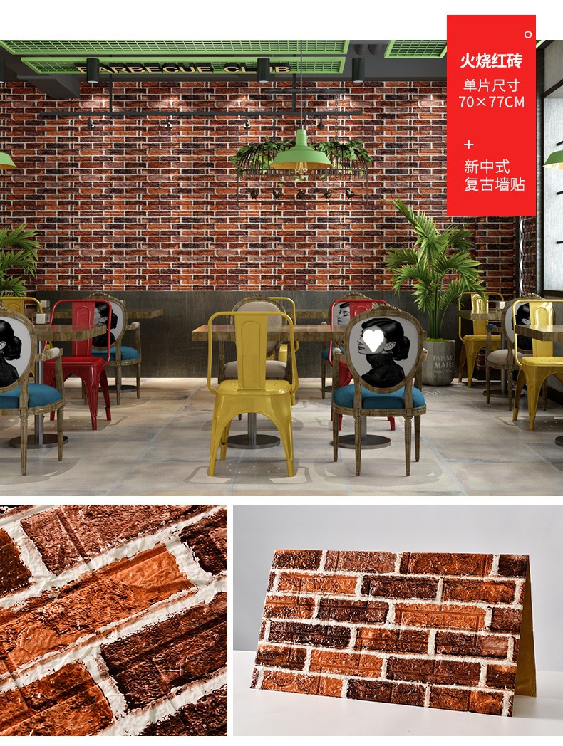 문화 벽돌 벽 스티커 중국 3D 벽돌 패턴 자기 접착 침실 거실 티 하우스 의류 매장 벽 장식 벽지