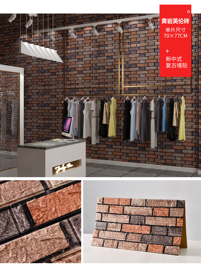 문화 벽돌 벽 스티커 중국 3D 벽돌 패턴 자기 접착 침실 거실 티 하우스 의류 매장 벽 장식 벽지스토어 가기