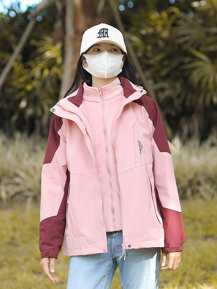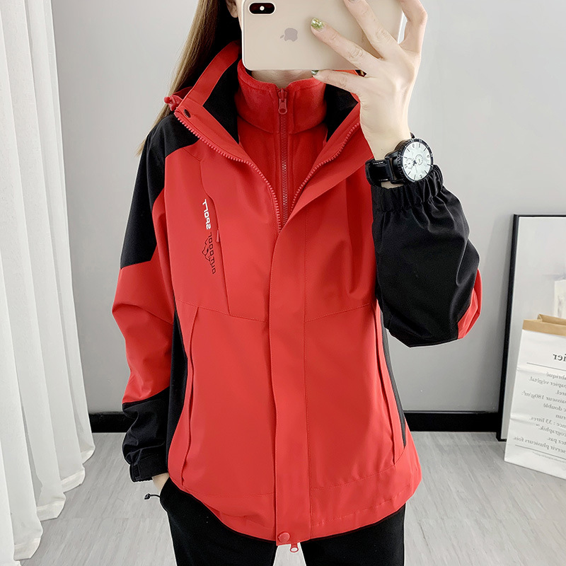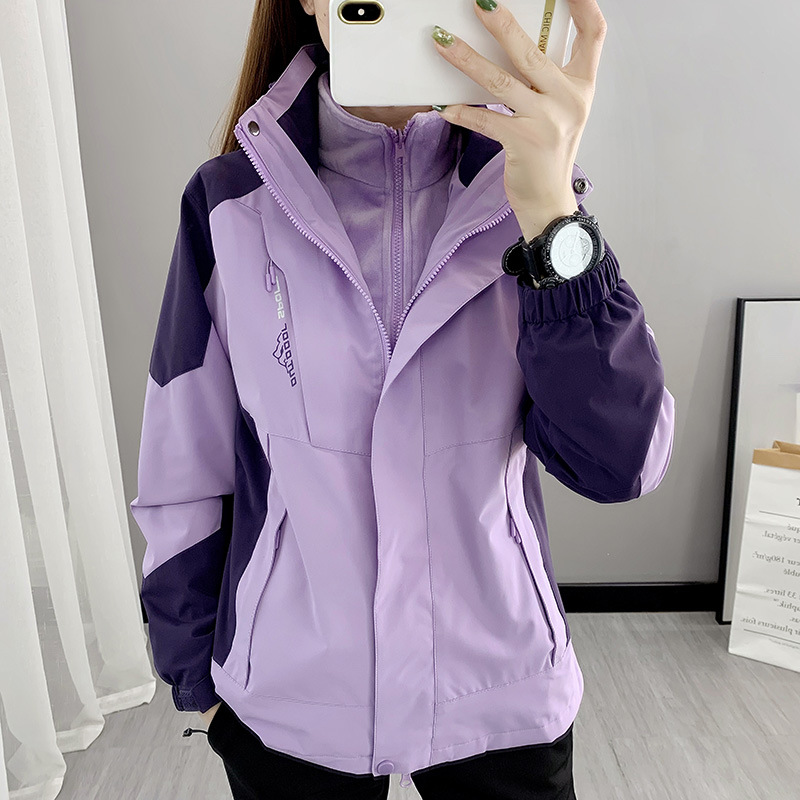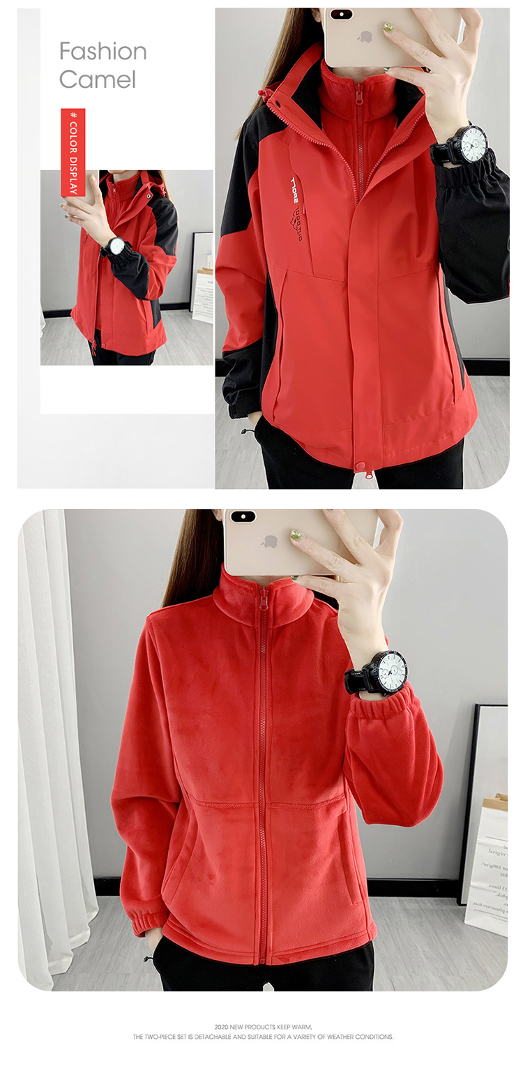 가을과 겨울의 새로운 재킷 여성의 탈착식 투피스 플리스 라이너가 두껍게 따뜻한 등산 세트
