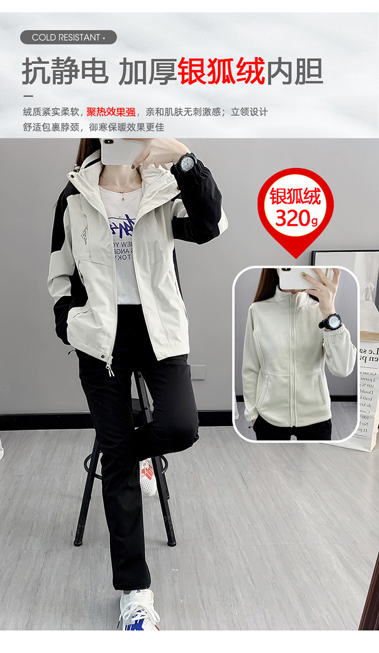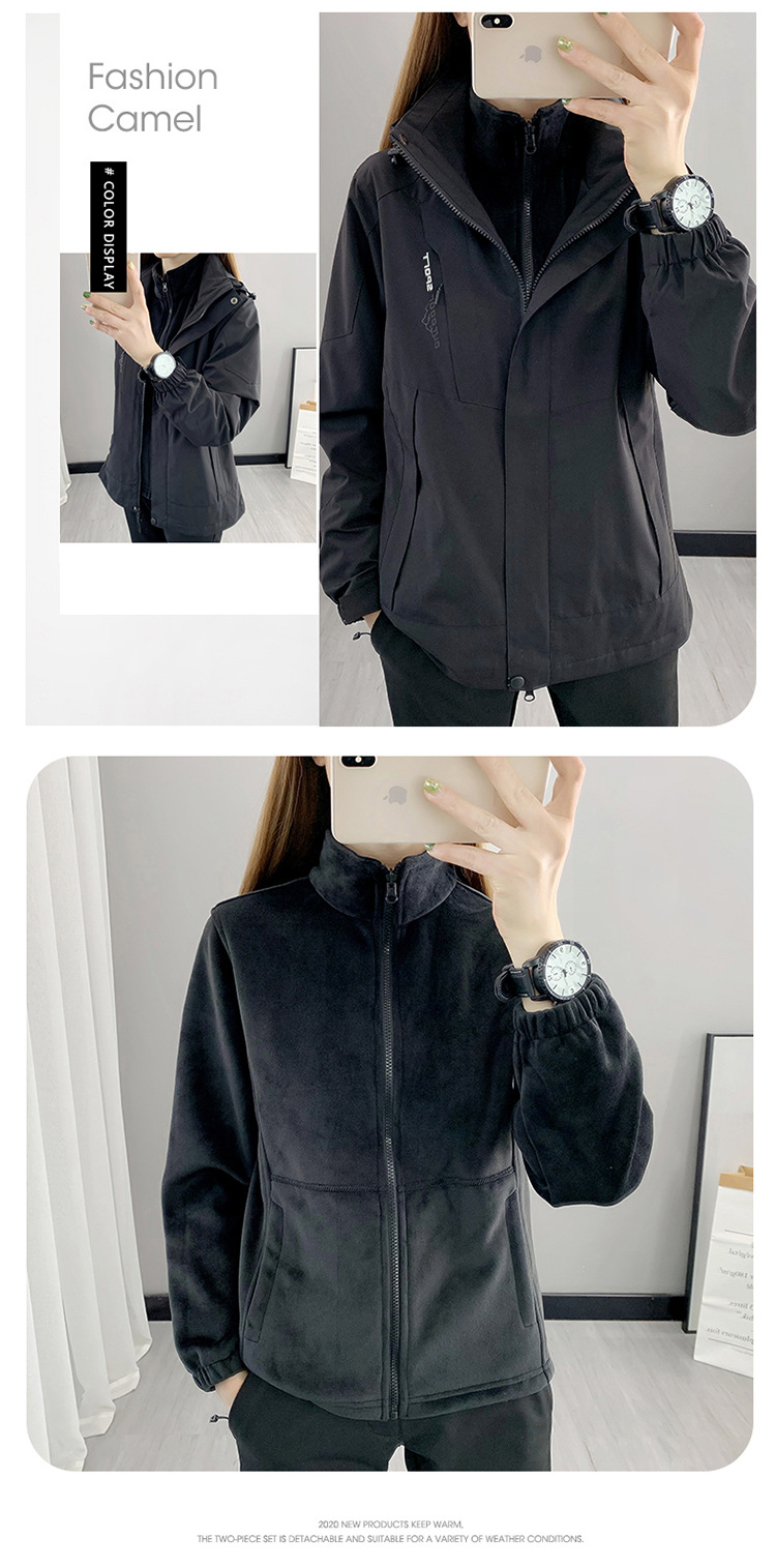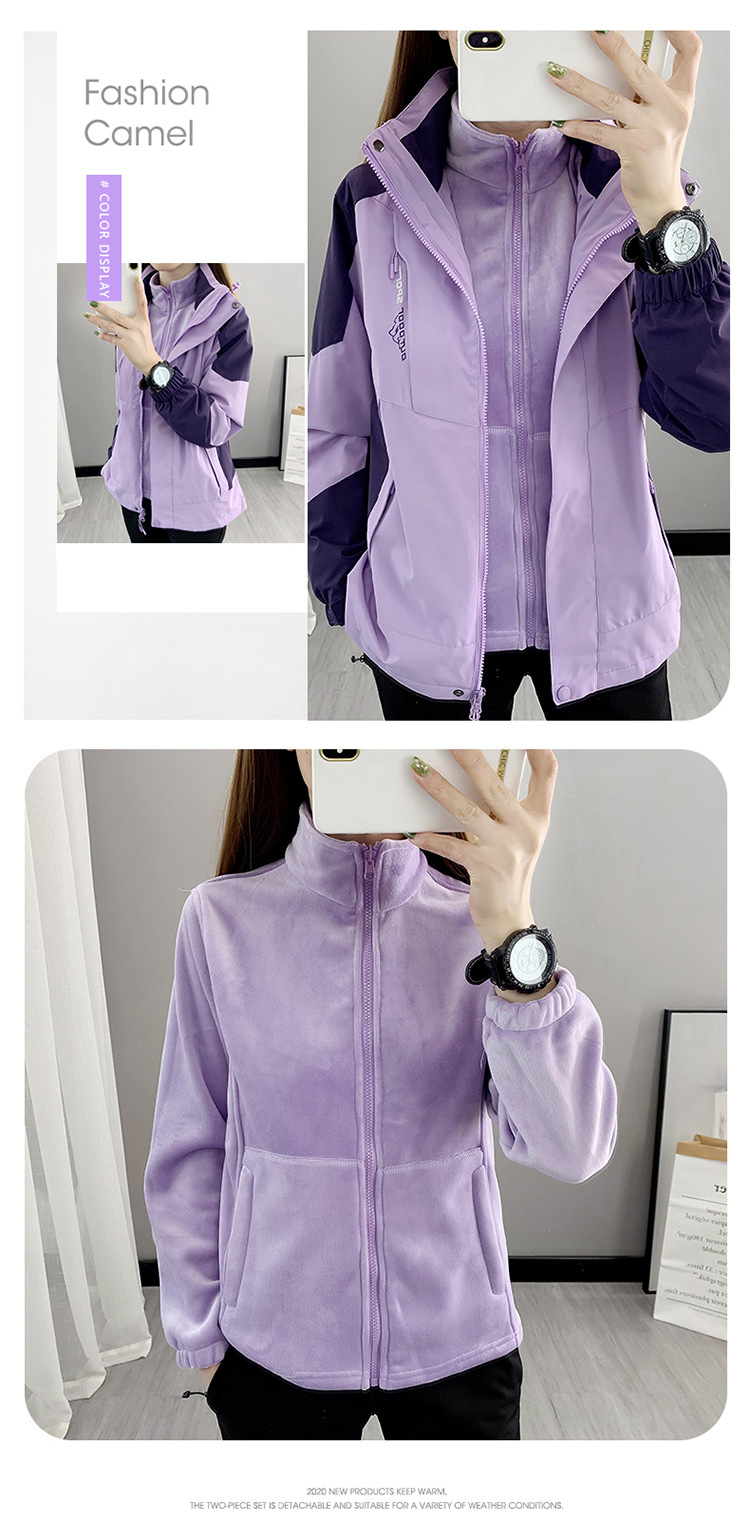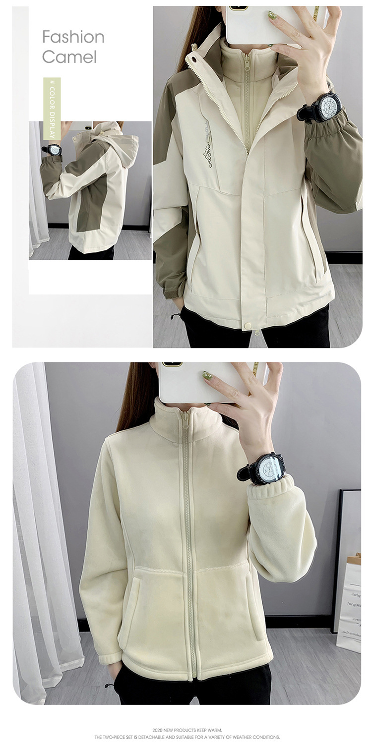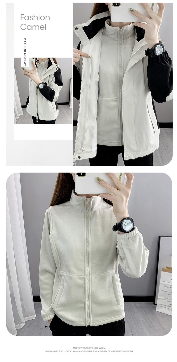 가을과 겨울의 새로운 재킷 여성의 탈착식 투피스 플리스 라이너가 두껍게 따뜻한 등산 세트스토어 가기