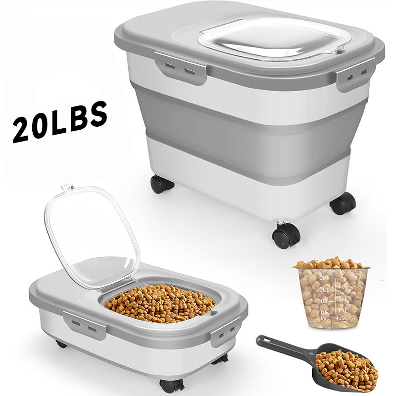 2023 새로운 곡물 저장 배럴 접히는 애완 동물 곡물 밀봉 배럴 휠 수분 방지 쌀 배럴 대용량 저장 상자