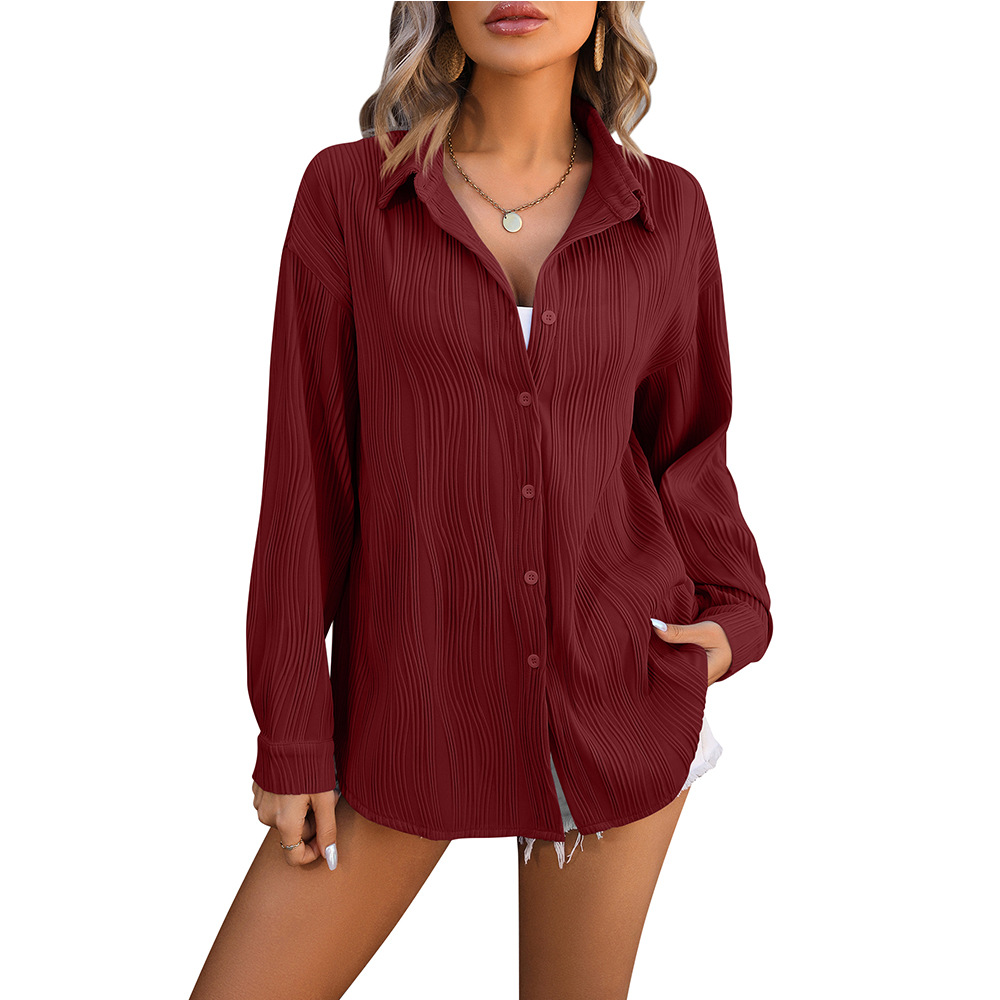 국경 간 유럽과 미국 여성 의류 2024 봄과 여름 새로운 아마존 독립 역 웨이브 질감 느슨한 패션 셔츠 여성