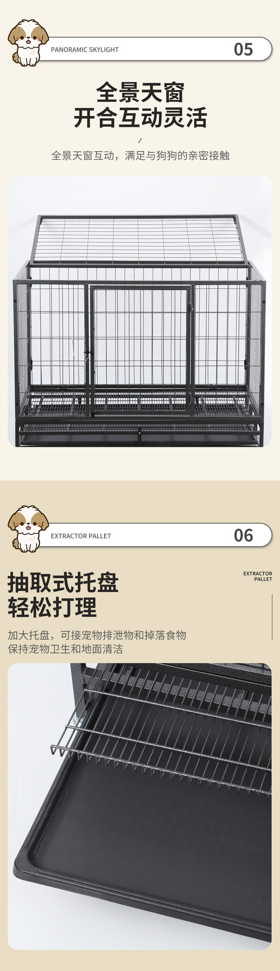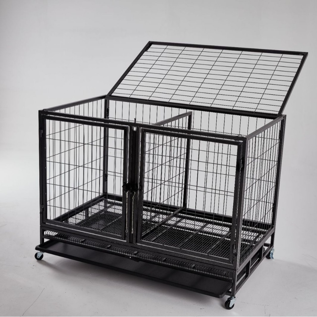 실내 편리한 사각 튜브 와이어 개 케이지 멀티 바디 애완 동물 먹이 케이지 스카이 라이트 프론트 도어 더블 도어 애완 동물 케이지