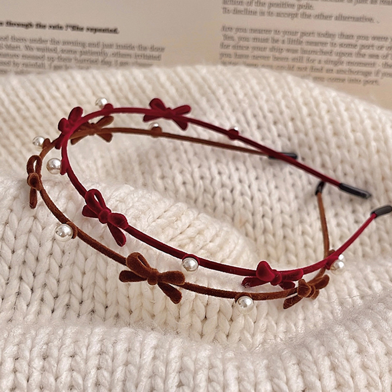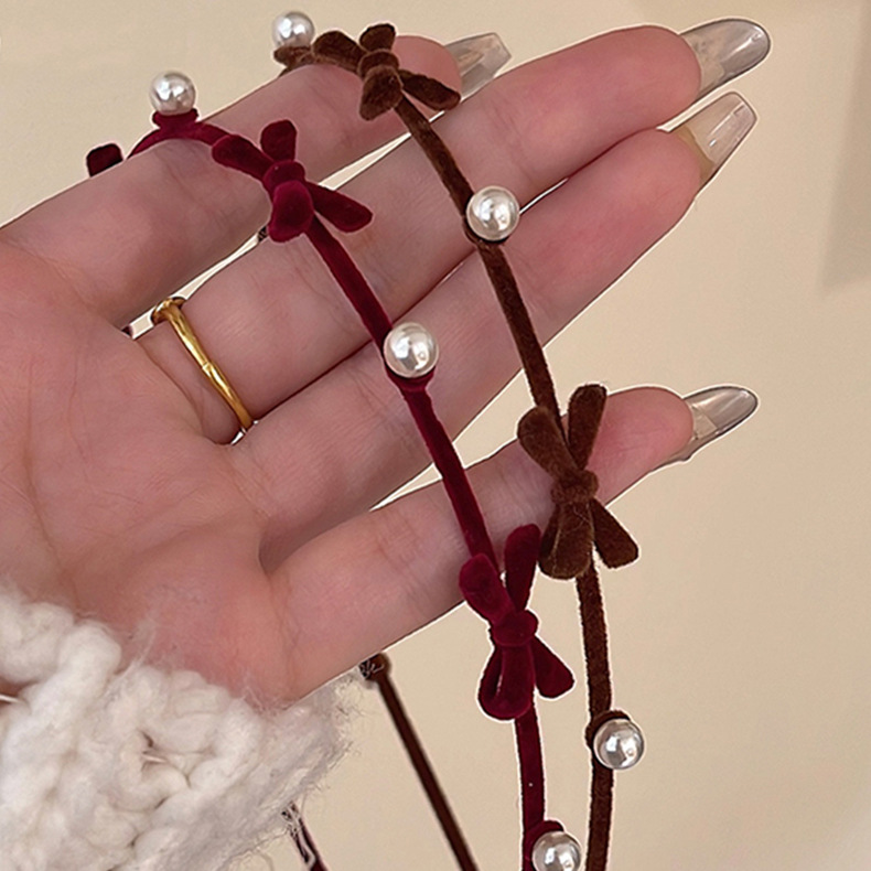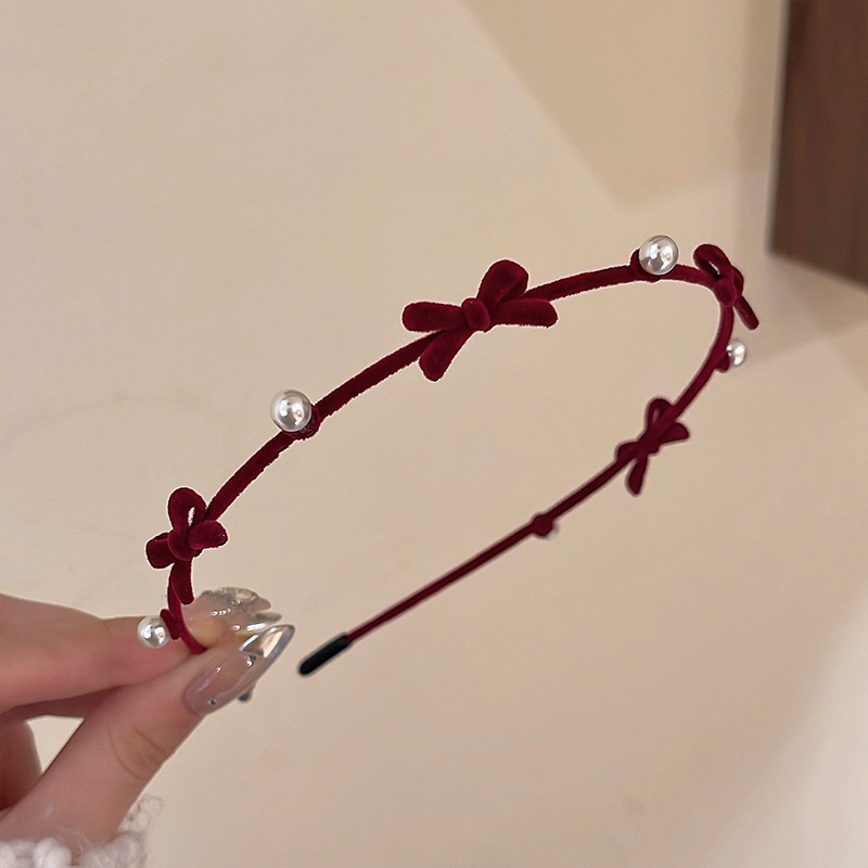 새로운 높은 감각 새해 머리띠 올 매치 머리 장식 여성을위한 절묘한 빨간 벨벳 활 얇은 가장자리 머리핀 머리띠 2023