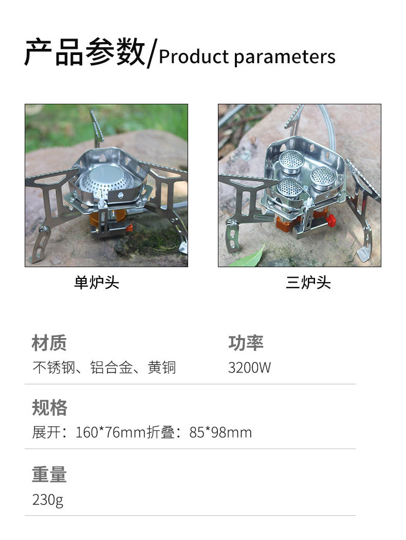 튜브가 있는 캠핑 스토브, 작고 휴대성이 뛰어난 3구 스토브, 고화력 야외 물 끓이는 스토브, 라벨이 있는 캠핑 용품