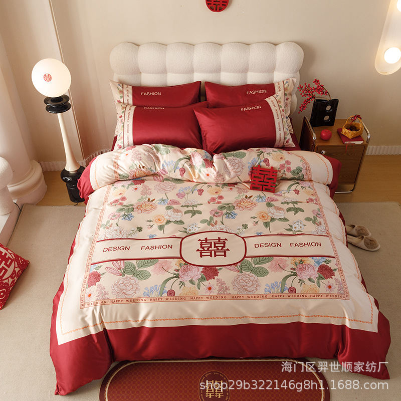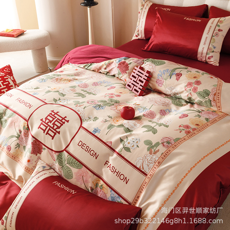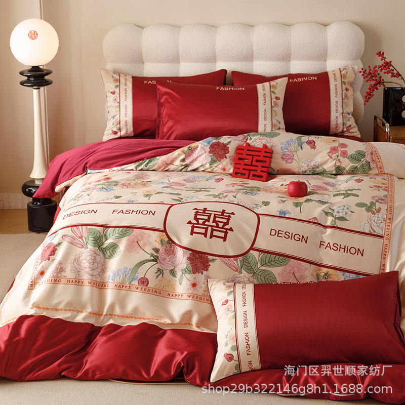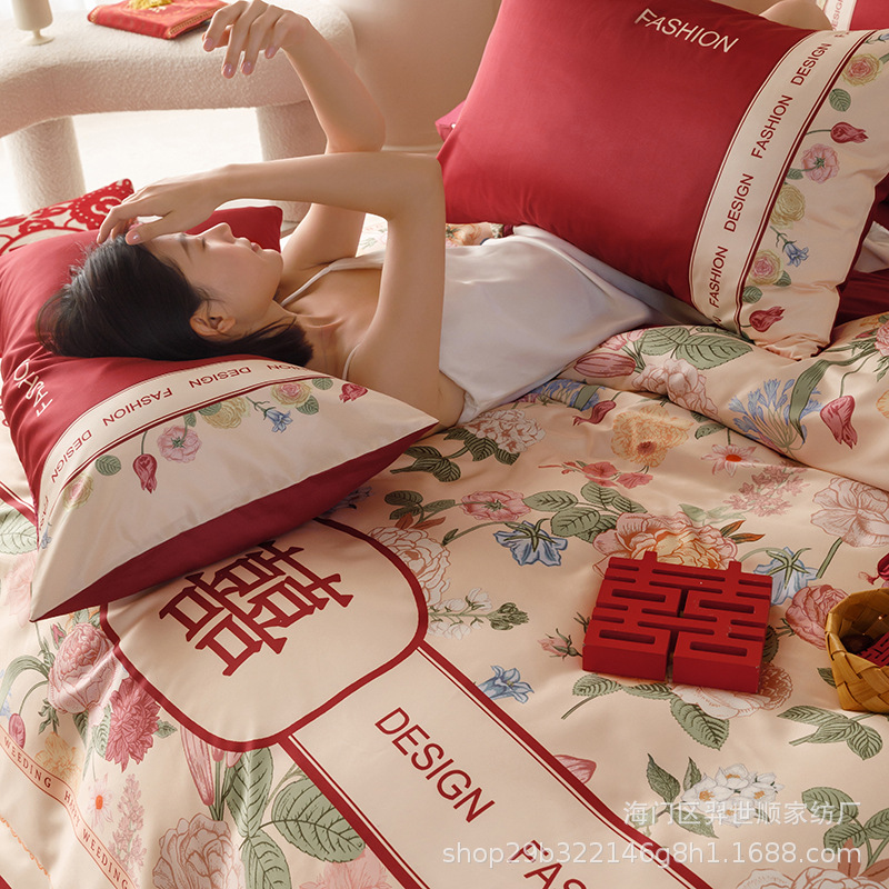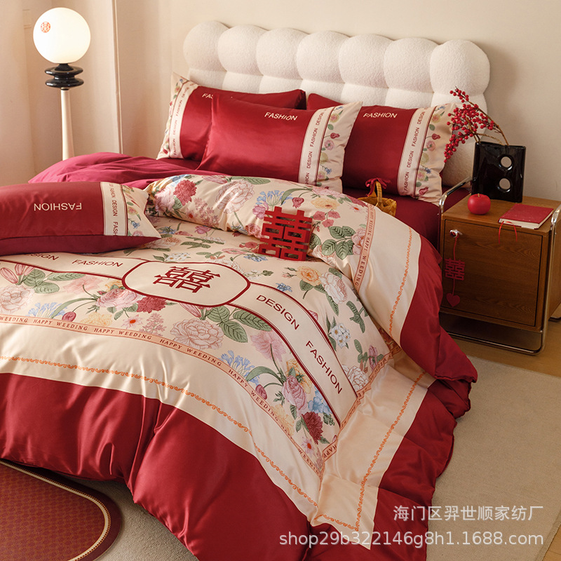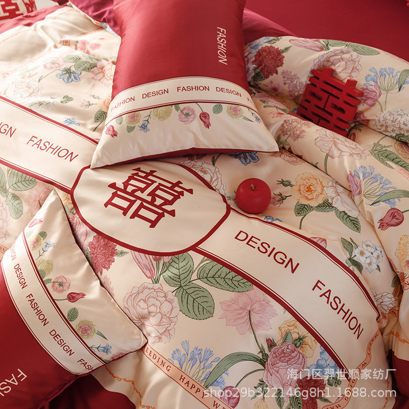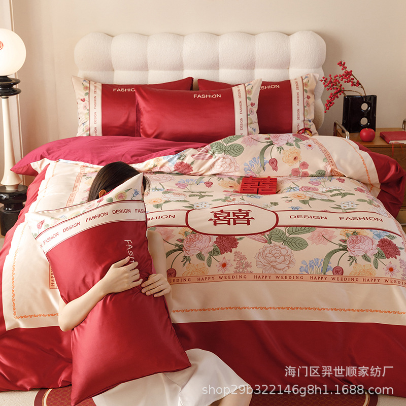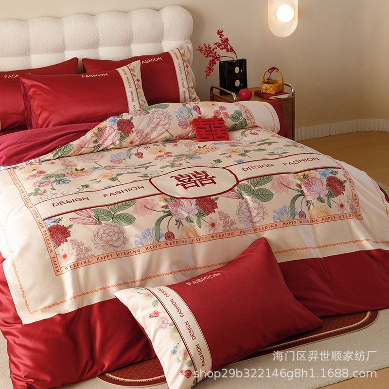 새로운 하이 엔드 웨딩 4 피스 중국 웨딩 침대 시트 퀼트 커버 빅 레드 웨딩 룸 침구 축하