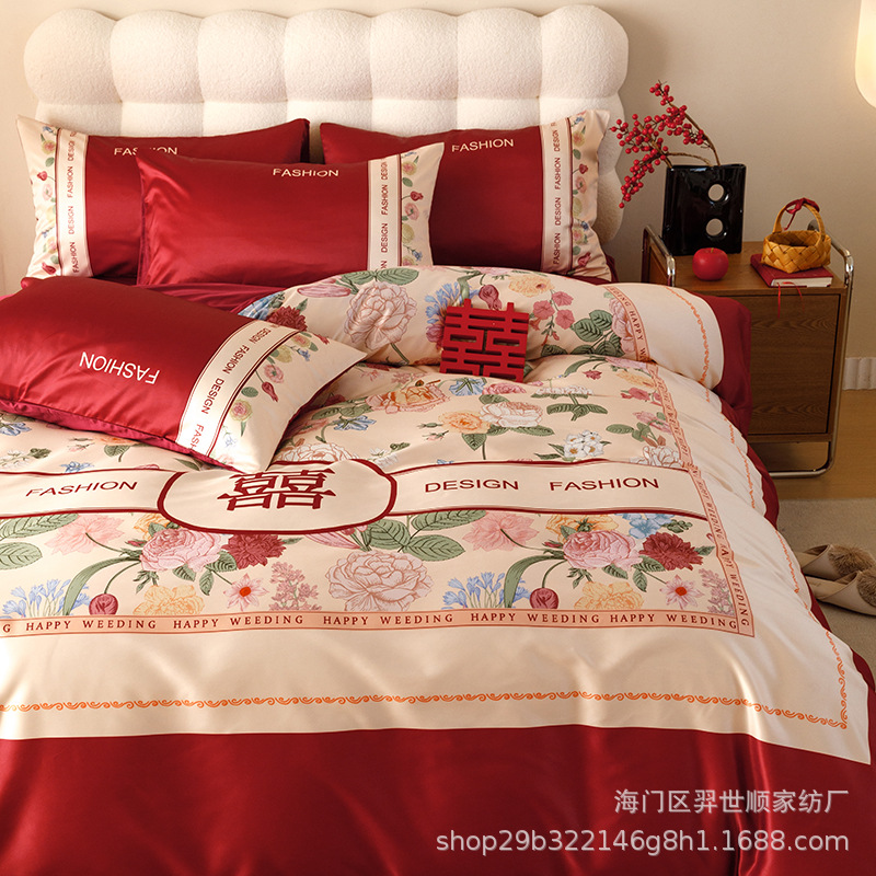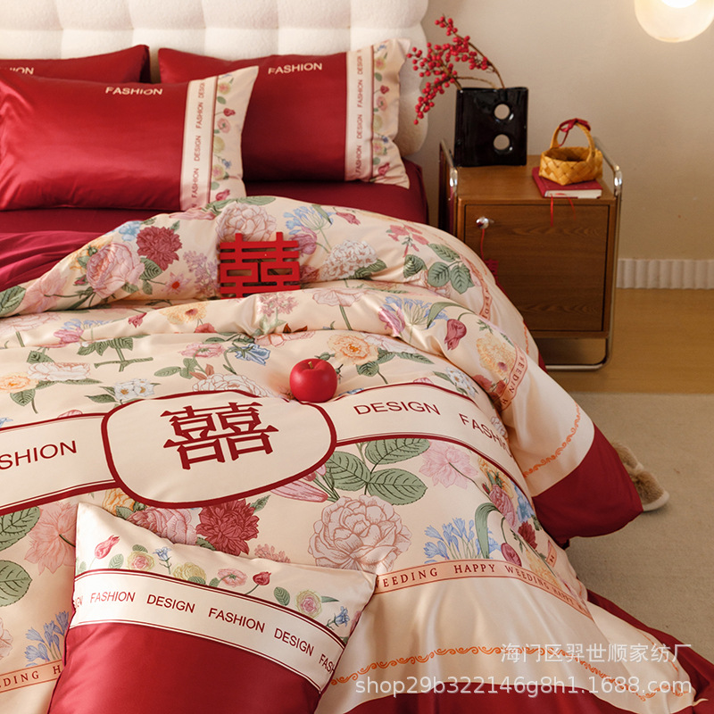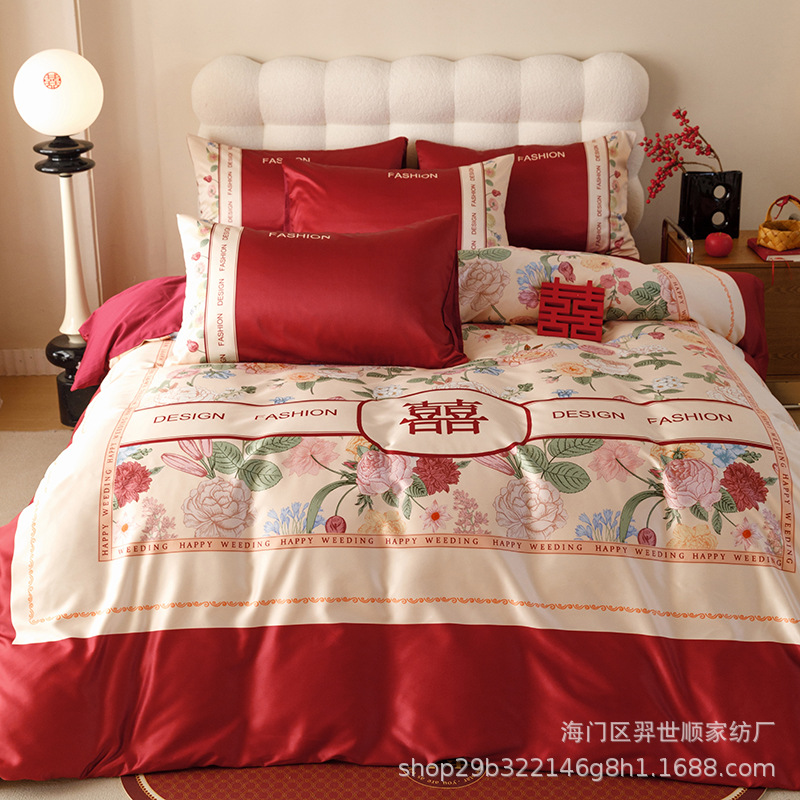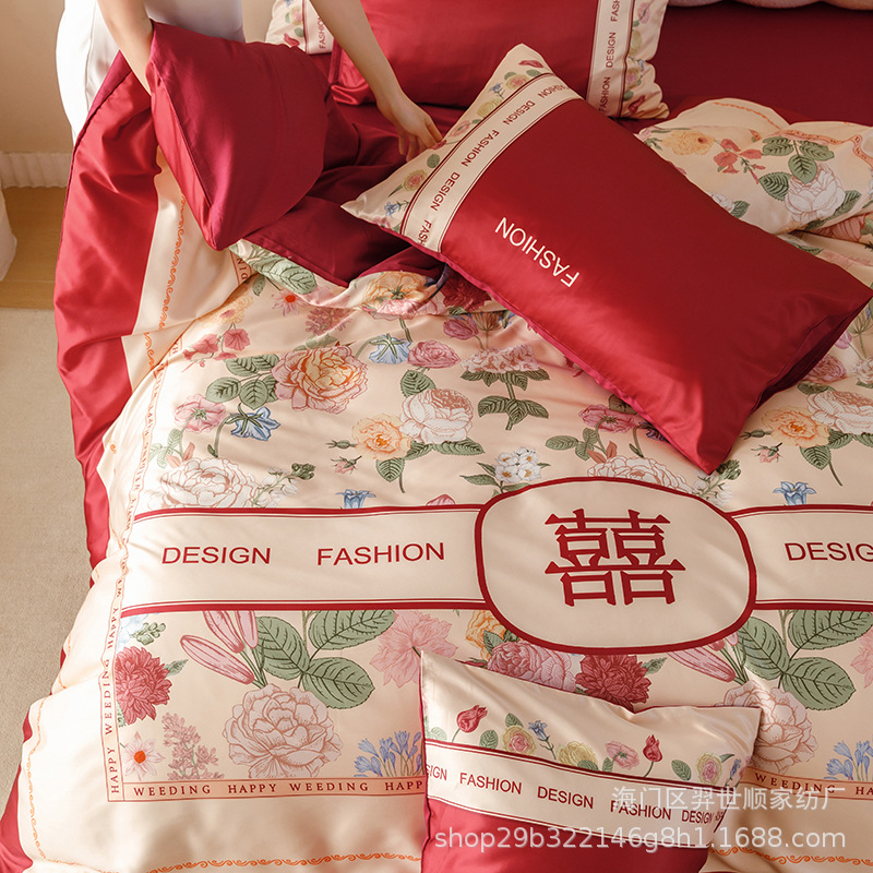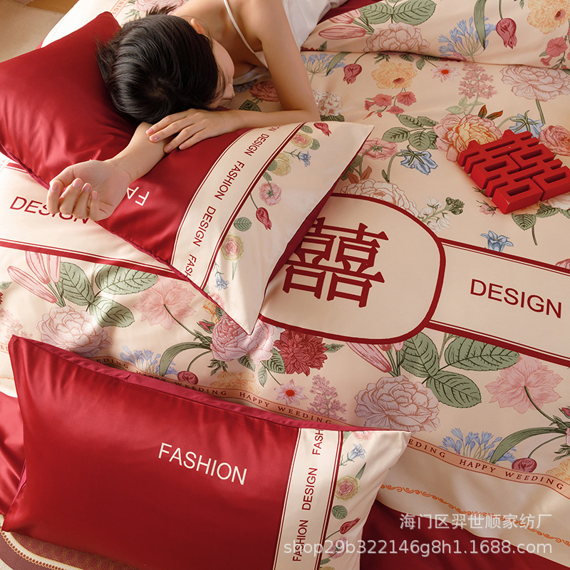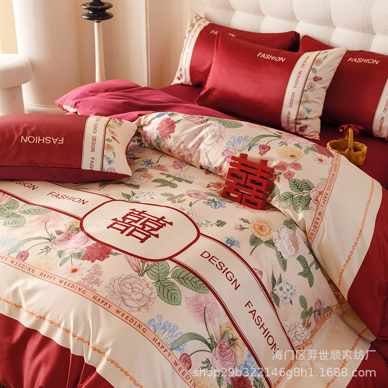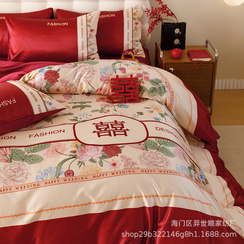 새로운 하이 엔드 웨딩 4 피스 중국 웨딩 침대 시트 퀼트 커버 빅 레드 웨딩 룸 침구 축하