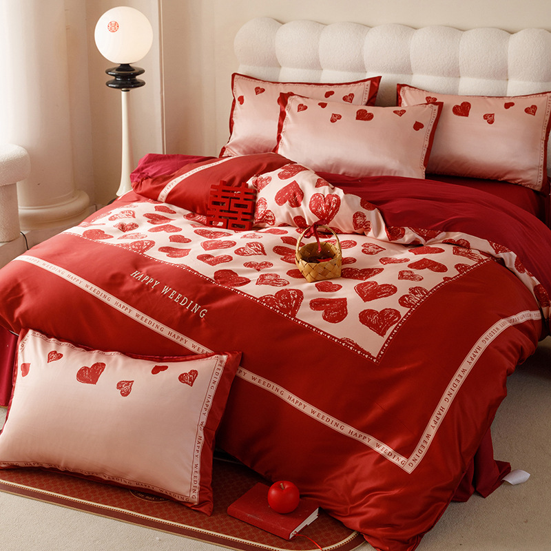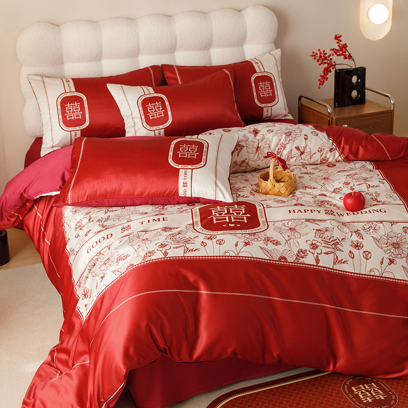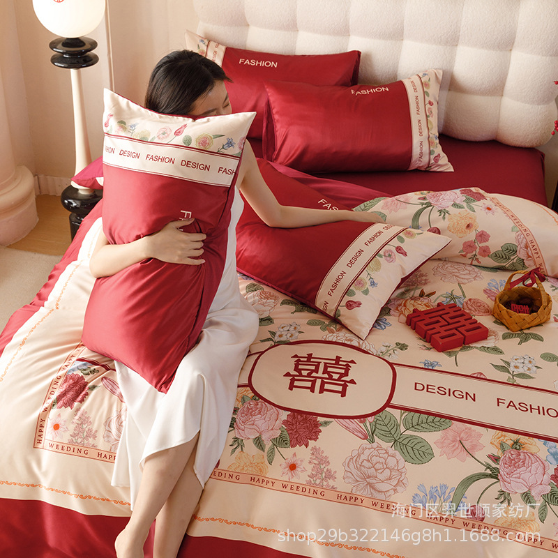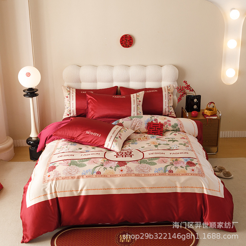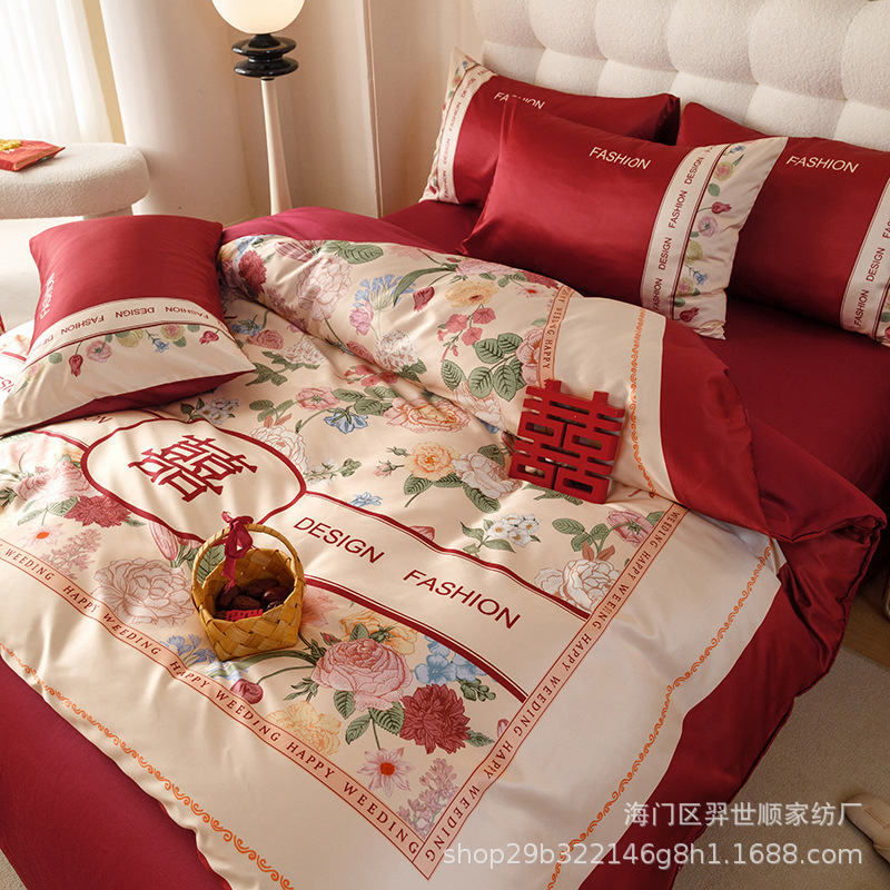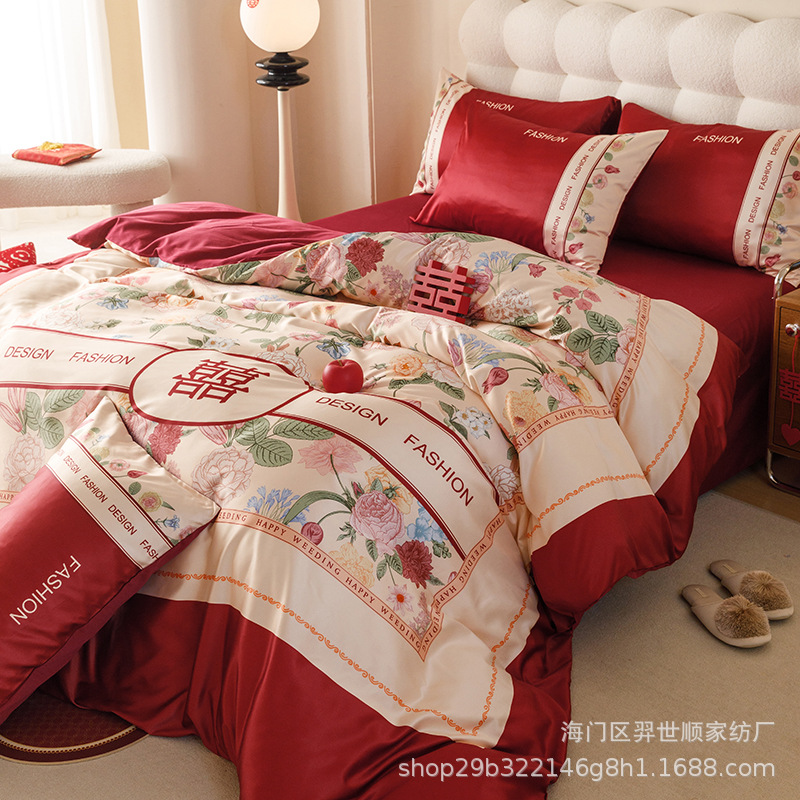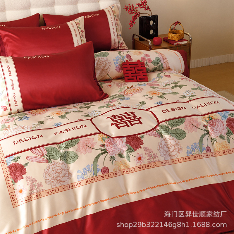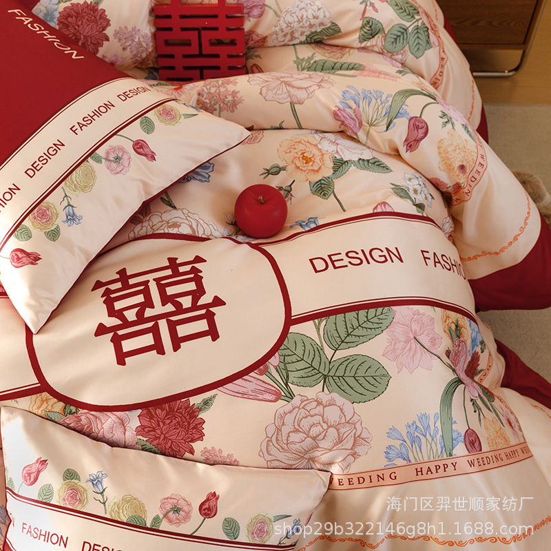 새로운 하이 엔드 웨딩 4 피스 중국 웨딩 침대 시트 퀼트 커버 빅 레드 웨딩 룸 침구 축하