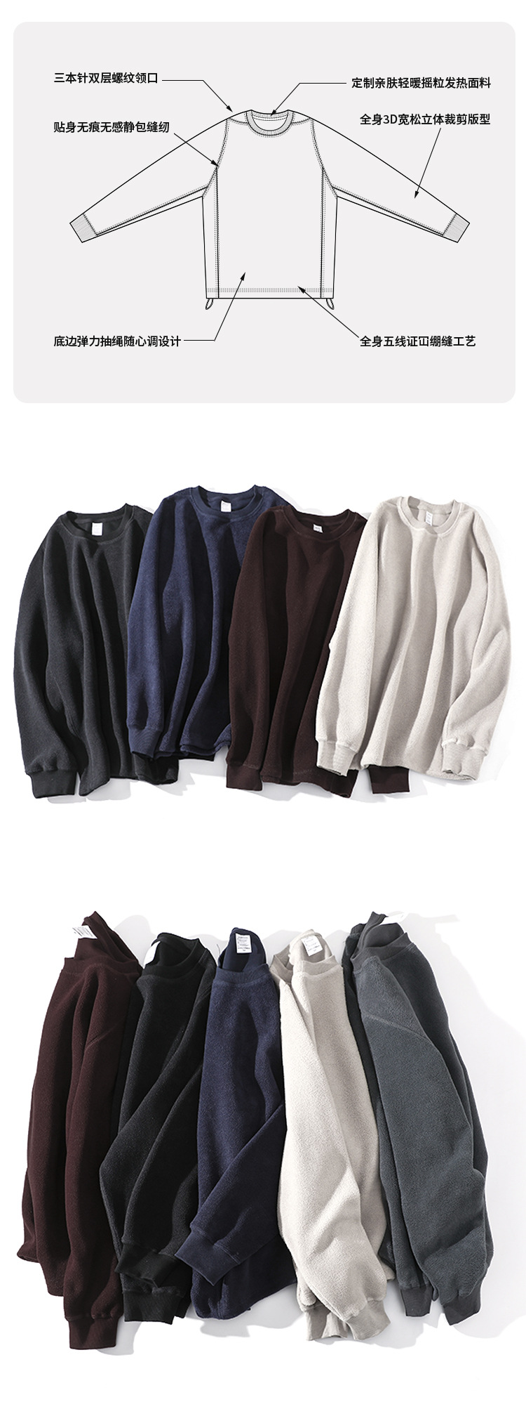 무거운 극지 양털 스웨터 360g 남성과 여성의 기모 캐주얼 한 피부 친화적 인 가벼운 따뜻한 조밀 한 극지 양털 느슨한 둥근 목 스웨터