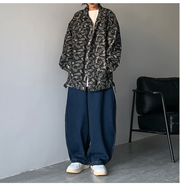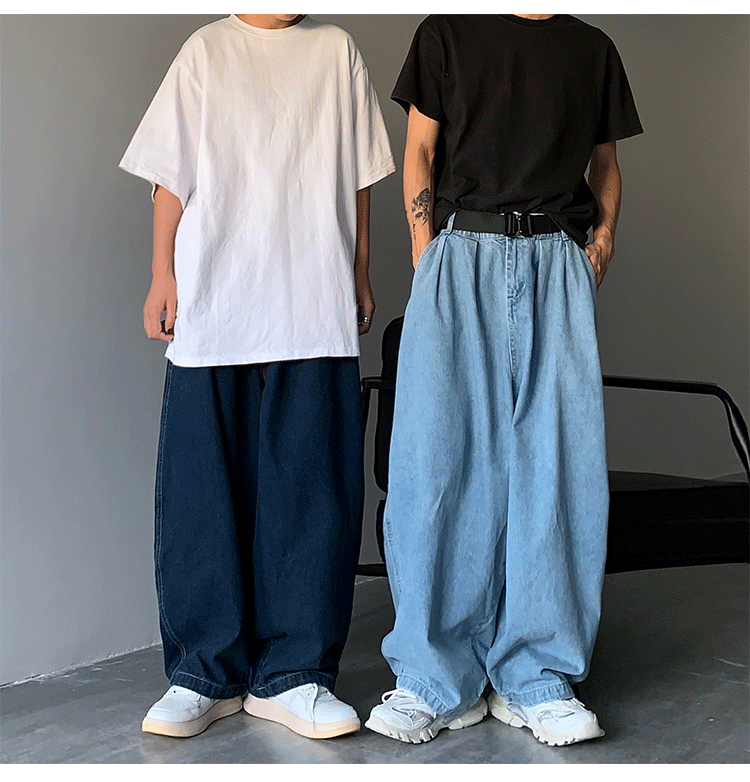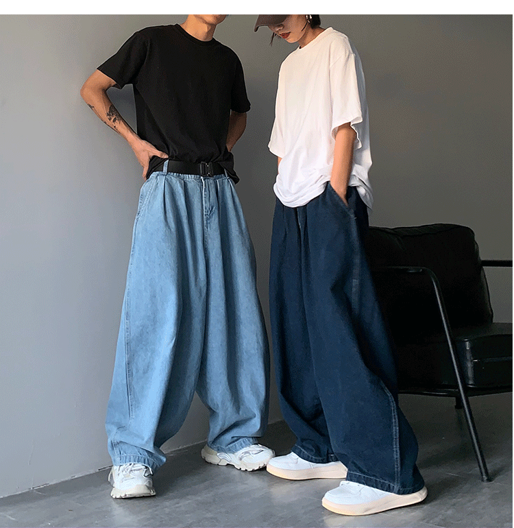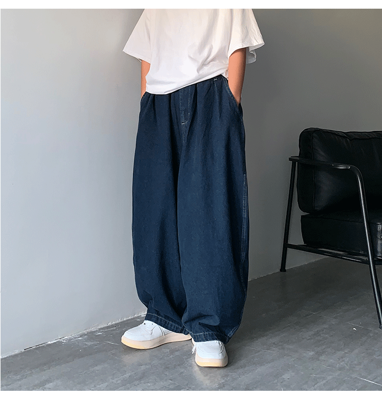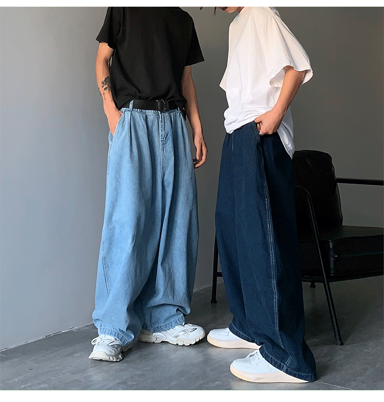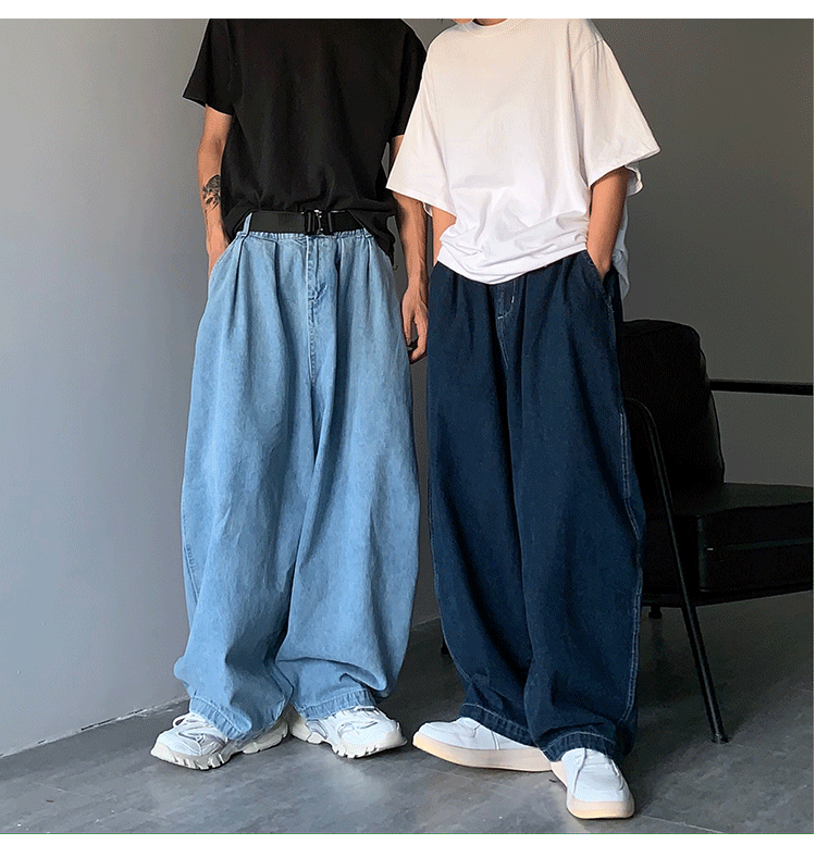 일본 스트리트 패션 브랜드 도시 소년 남성용 올 매치 단색 와이드 레그 청바지 복고풍 드롭 다운 아빠 바지스토어 가기