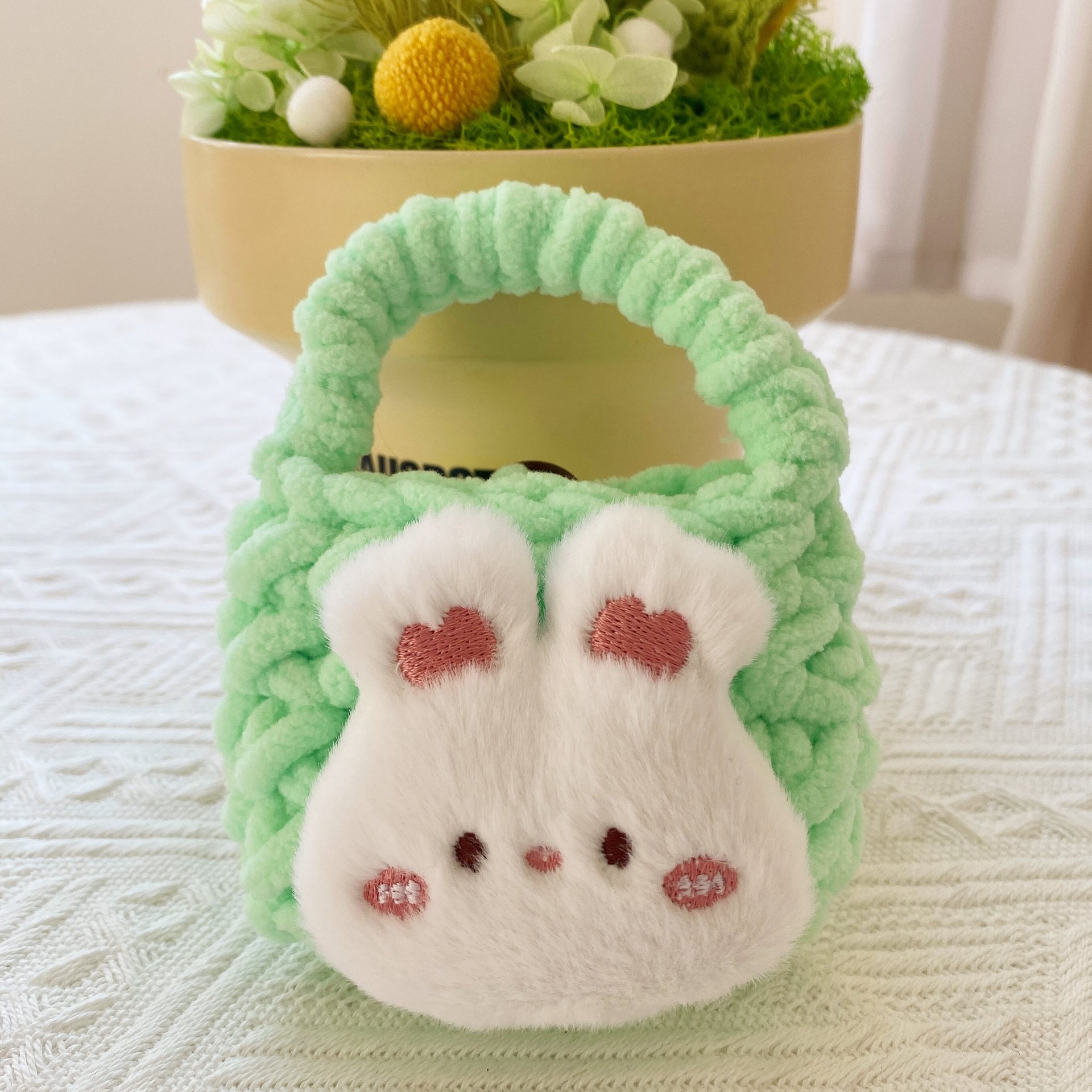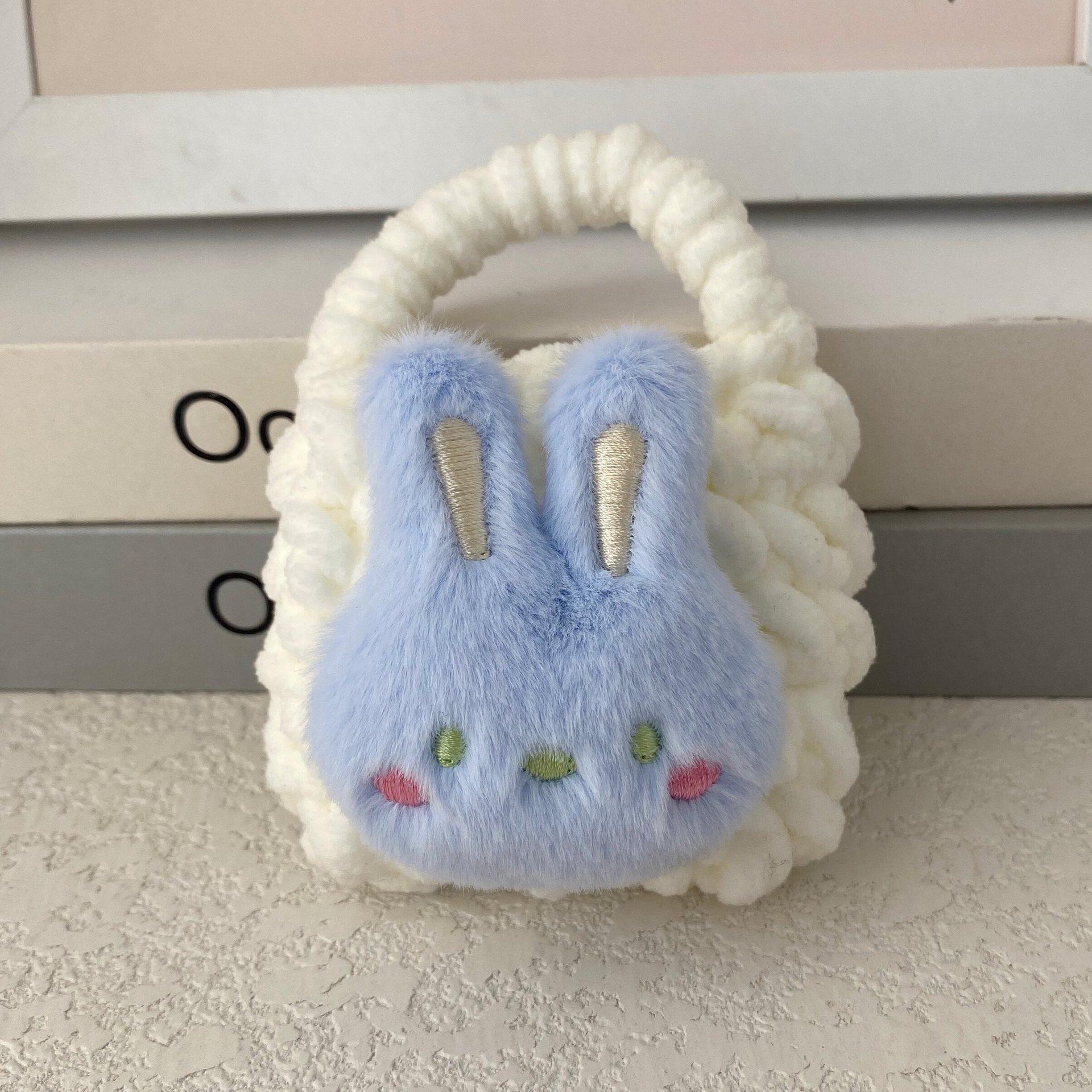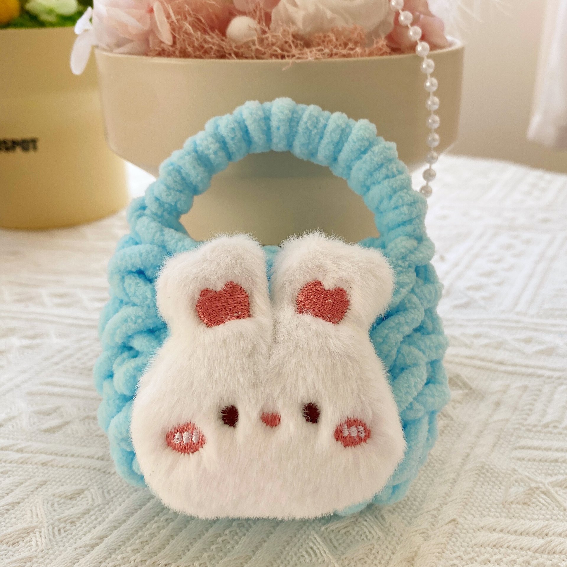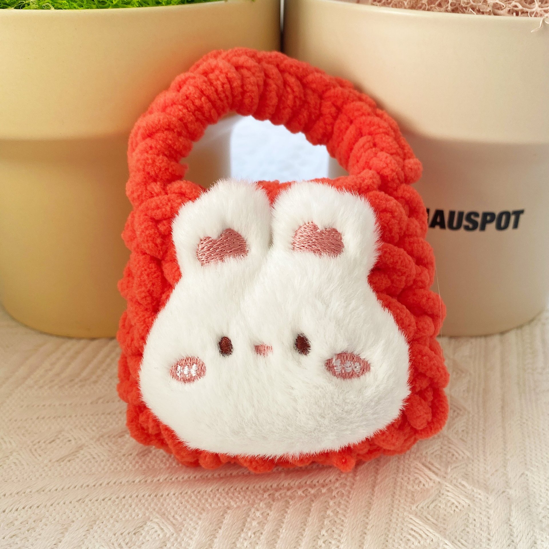 수제 크로 셰 뜨개질 귀여운 토끼 헤어 이어폰 가방 창조적 인 커플 지갑 동전 지갑 짠 이어폰 가방 도매