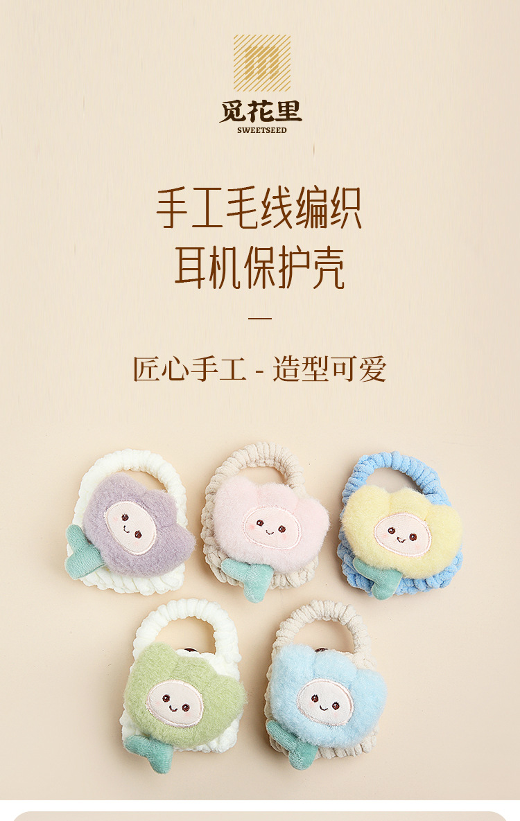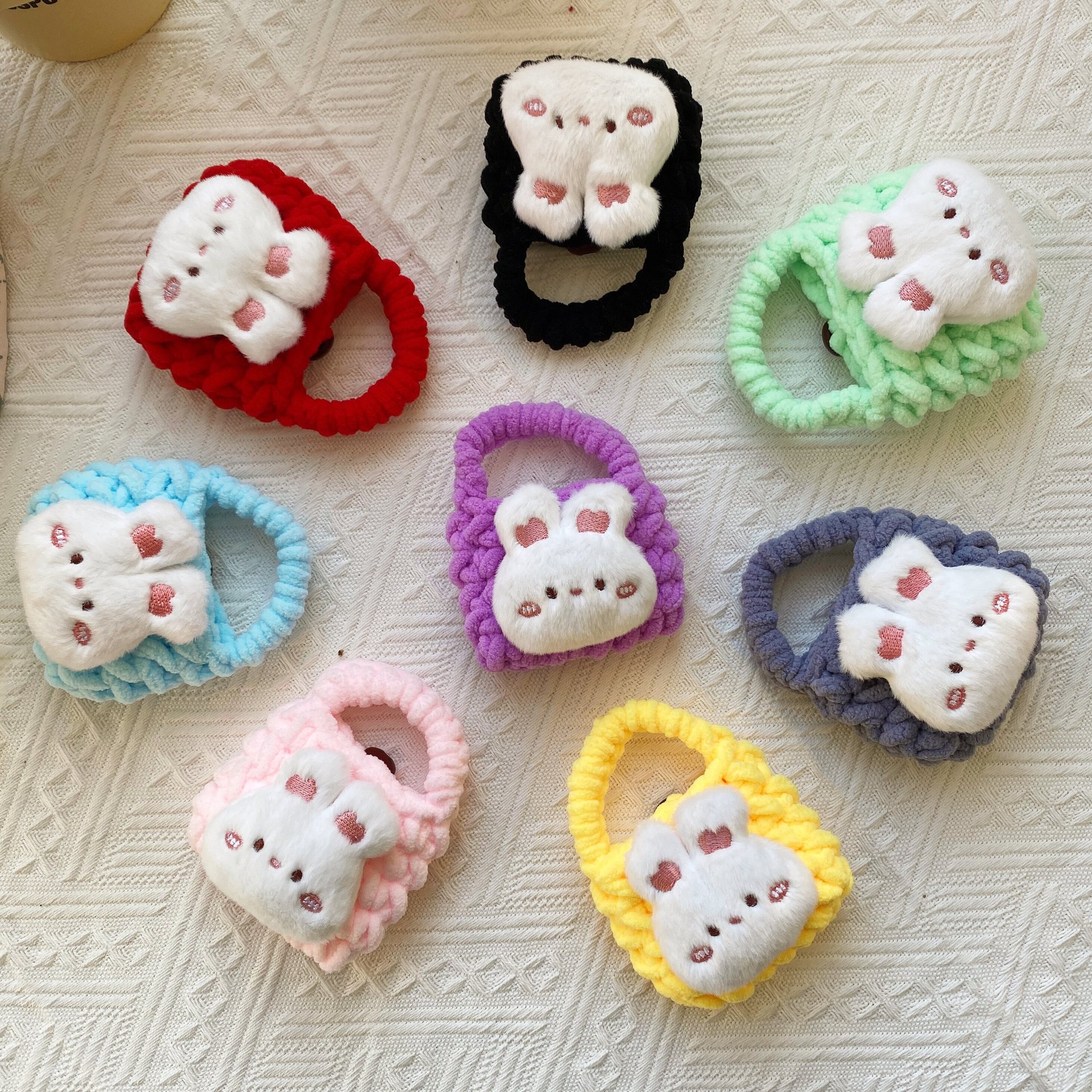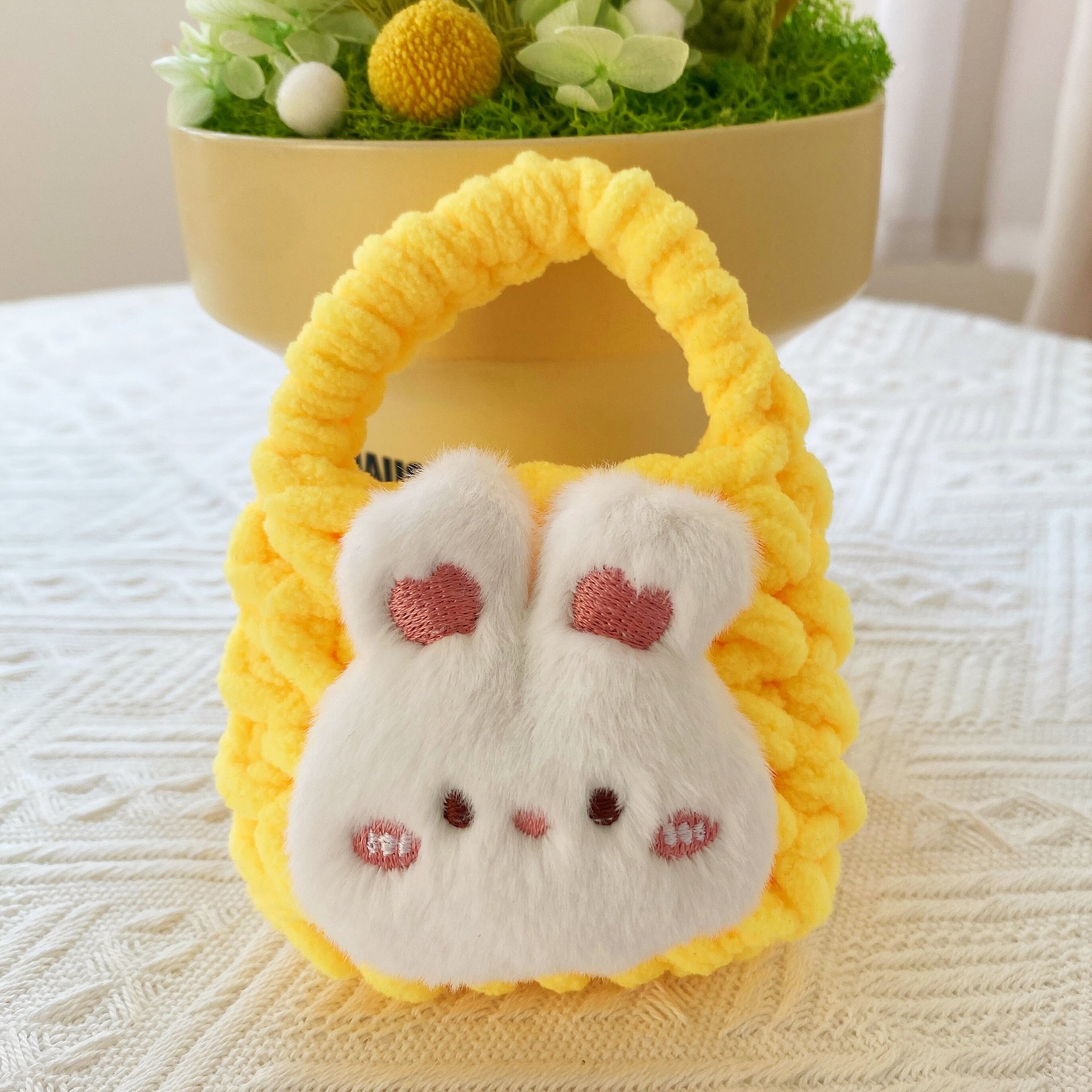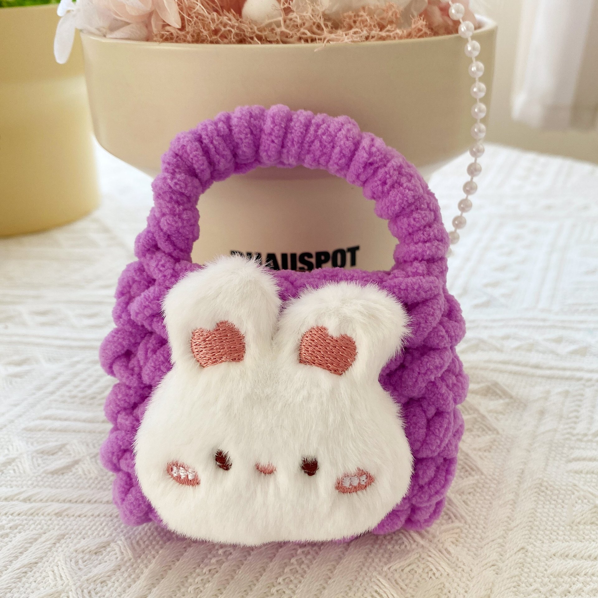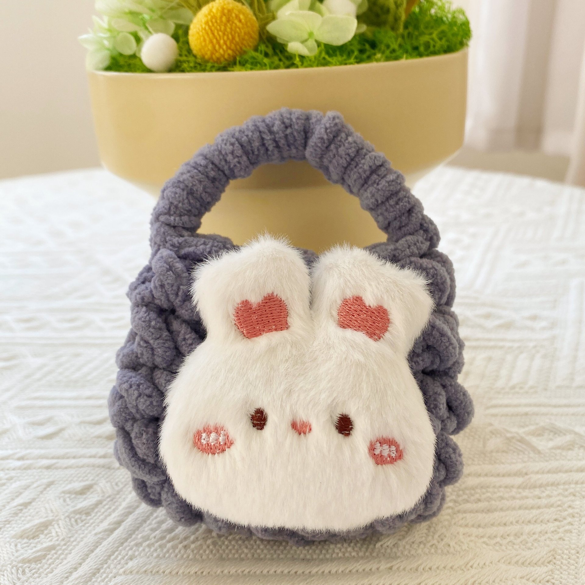 수제 크로 셰 뜨개질 귀여운 토끼 헤어 이어폰 가방 창조적 인 커플 지갑 동전 지갑 짠 이어폰 가방 도매