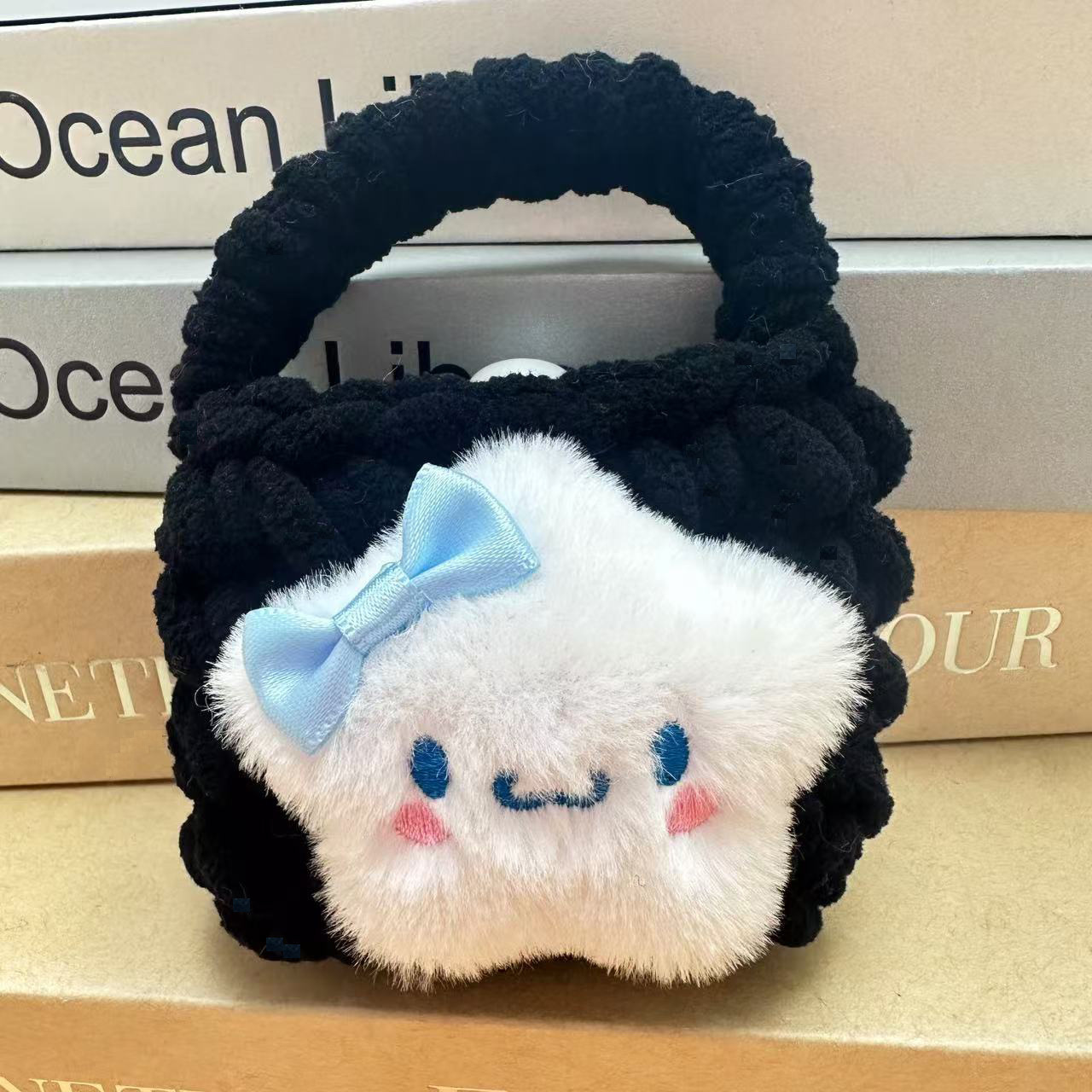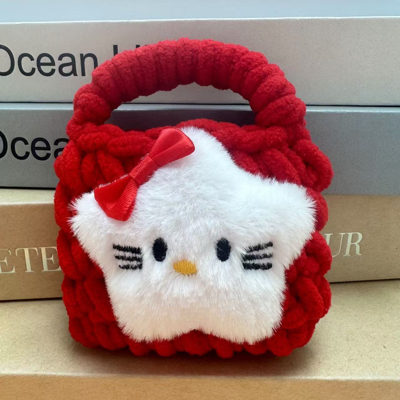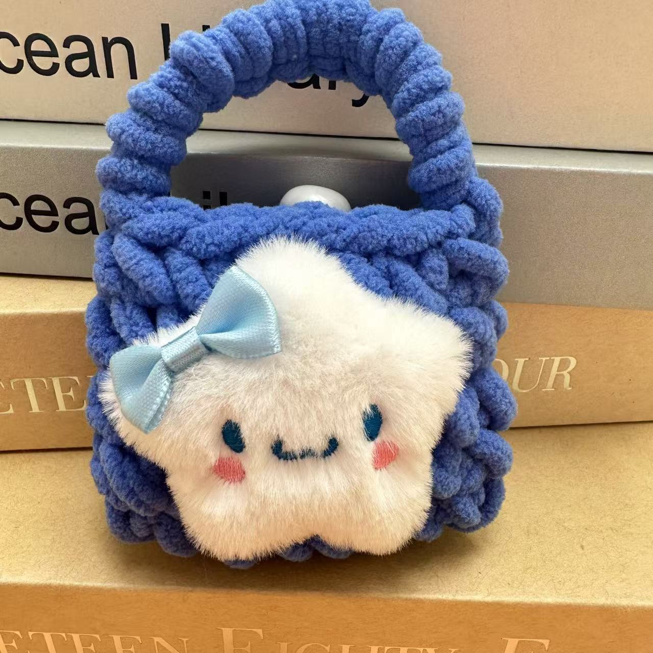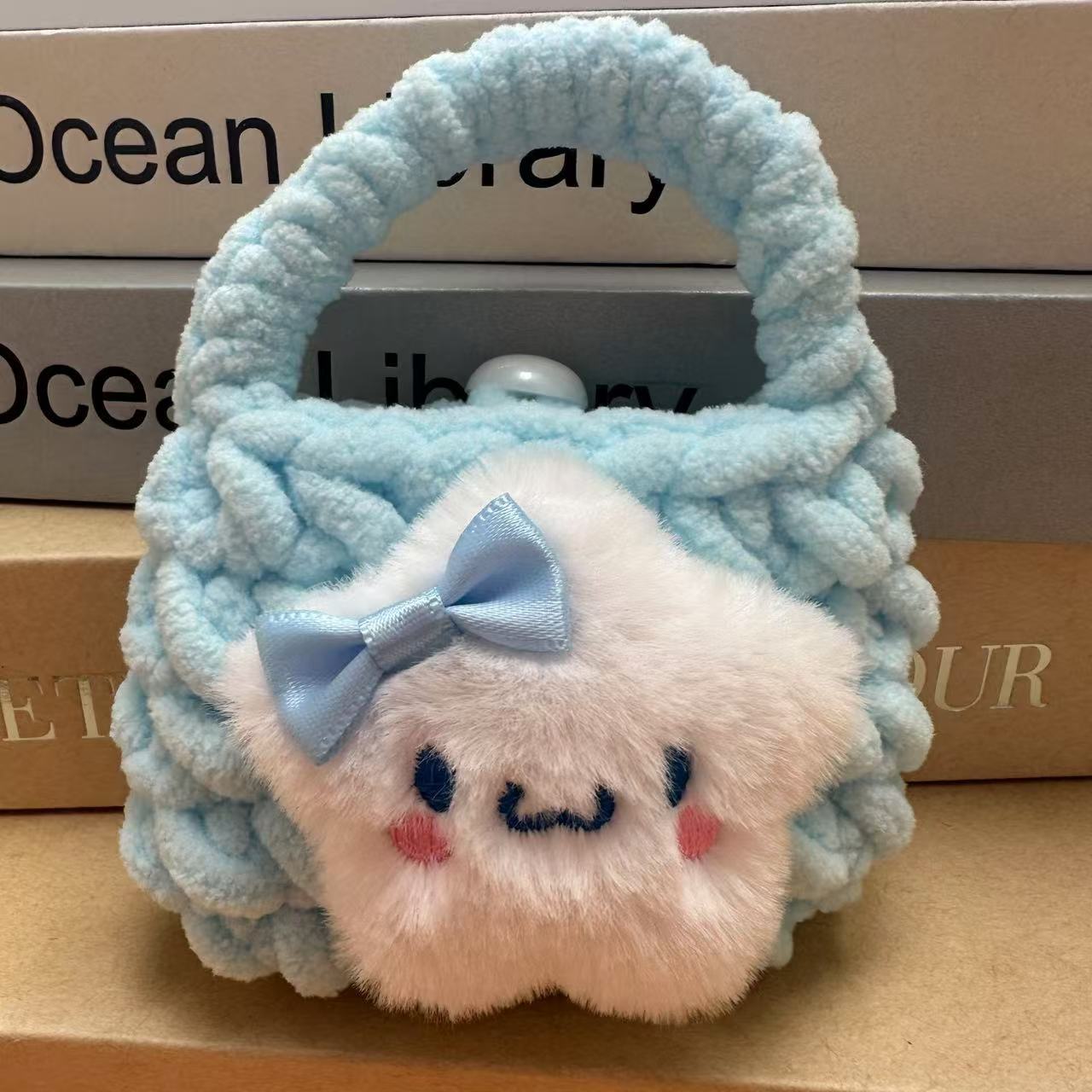 수제 크로 셰 뜨개질 귀여운 토끼 헤어 이어폰 가방 창조적 인 커플 지갑 동전 지갑 짠 이어폰 가방 도매