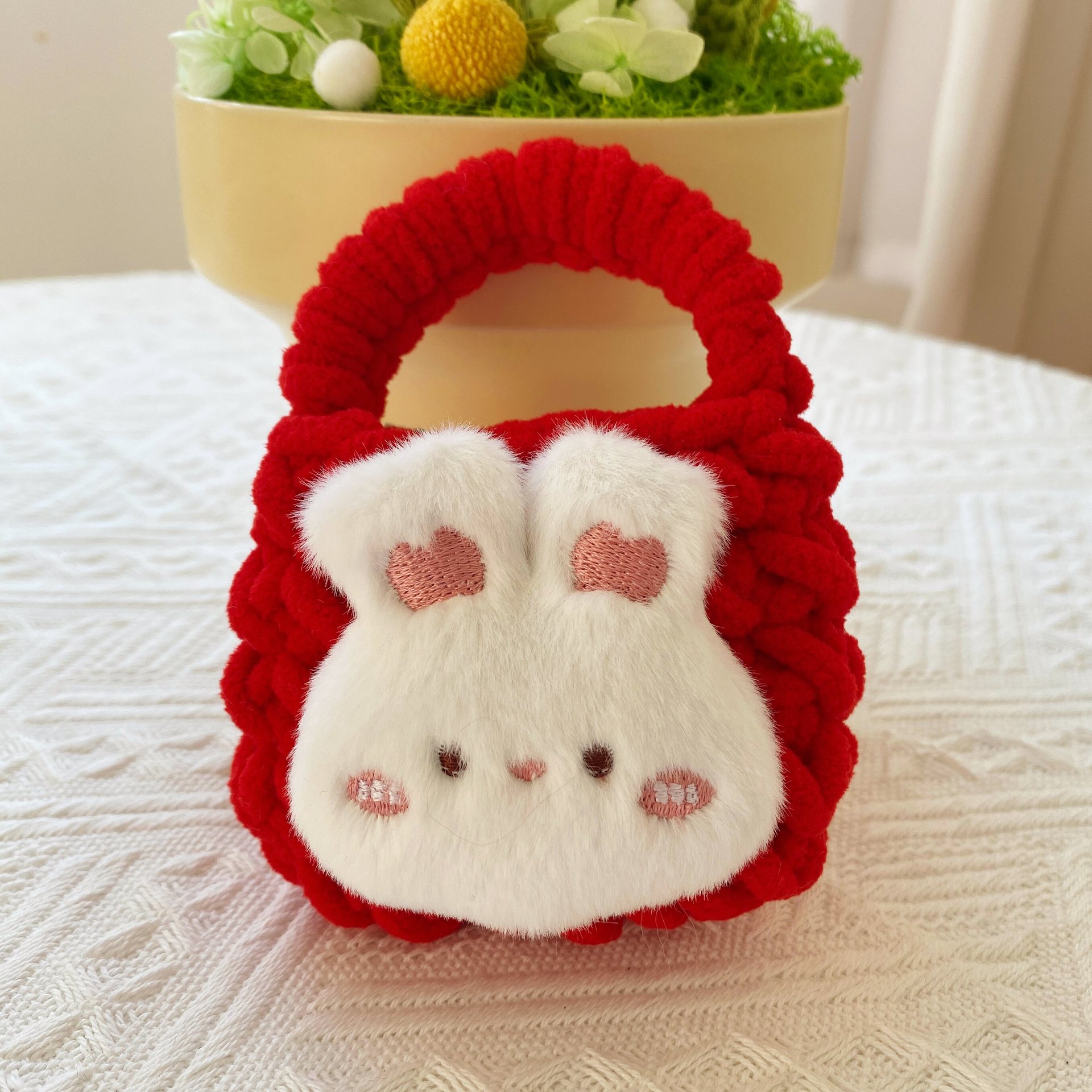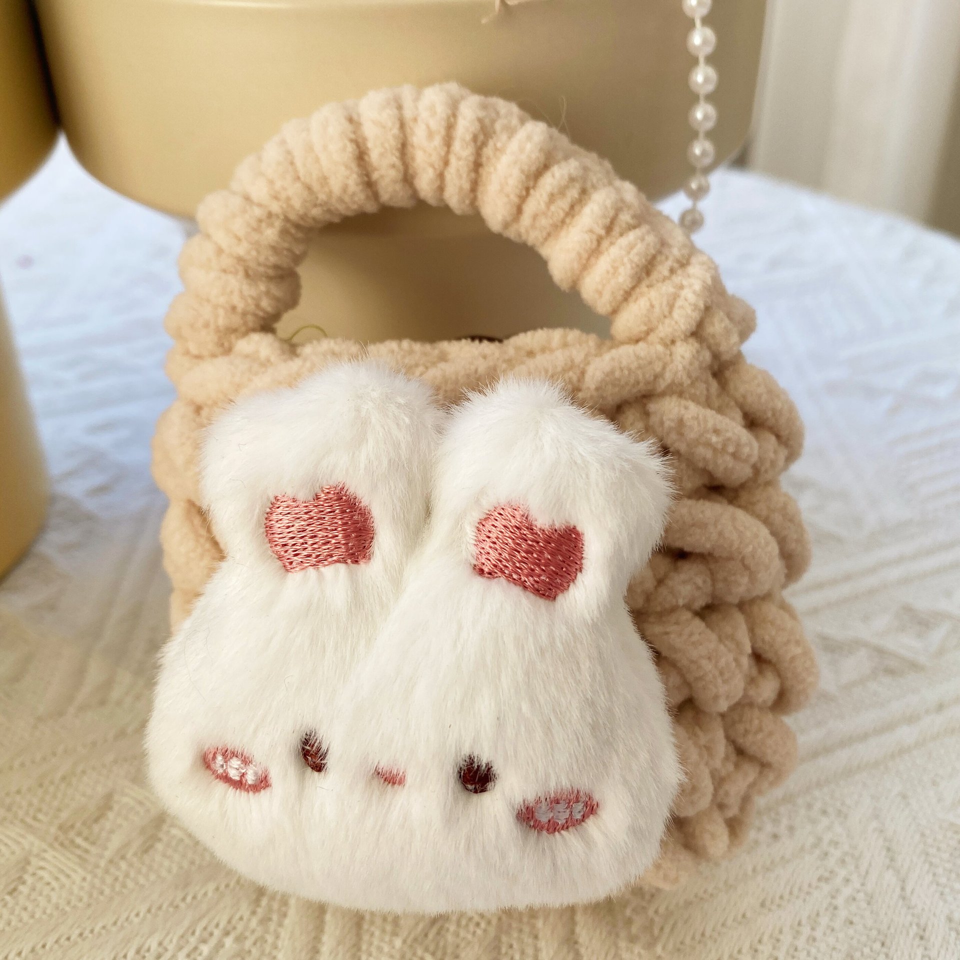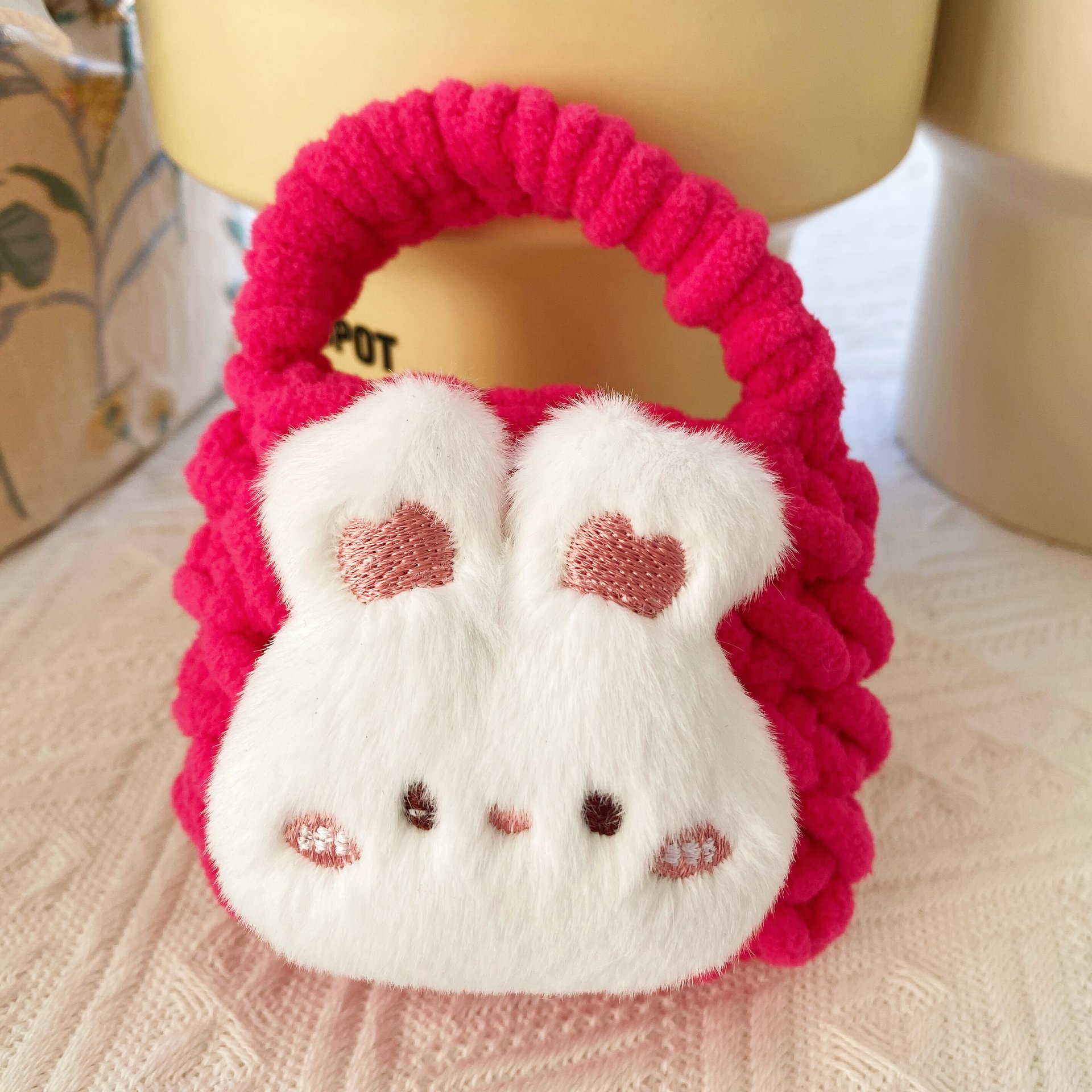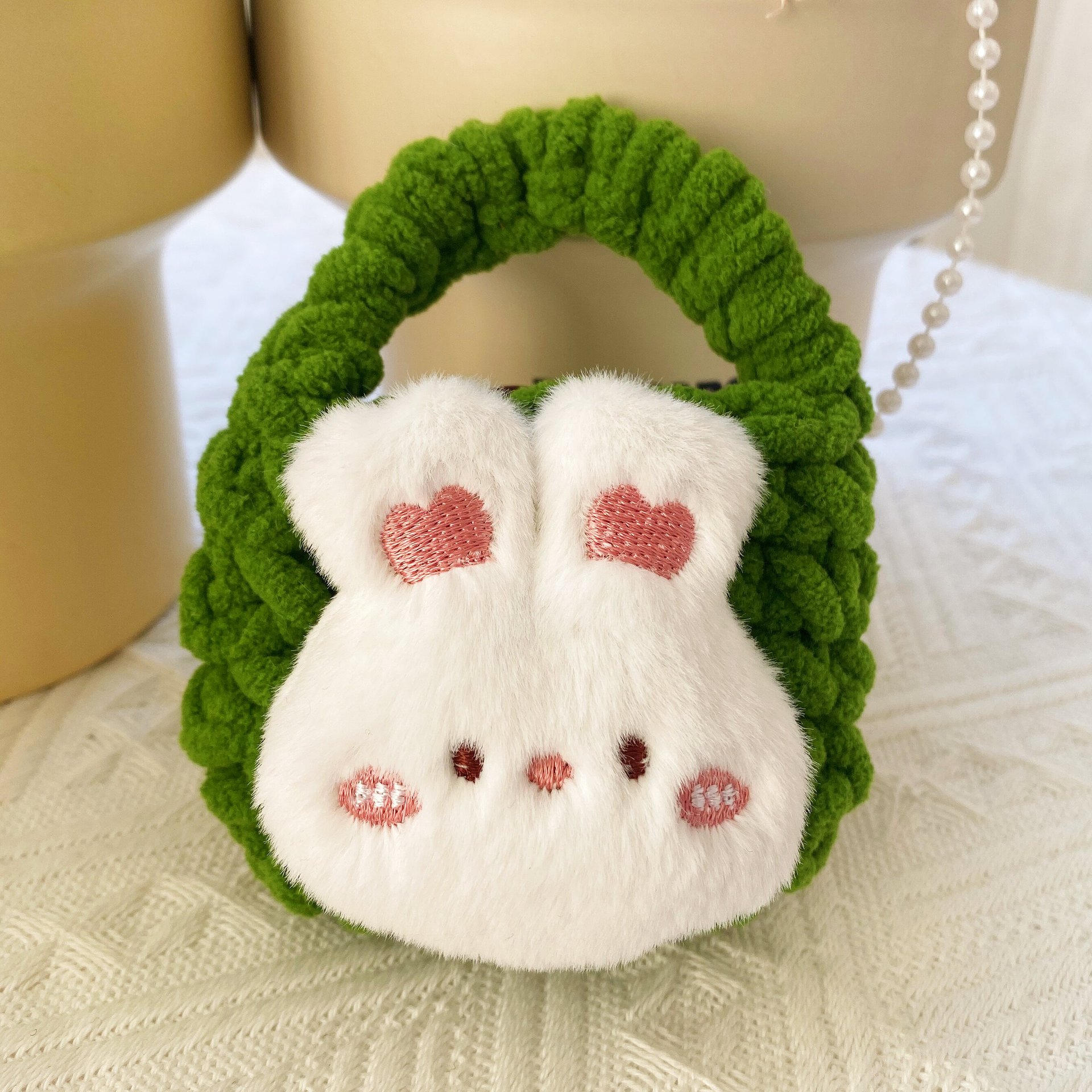 수제 크로 셰 뜨개질 귀여운 토끼 헤어 이어폰 가방 창조적 인 커플 지갑 동전 지갑 짠 이어폰 가방 도매스토어 가기