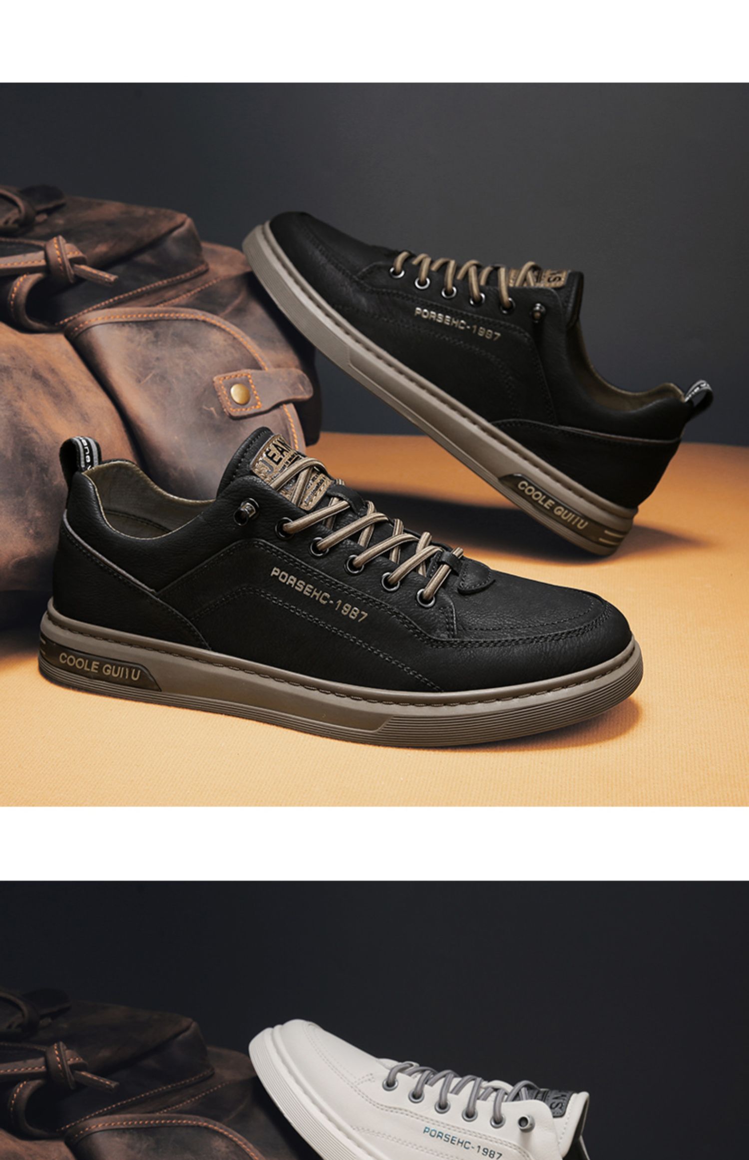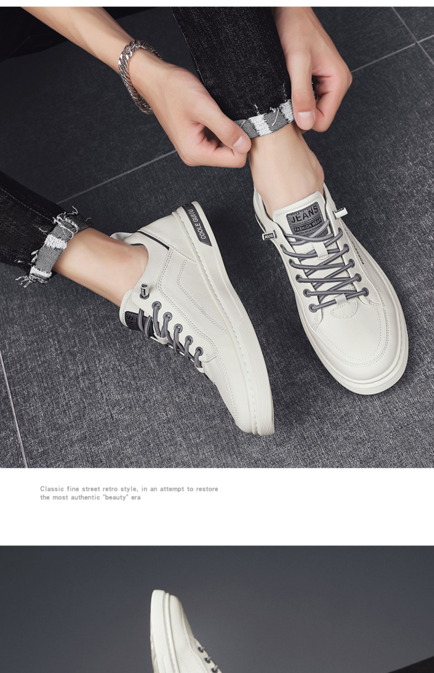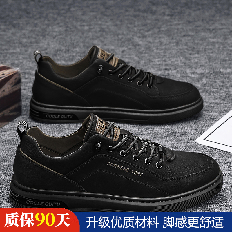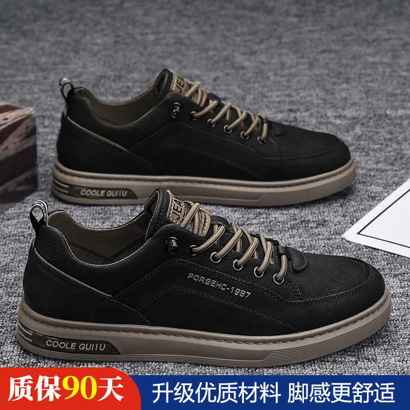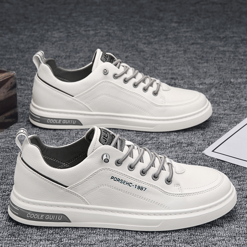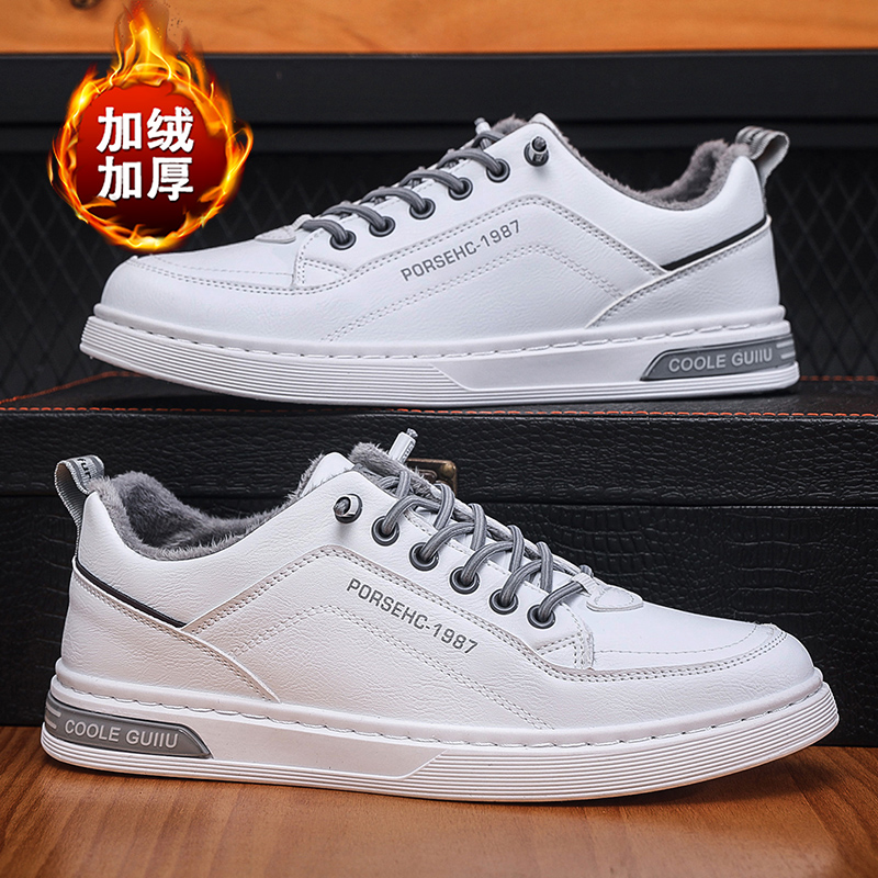 가을 남자 신발 2024 새로운 올매치 남자 캐주얼 가죽 신발 겨울 스포츠 운동화 작업 작은 흰색 유행 신발스토어 가기