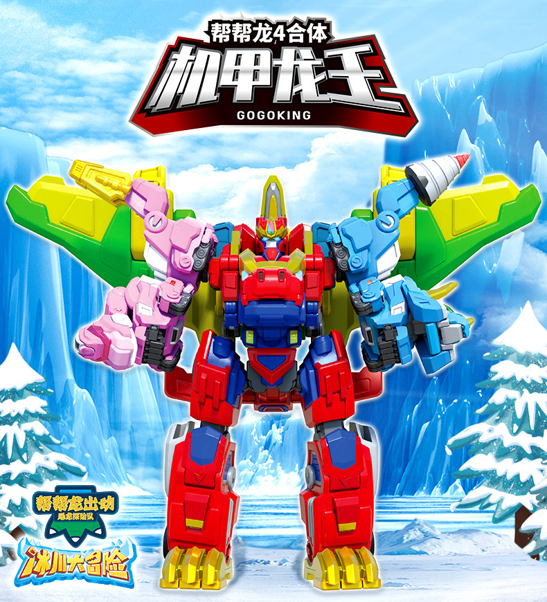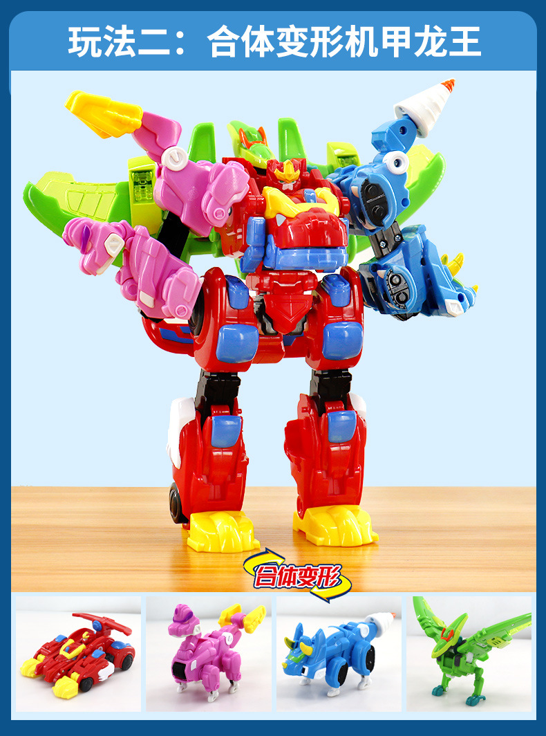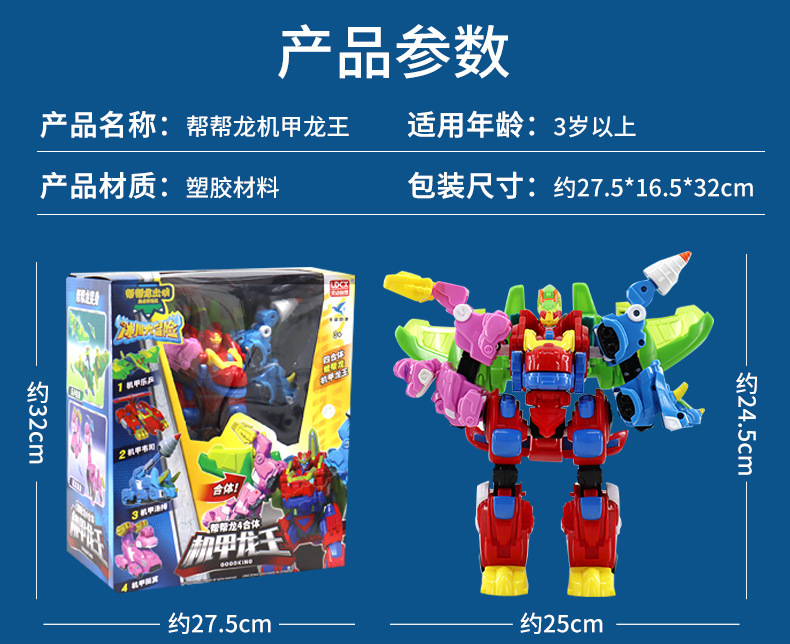 정품 Bangbanglong 메카 드래곤 킹 4인 1 변형 로봇 출동 탐험대 어린이 소년 장난감스토어 가기