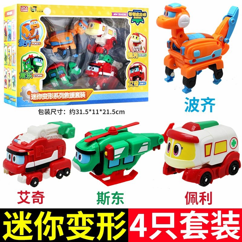 정품 Bangbanglong 메카 드래곤 킹 4인 1 변형 로봇 출동 탐험대 어린이 소년 장난감