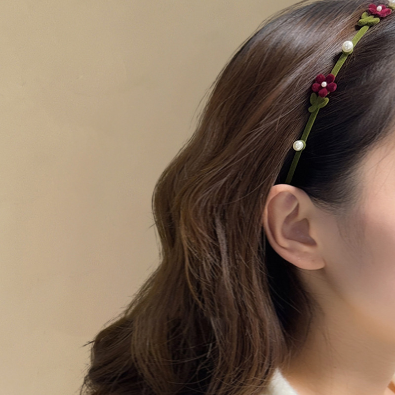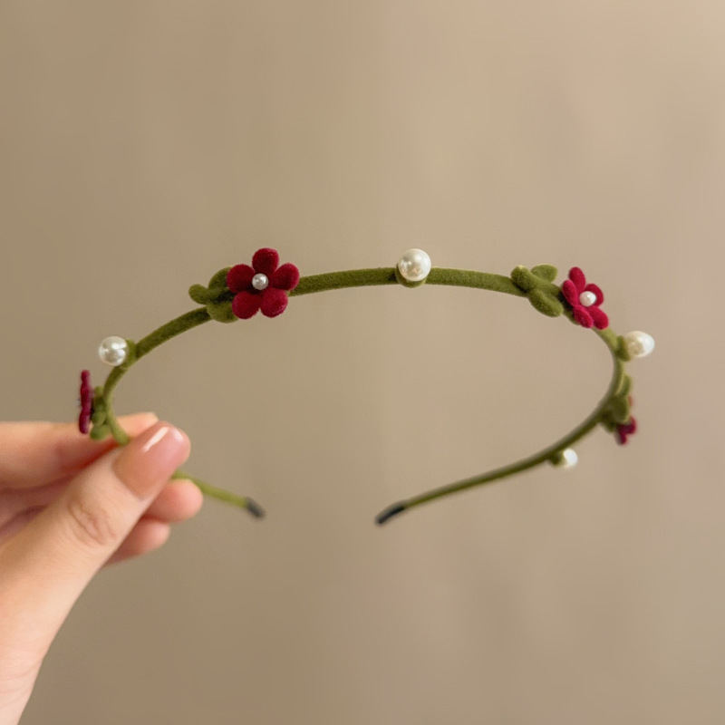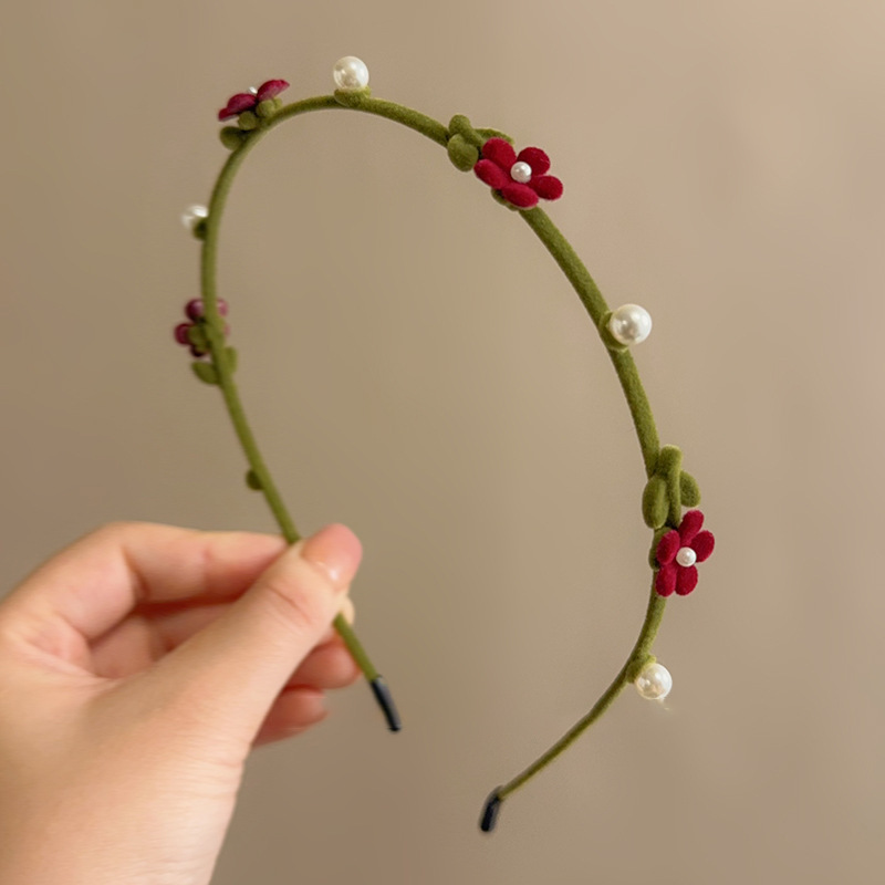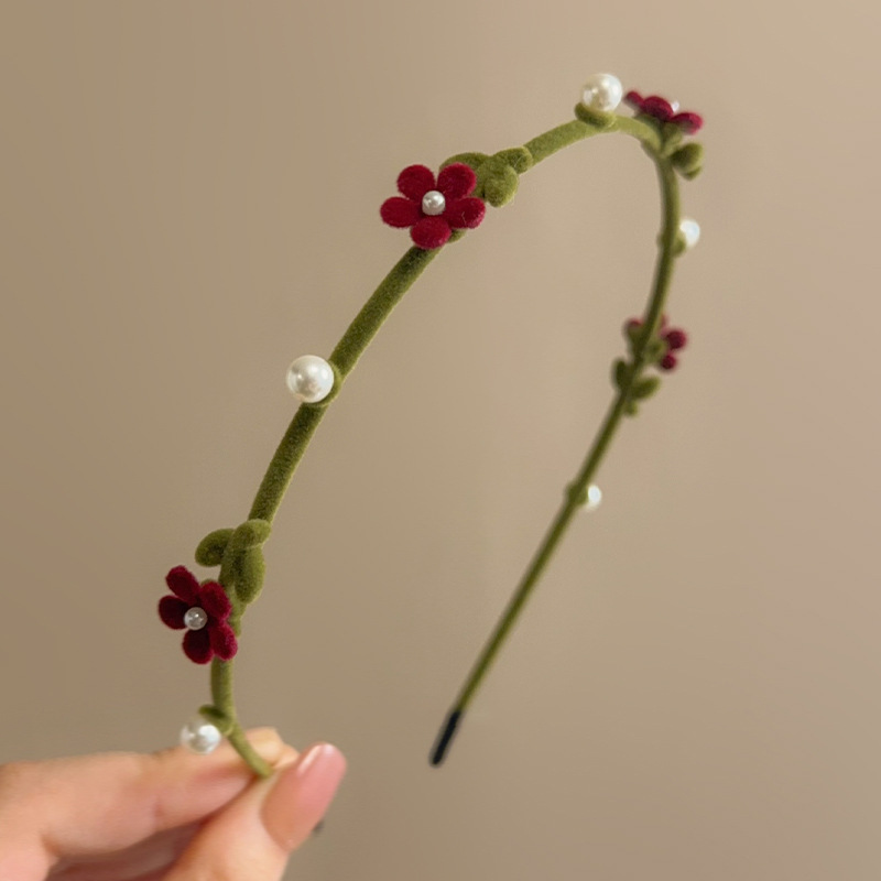 새로운 가을과 겨울 고급 얇은 가장자리 머리띠 달콤한 진주 머리 장식을 2023 여성을위한 레트로 무리 작은 붉은 꽃 머리띠