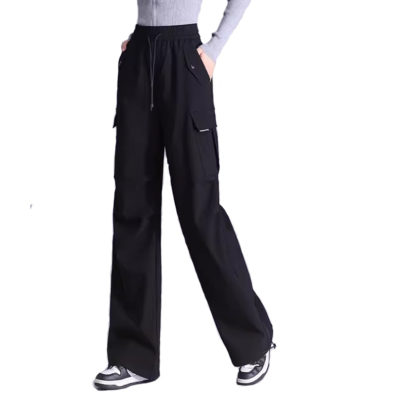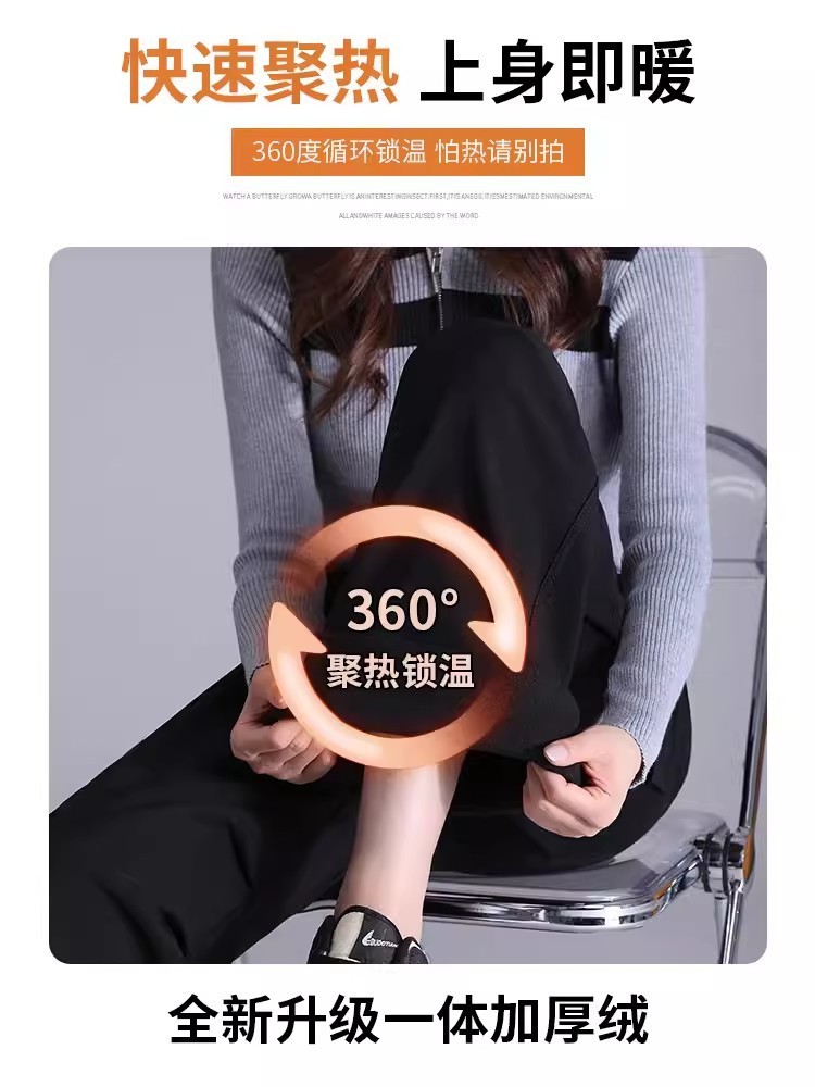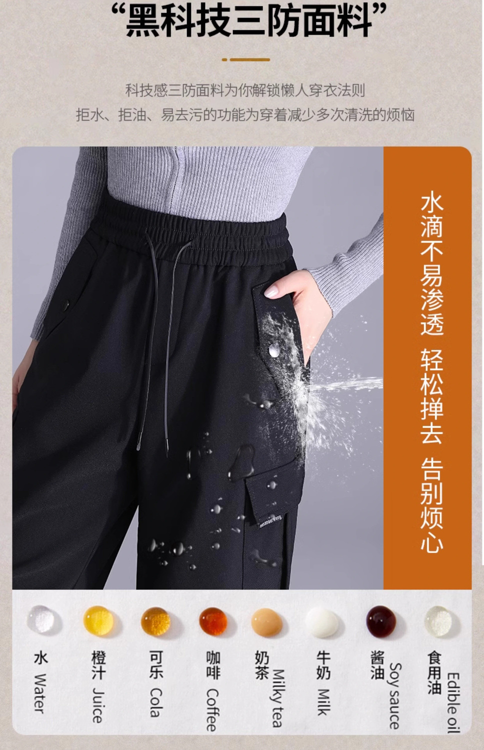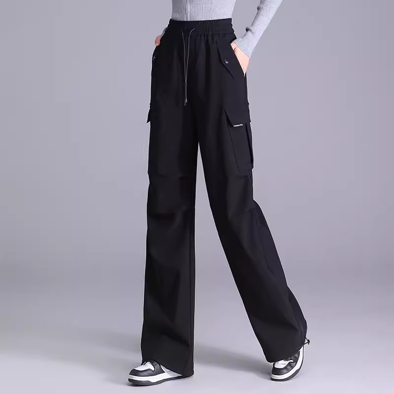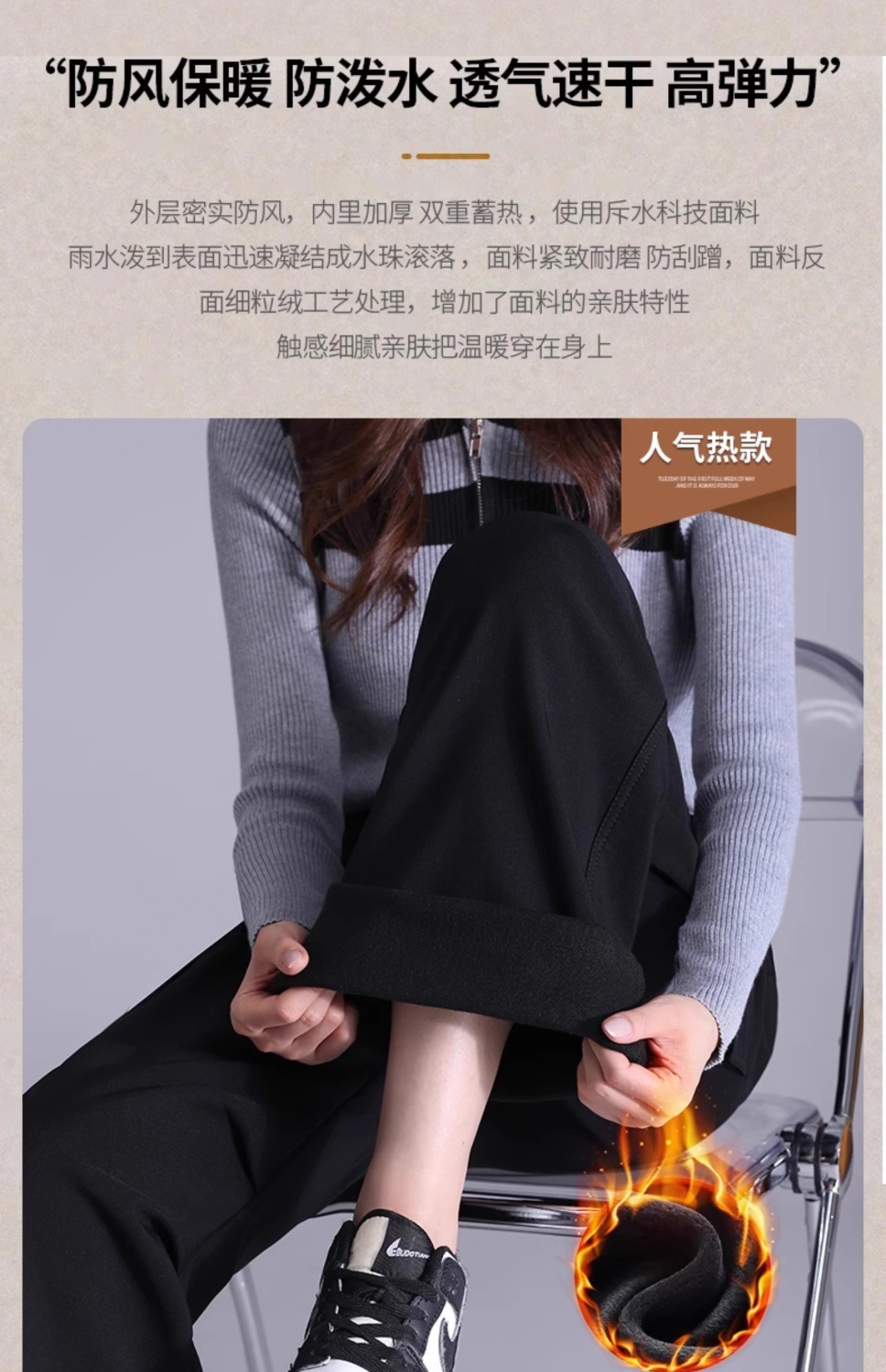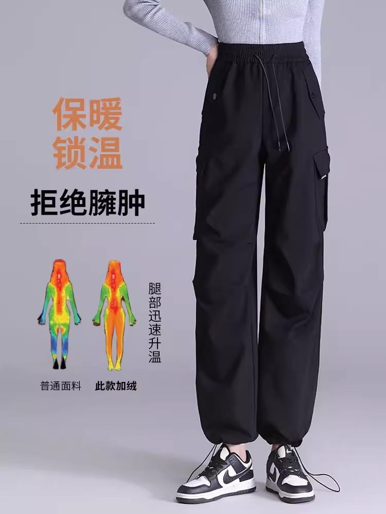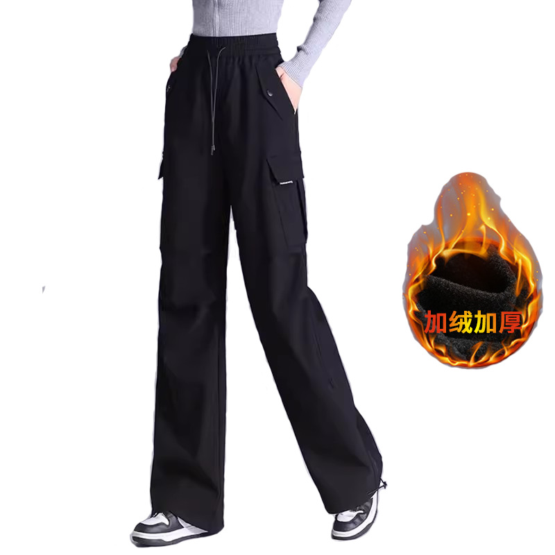 작업복 여성의 겨울 2023 새로운 기모 바지 높은 허리 느슨한 스트레이트 와이드 레그 바지 스포츠 바지 여성