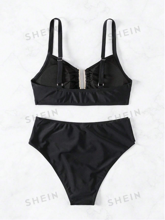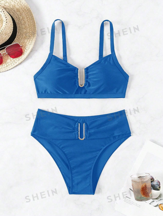 2024 유럽과 미국의 대외 무역 새로운 하이 웨이스트 투피스 수영복 여성용 Amazon U 자형 스플릿 비치 휴가 비키니