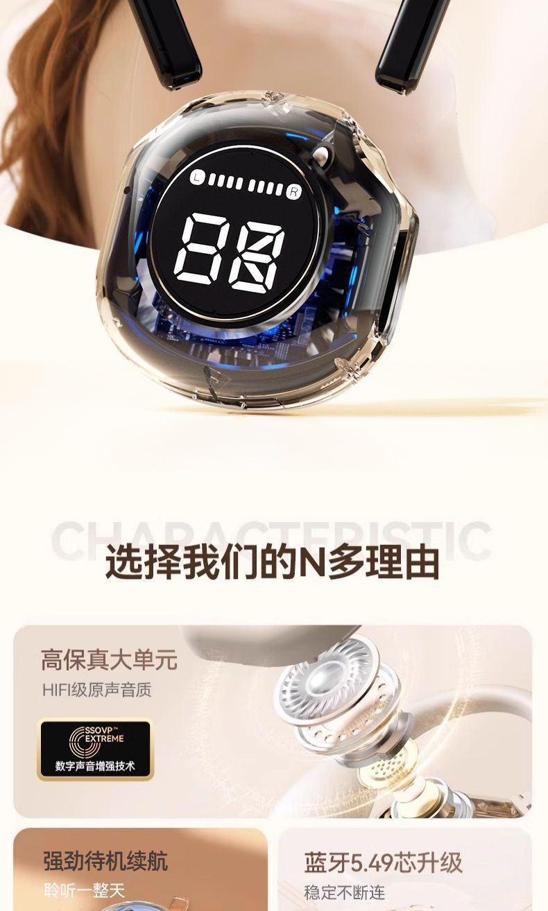 국경 간 디지털 디스플레이 air31 무선 투명 블루투스 헤드셋 이어폰 양방향 스테레오 슈퍼 긴 배터리 수명 Air31