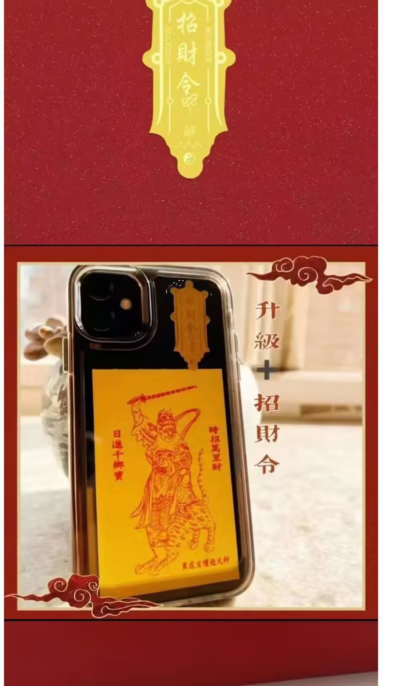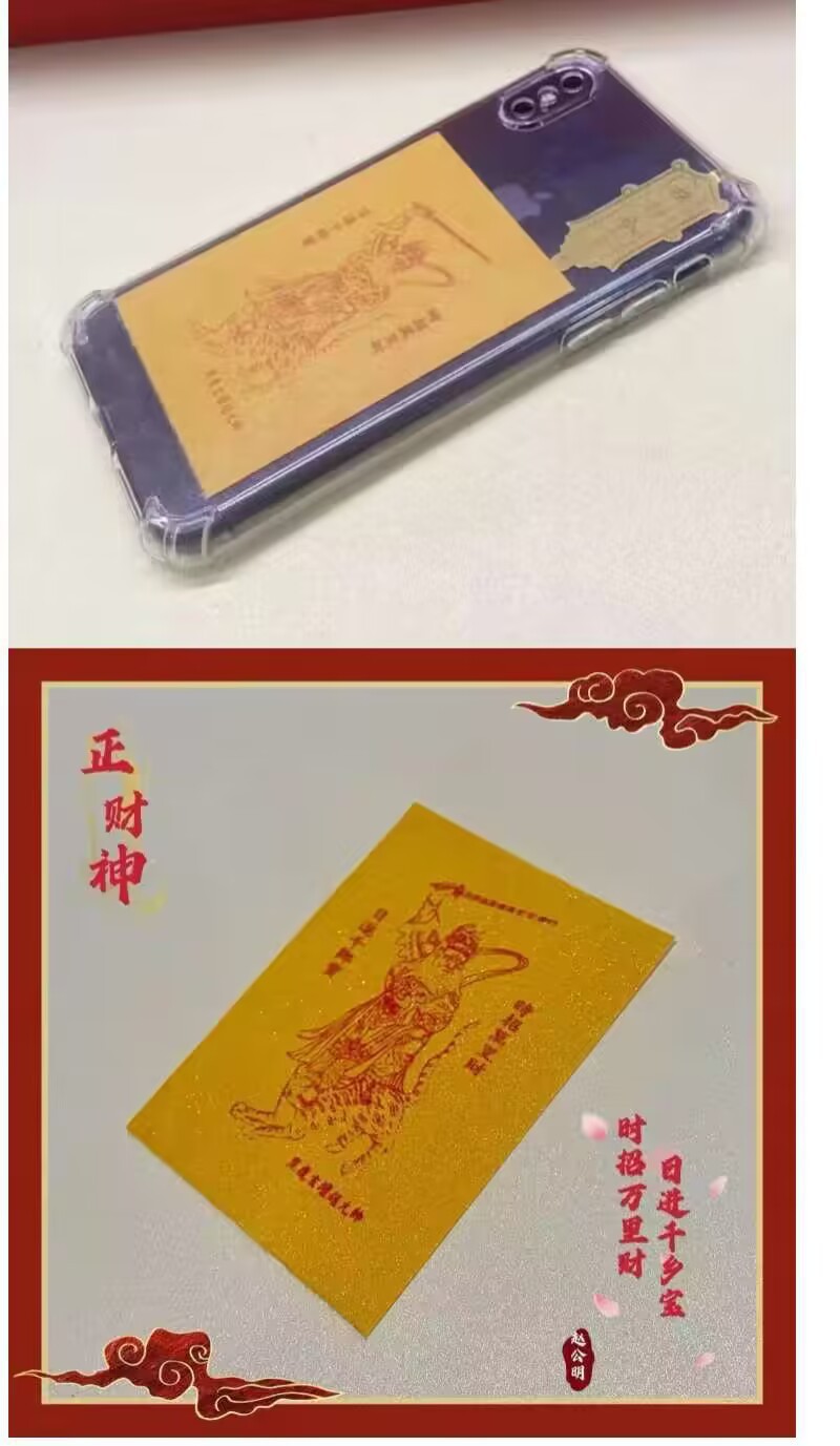Wealth Zhao Gongming 행운의 재산 주문 수제 창조적 인 휴대 전화 스티커 장식 스티커 휴대용스토어 가기