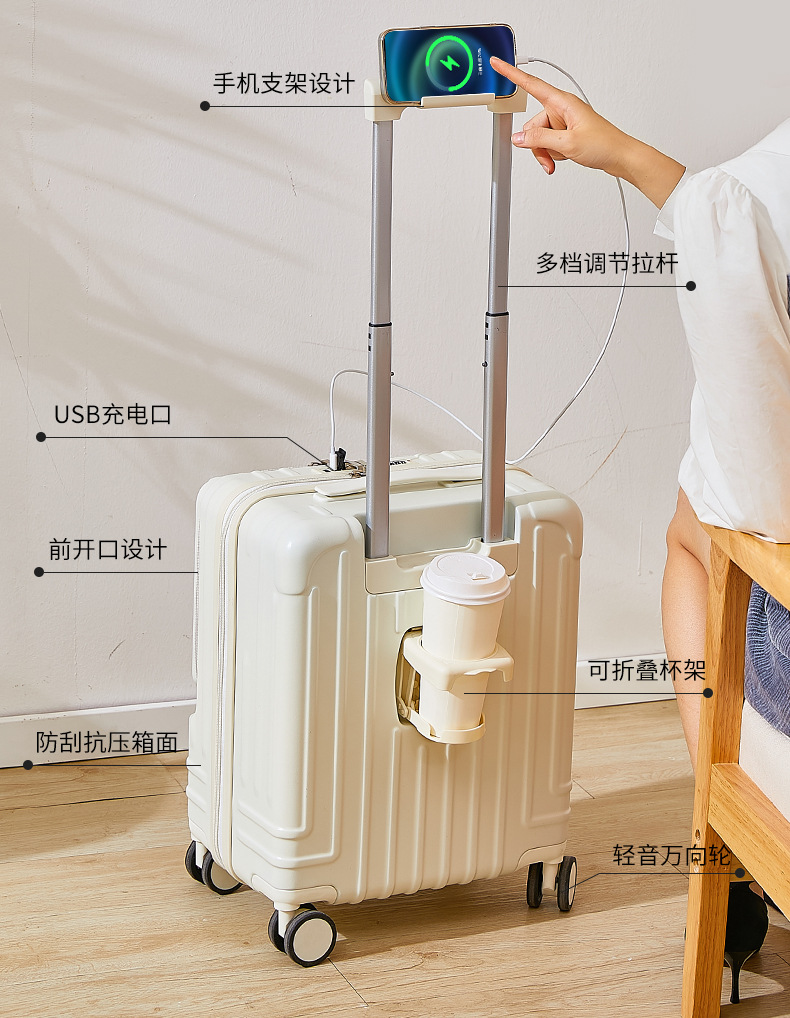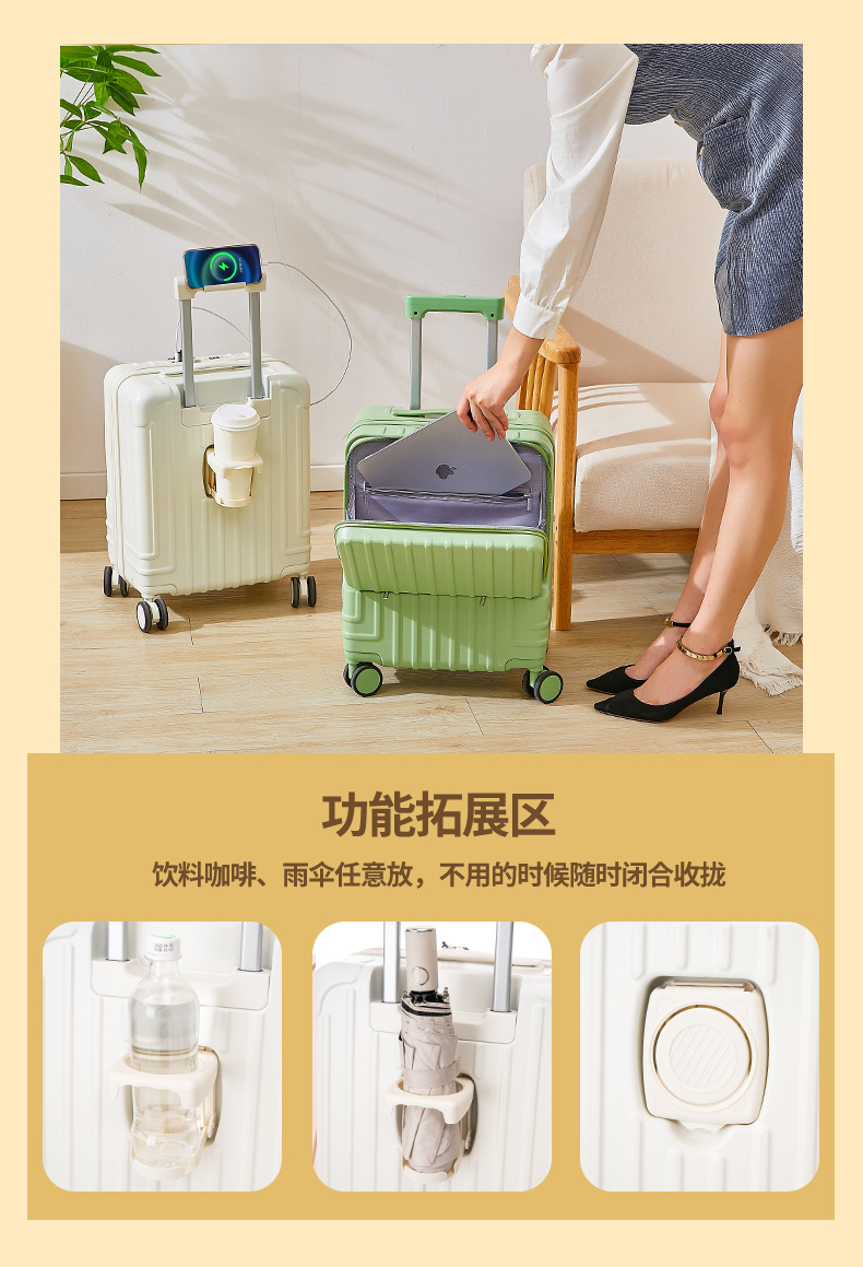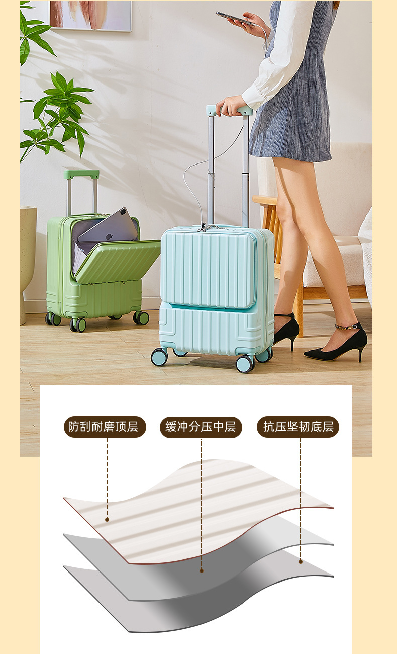 탑승 케이스 18 인치 트롤리 케이스 유니버설 휠 수하물 비즈니스 비밀번호 수하물 전면 개방 수하물 다기능 케이스스토어 가기