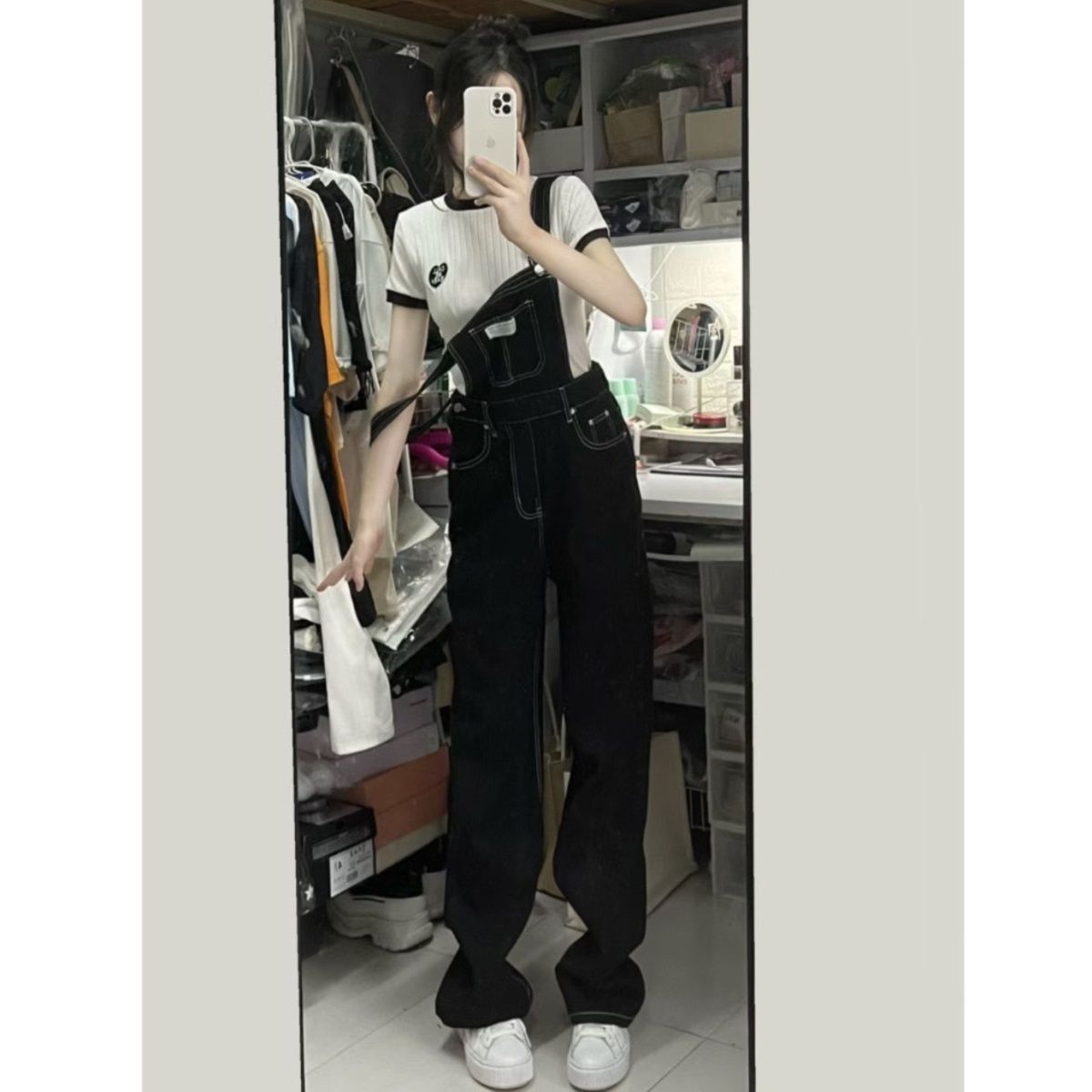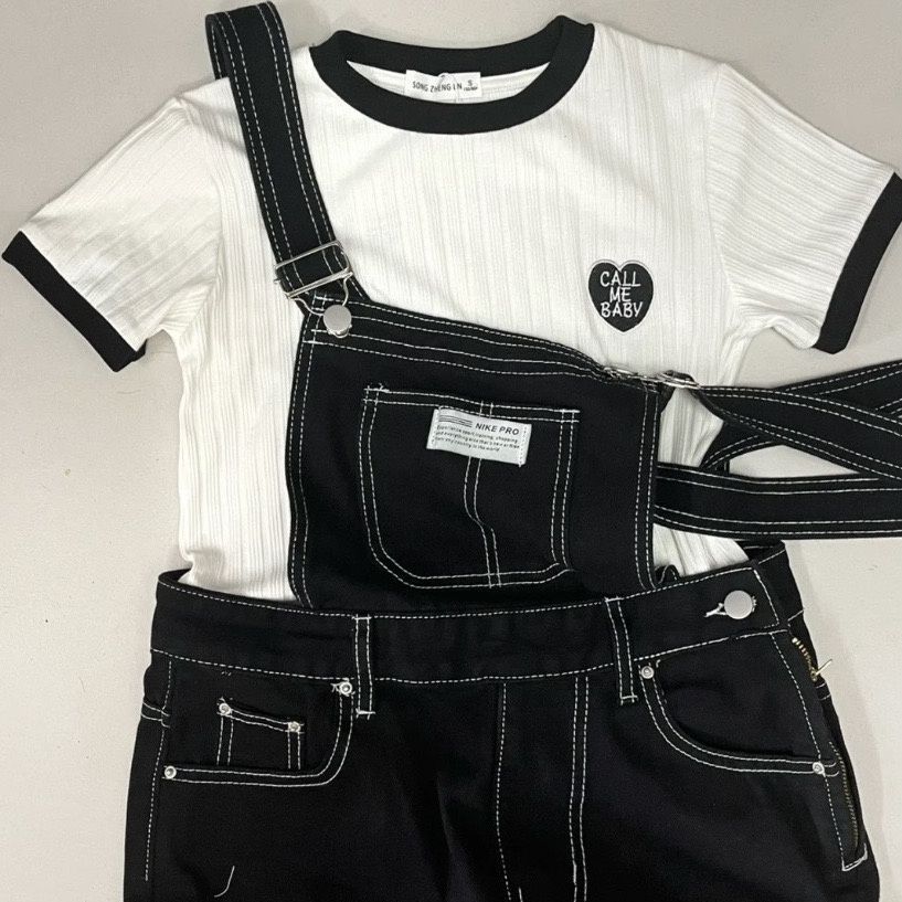 • 화이트 라인 서스펜더 바지 [하이 퀄리티 보증]]