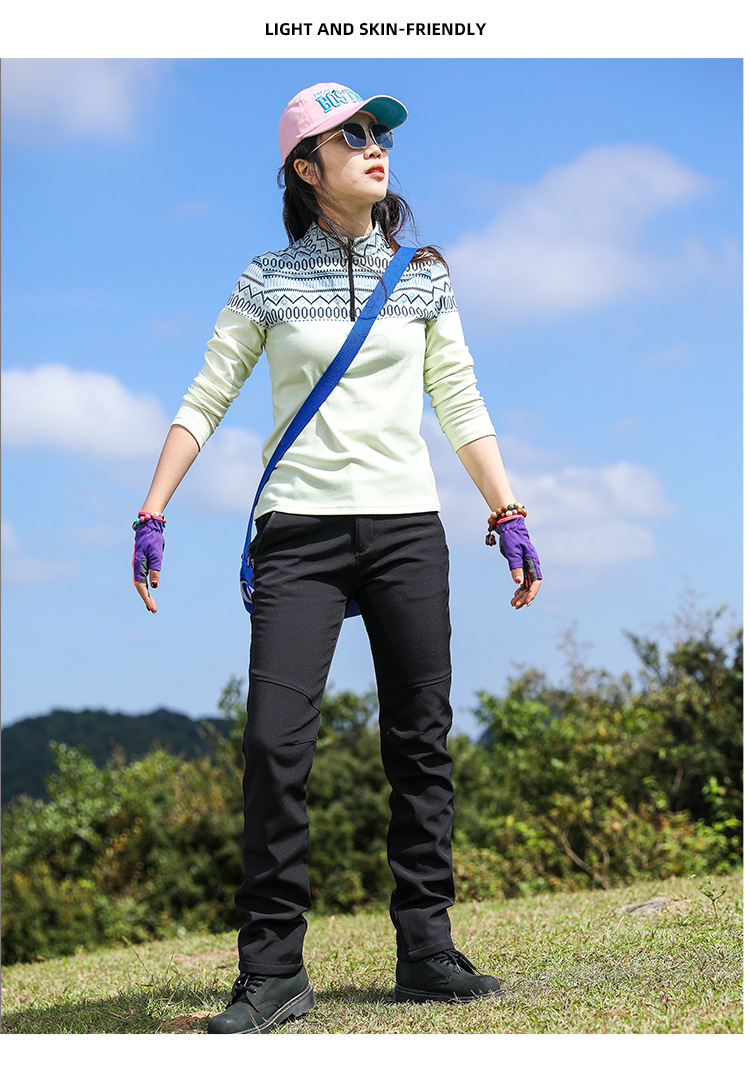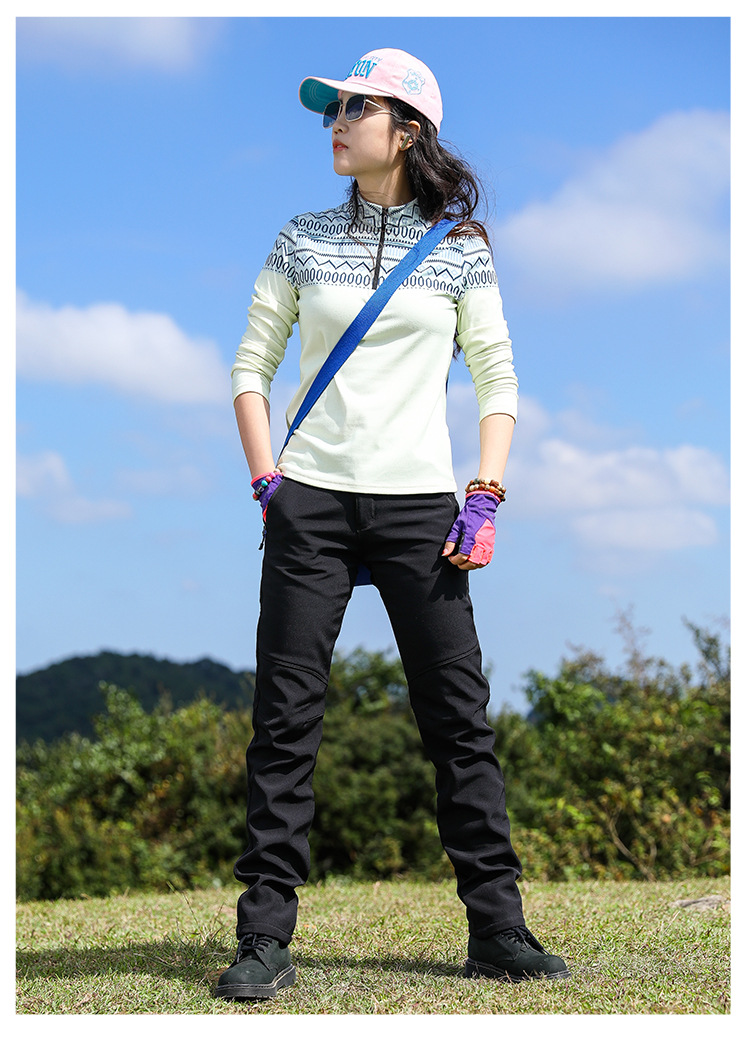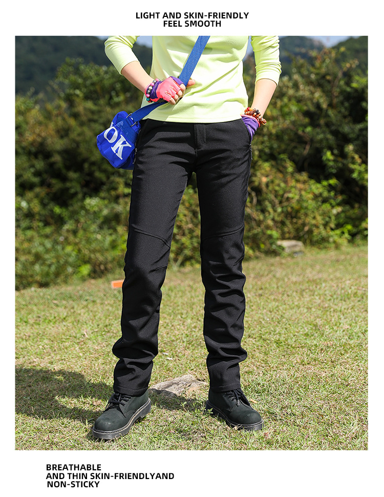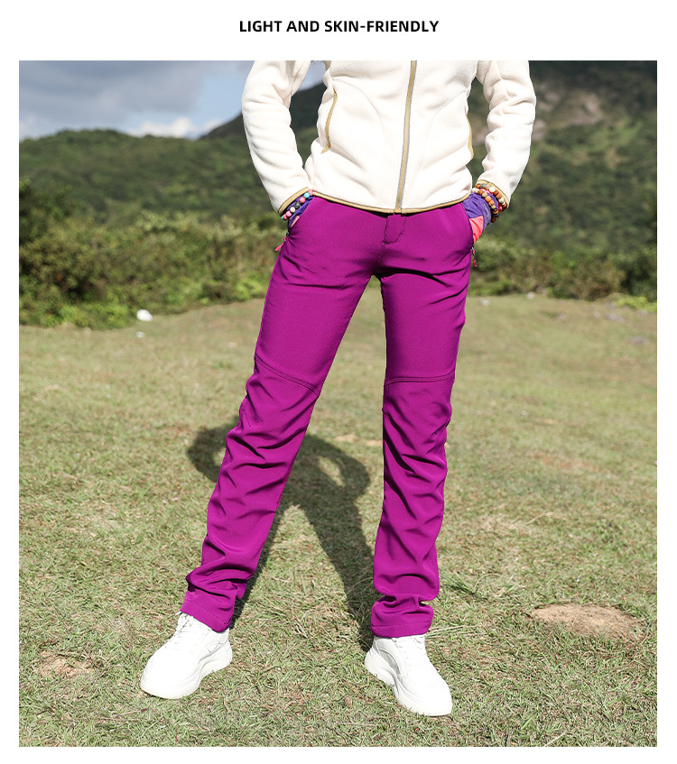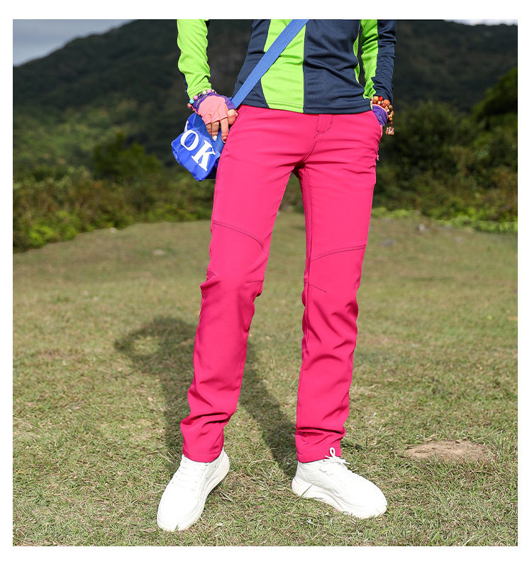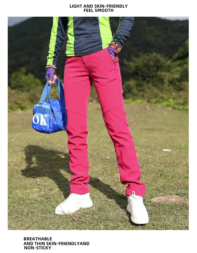 야외 슬림 핏 양털 바지 여성 바지가 두껍게 부드러운 쉘 바지 여성용 스키 방풍 따뜻한 하이킹 바지 가을과 겨울스토어 가기