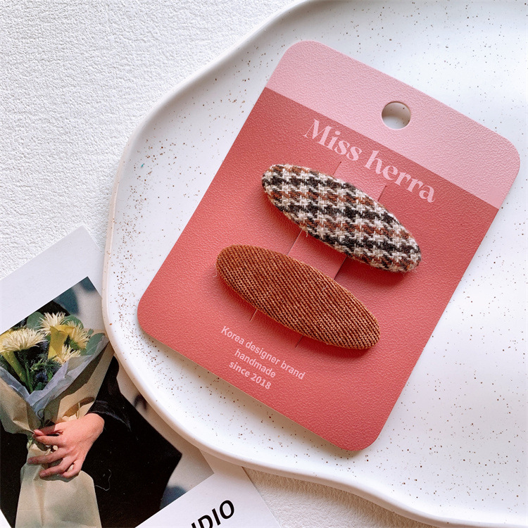 가을과 겨울 새로운 어린이 houndstooth 패턴 머리핀 귀여운 소녀 앞머리 부러진 머리 BB 클립 아기 쌍 머리핀 머리 장식