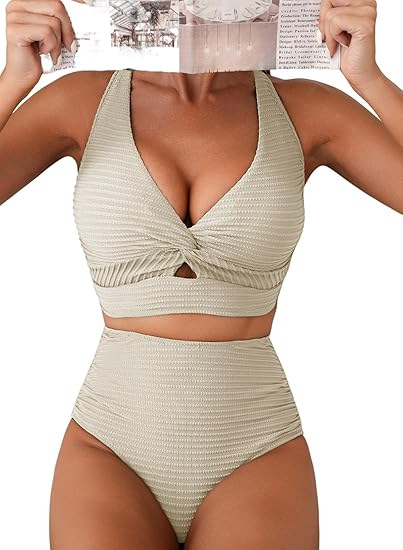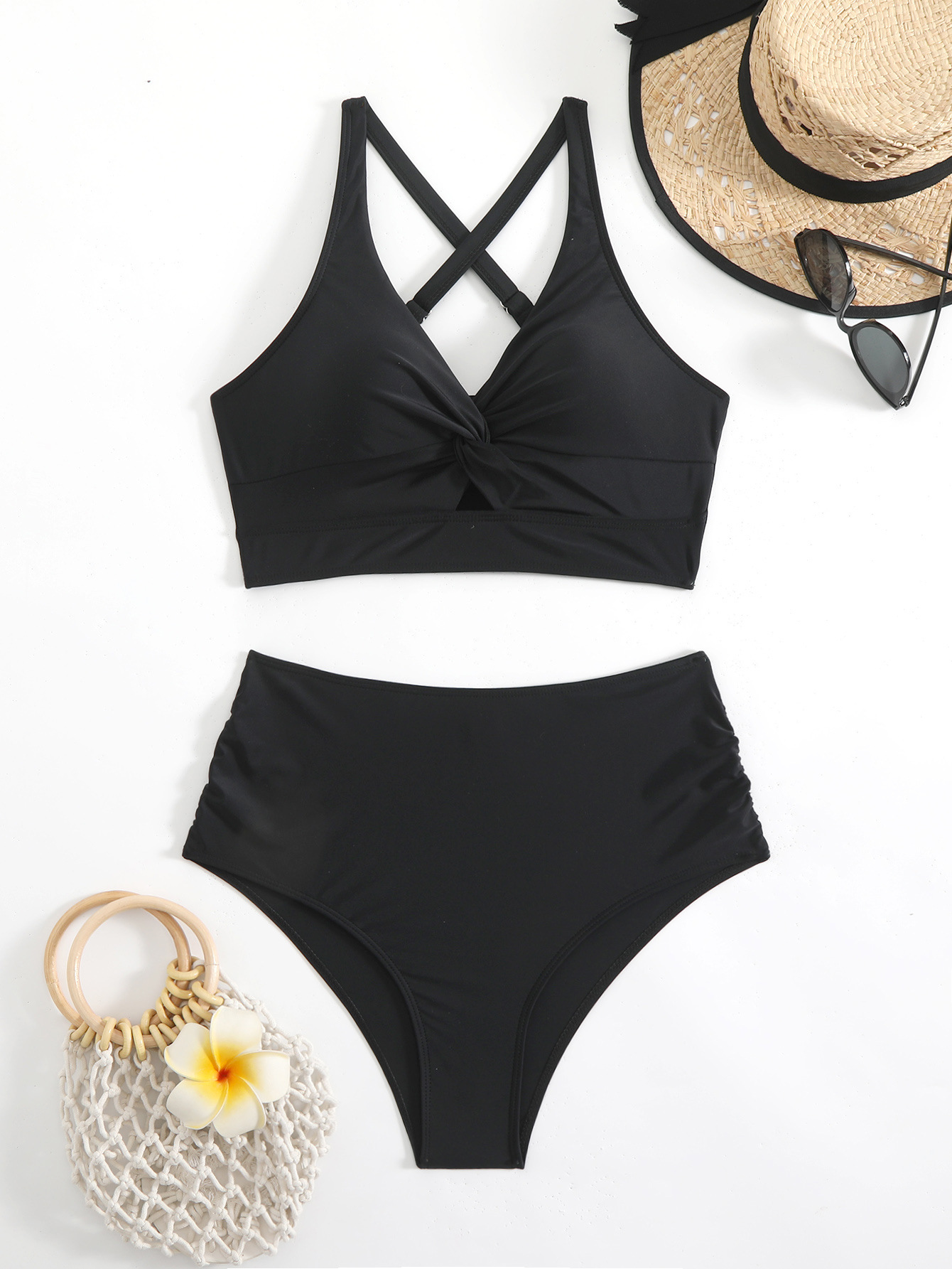 2025 유럽 및 미국 해외 무역 하이웨이스트 비키니 단색 수영복 아마존 신상 섹시한 백 크로스 수영복스토어 가기