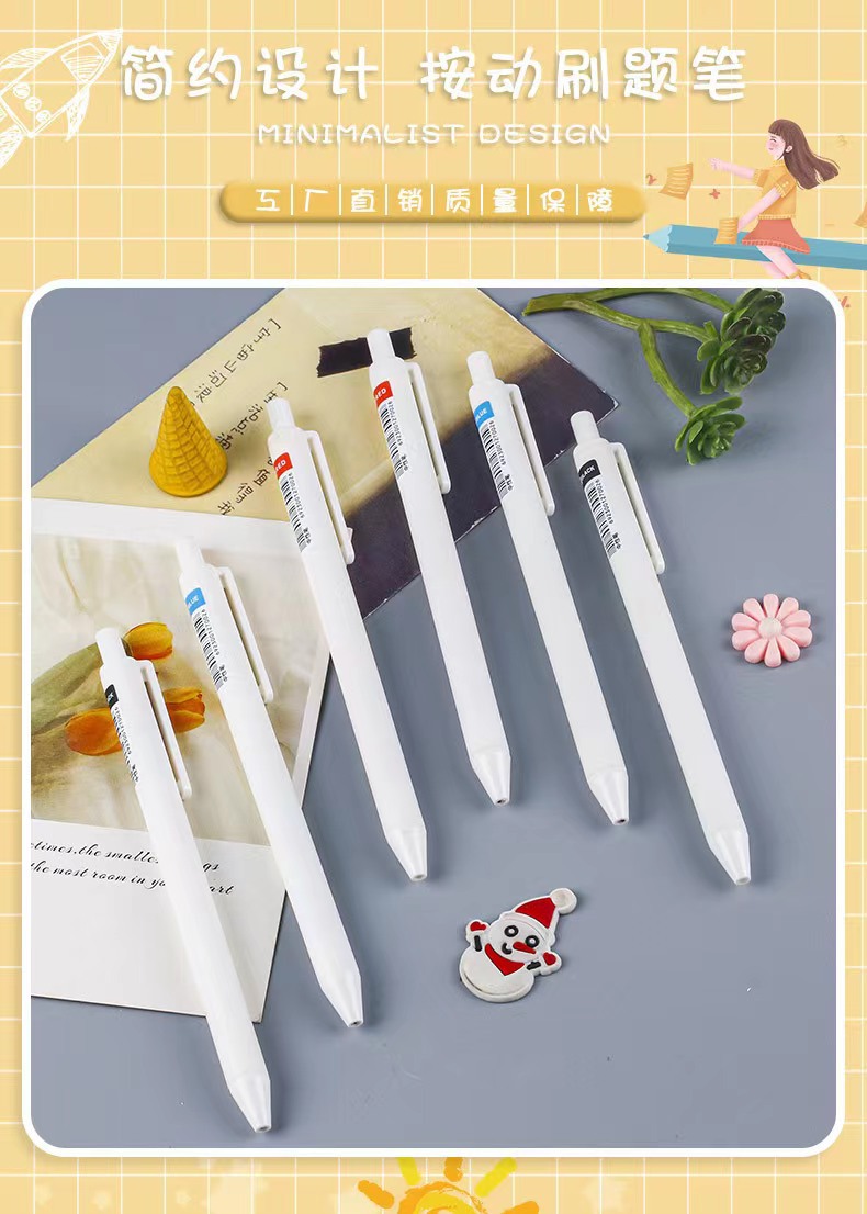 [매우 쉬운 쓰기] 브러시 펜, 학생 빠른 건조 검은 펜 시험 전용 0.5mm 푸시 펜 ST 헤드 작은 흰색 펜스토어 가기