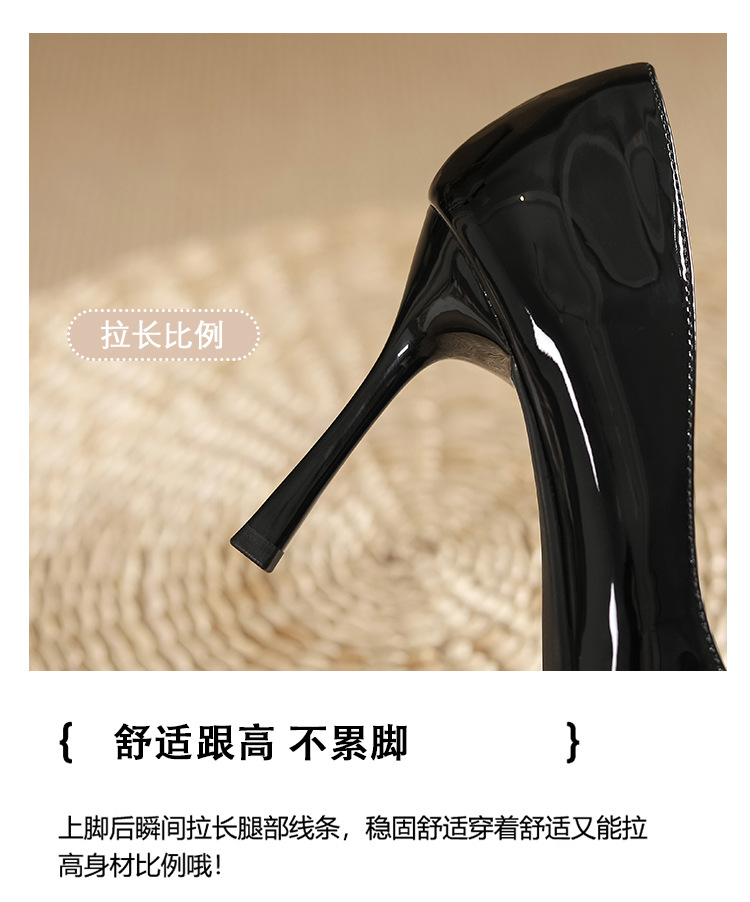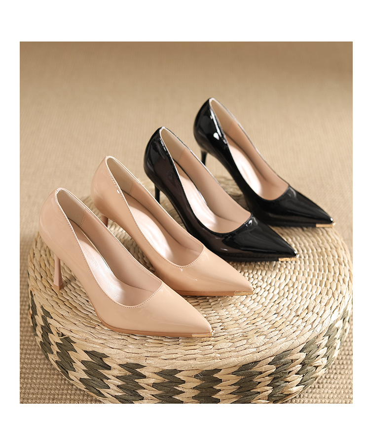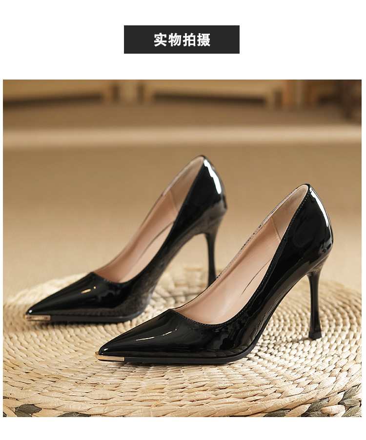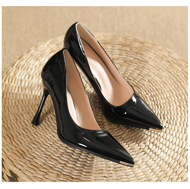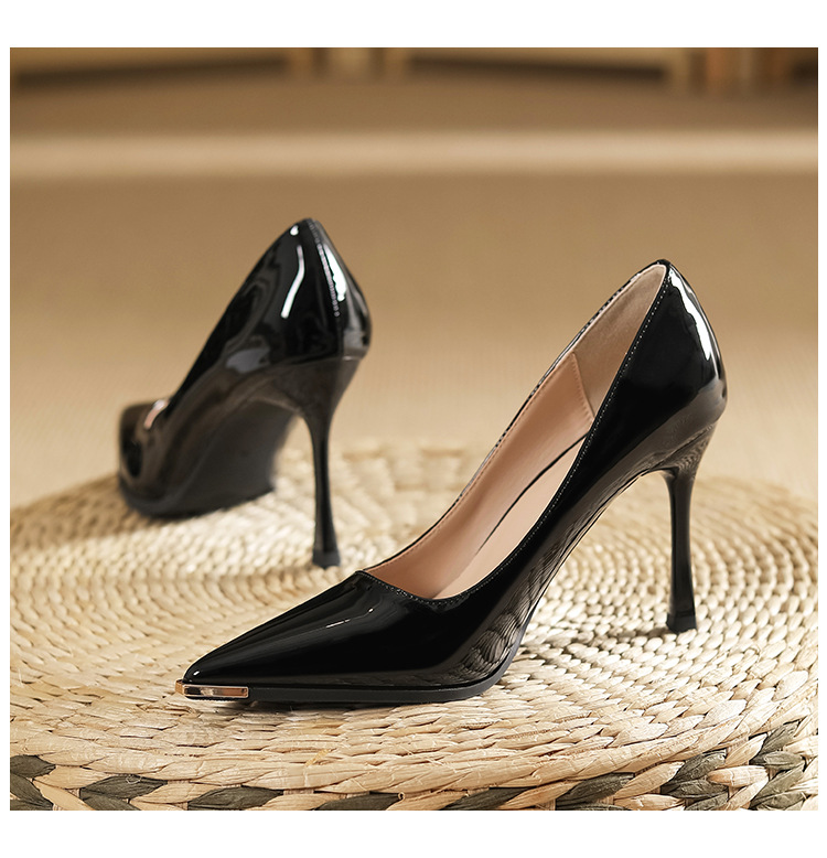 특허 가죽 스틸레토 힐 뾰족한 하이힐 신발 금속 발가락 안티 킥 솔리드 컬러 작업화 편안한 피곤하지 않은 발이 플러스 사이즈 넓어졌습니다.