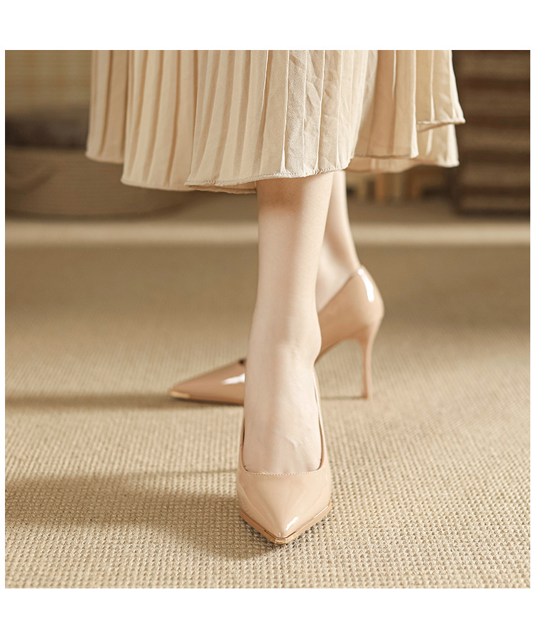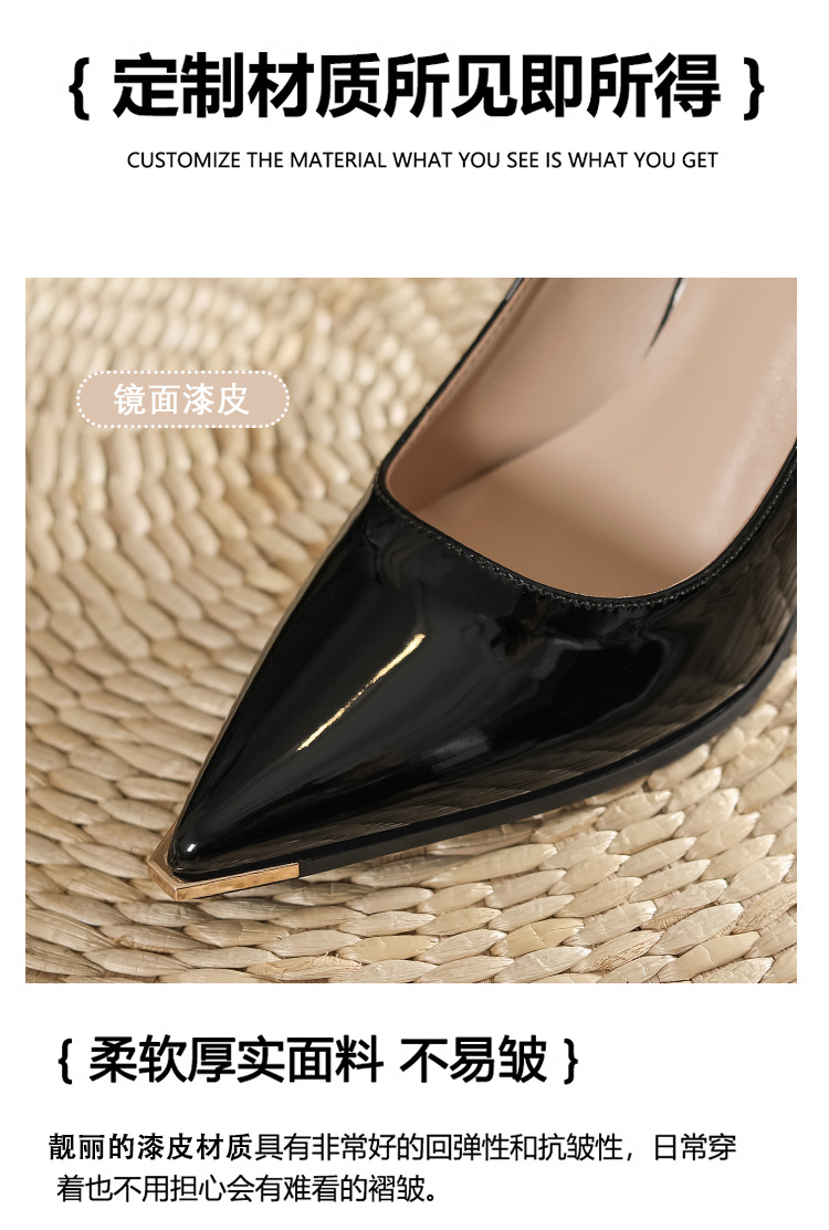 특허 가죽 스틸레토 힐 뾰족한 하이힐 신발 금속 발가락 안티 킥 솔리드 컬러 작업화 편안한 피곤하지 않은 발이 플러스 사이즈 넓어졌습니다.스토어 가기