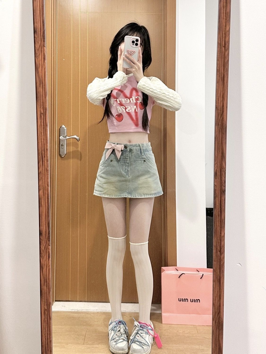 라이트 블루 레트로 높은 허리 데님 스커트 여성 여름 새로운 뜨거운 소녀 힙합 스커트 A-라인 스커트 치마 문화스토어 가기