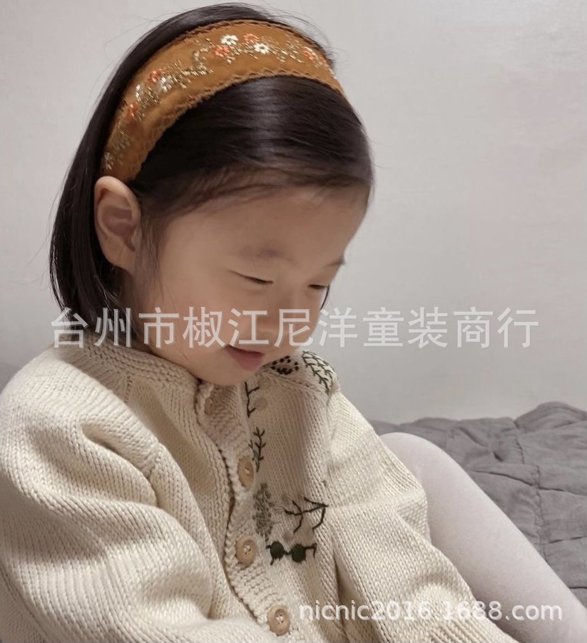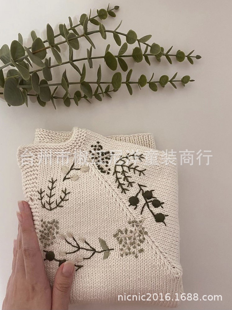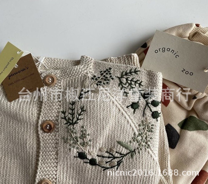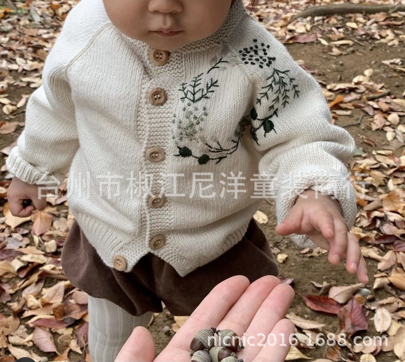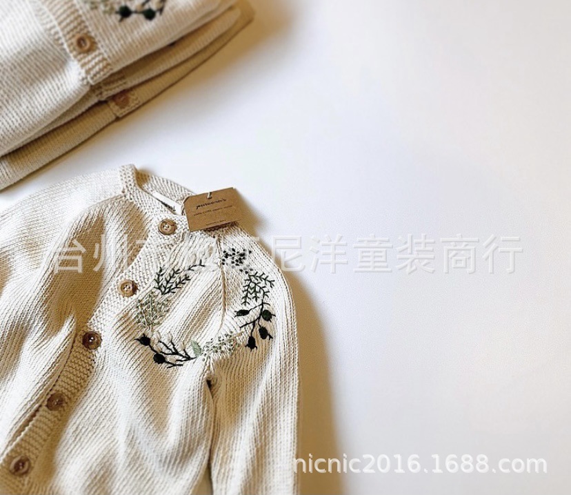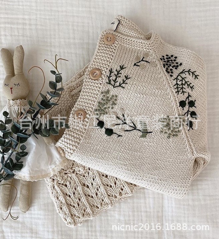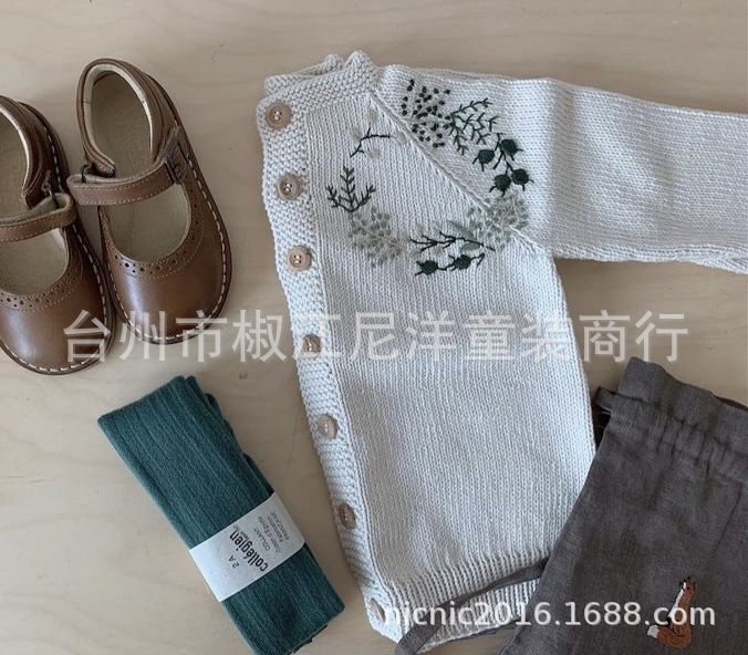 에 일본식 손으로 자수 꽃 소녀 아이보리 버튼 카디건
