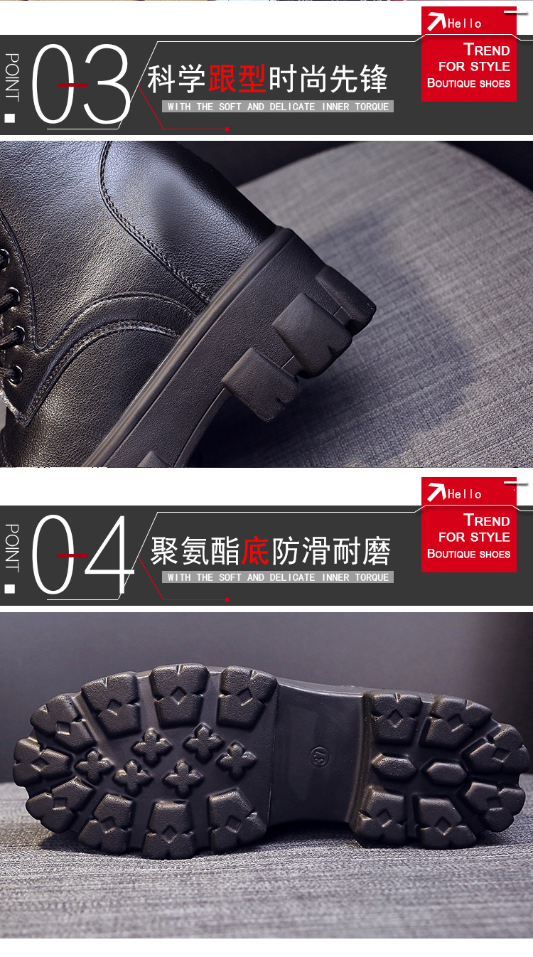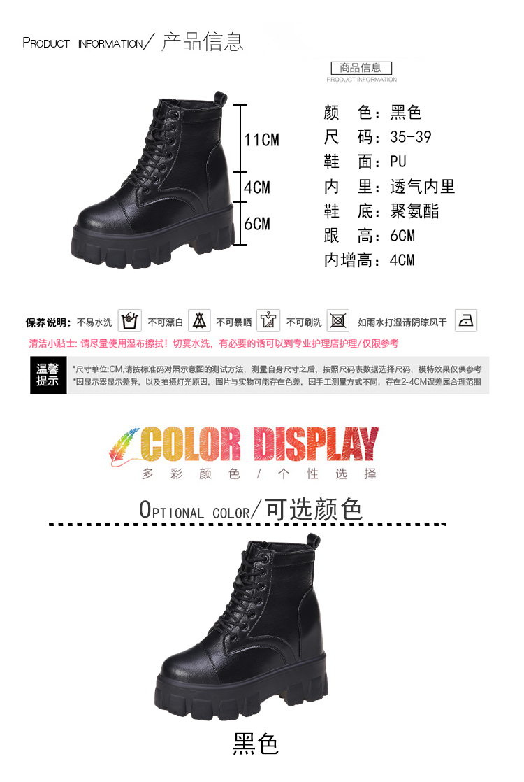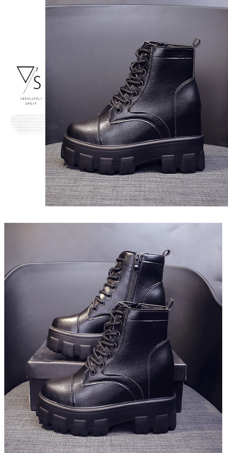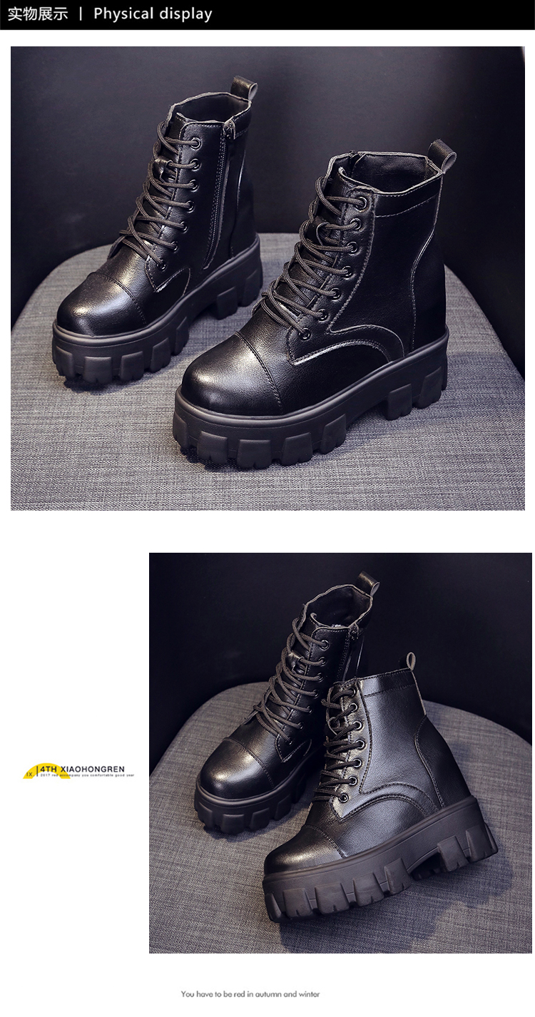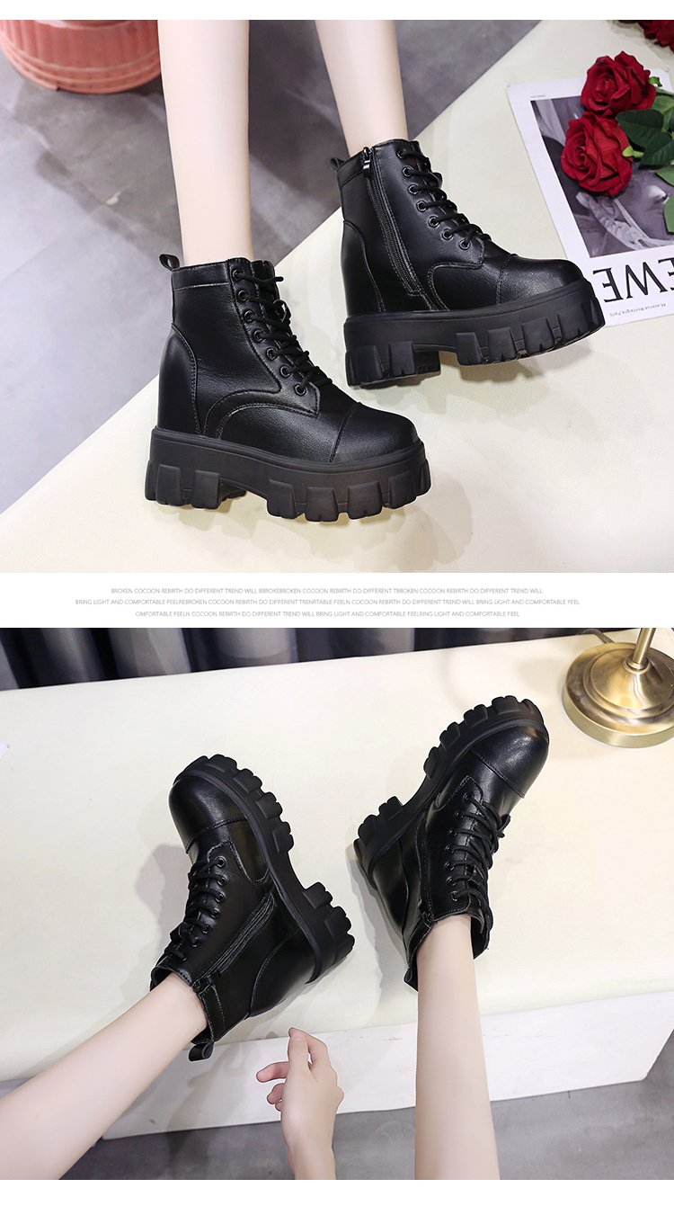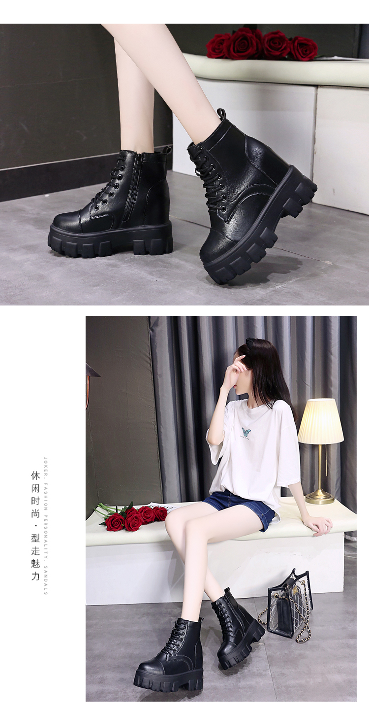 마틴 부츠 여성 10cm 내부 높이 여성 신발 2024 가을 및 겨울 새로운 영국 스타일 짧은 부츠 두꺼운 바닥 쐐기 블랙 가죽 부츠스토어 가기