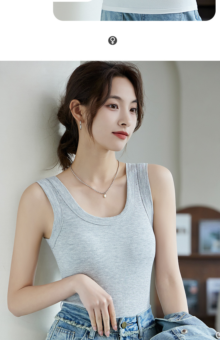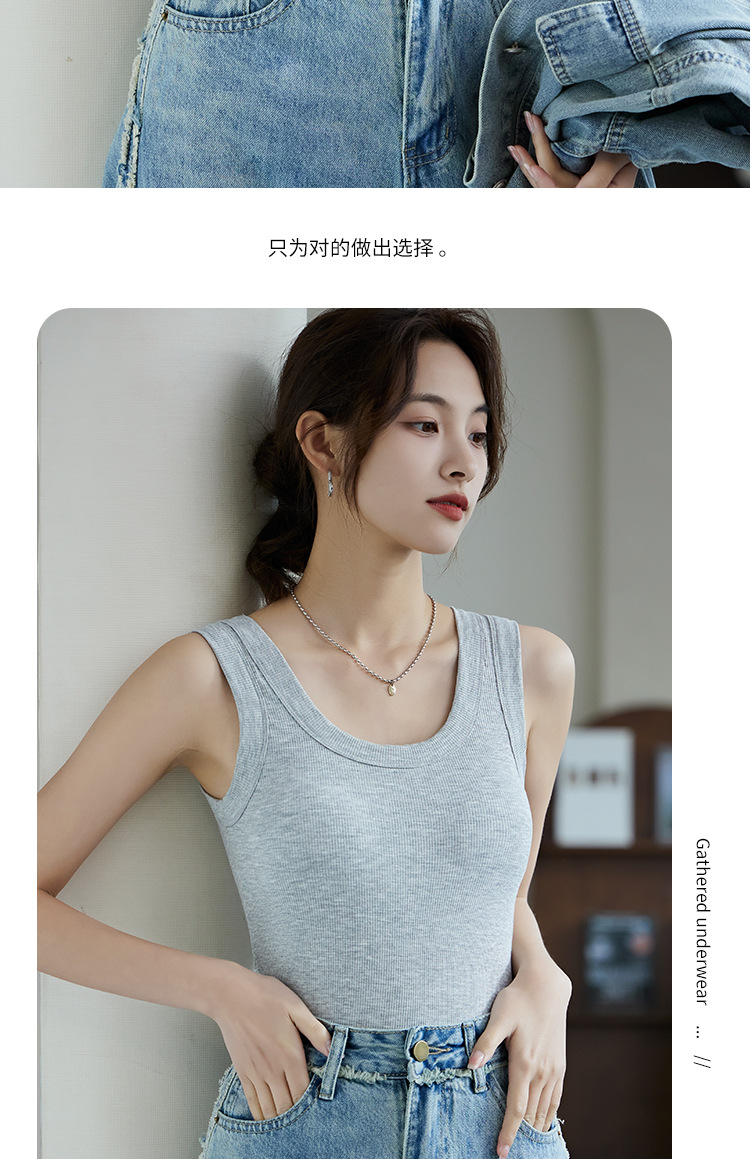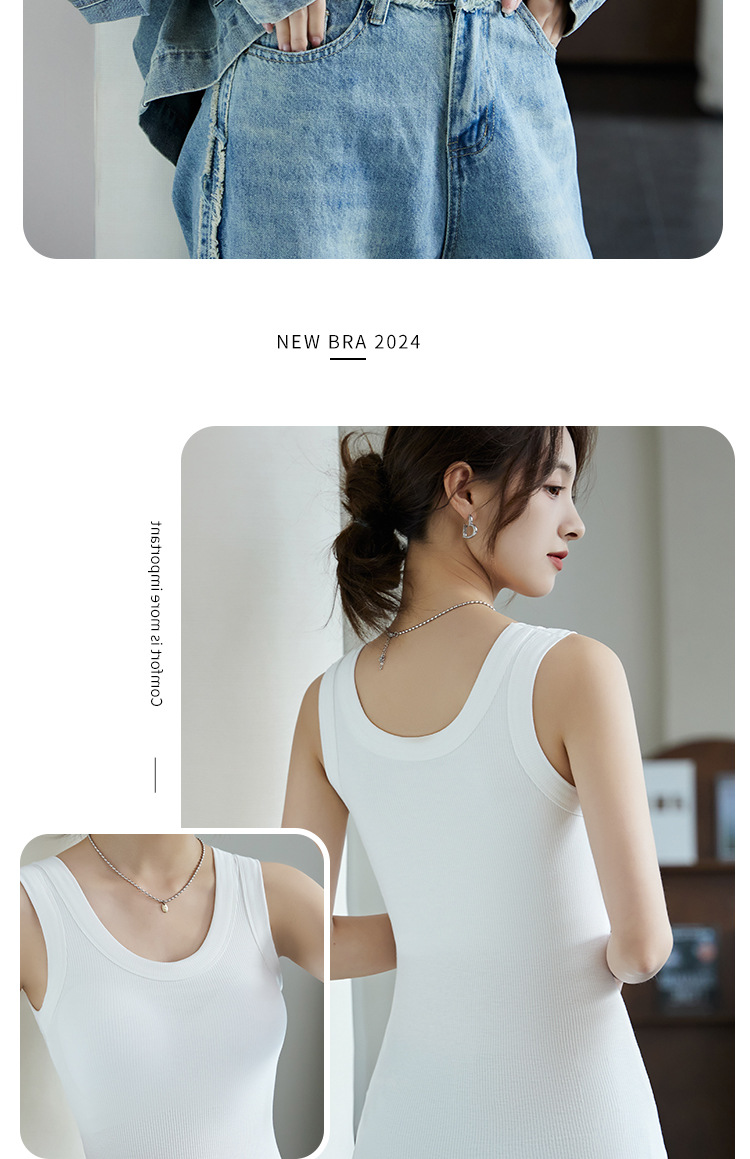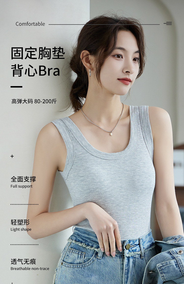 가슴 패드가있는 Camisole 여자 플러스 사이즈 컵 원피스 스레드 모달 민소매 최고 봄과 여름 2024 새로운스토어 가기